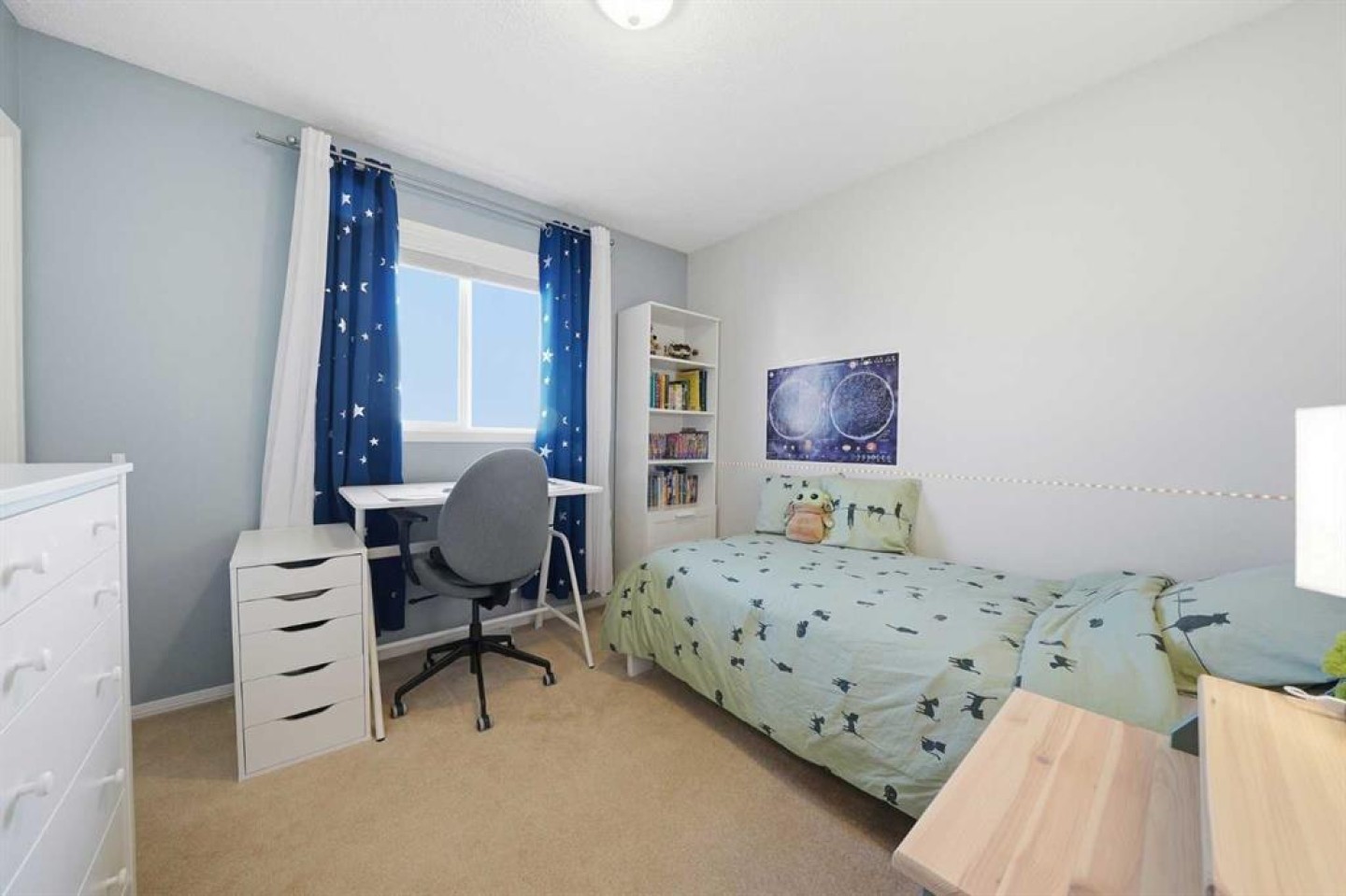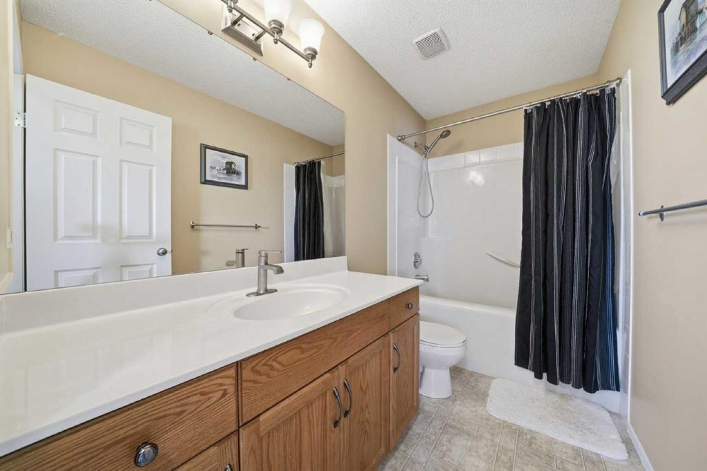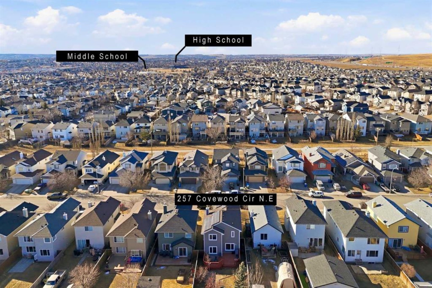 Welcome to this lovingly maintained two storey home in the desirable community of Coventry Hills. Pride of ownership shines throughout, offering a functional family layout and thoughtful upgrades. Built with a “hail proof” exterior, this home features Grey Slate and Arctic White Hardie board siding (2025), Class 4 impact resistant shingles (2025), solar panels (2022), central air conditioning, and forced air natural gas heating. Low-E Sun Glow windows (2025) were replaced on the East and West sides and are paired with remote blinds for added comfort and efficiency. Ideally located in north Calgary, this home is minutes from Calgary International Airport; close enough for convenience yet far enough to avoid the noise. Families will appreciate rare K-12 school access within the community and everyday amenities steps away. Country Hills Town Centre offers shopping and dining, while Vivo for Healthier Generations provides year round recreation. Commuters enjoy quick access to Deerfoot Trail and Stoney Trail for seamless travel in any direction. Inside, the main floor showcases durable luxury vinyl plank flooring (2020) throughout the living and dining areas. The bright kitchen features an island overlooking the living space and backyard. Appliances include a Samsung Smart (Wi-fi) induction top double convection range with air fryer (2024), stainless steel Whirlpool dishwasher with stainless interior (2020), and stainless Whirlpool fridge (~2020). Step directly onto the full width rear deck freshly stained in 2025, perfect for summer entertaining. The established backyard includes an apple tree, saskatoon berries, cherry tree, raspberries and more. A two piece powder room and adjacent laundry complete the main floor. Upstairs offers three bedrooms, including a spacious primary suite with private ensuite. A split staircase leads to a versatile bonus room ideal for a family lounge, playroom, or home office, plus an additional four piece bathroom. The professionally finished basement (2018), fully permitted for plumbing, electrical, and framing, adds valuable living space and features a new oversized four piece bathroom with heated ceramic tile floors. The open layout allows for an easy fourth bedroom addition. With its hail proof exterior, energy efficient upgrades, prime location, and permitted finished basement, this is an exceptional opportunity in one of north Calgary’s most convenient and family friendly communities.