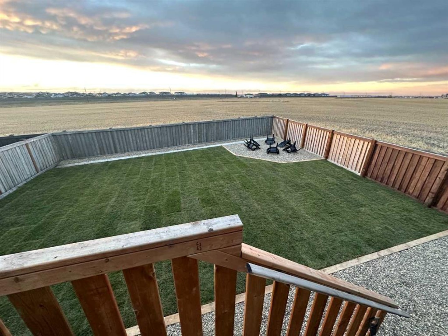 Better than new! Beautifully finished 5-bedroom, 3-bath executive Grande Built family home in the desirable Kensington neighborhood—fully builder-developed inside, professionally landscaped, lightly lived in for just 16 months, and located across from a proposed elementary school and steps from the pond and walking trails. This well-appointed property features quartz countertops, a cozy fireplace, and a spacious open-concept layout designed for everyday living and entertaining. The kitchen offers a large island, built-in range, walk-in pantry, and massive bright windows that fill the space with natural light all day long. The primary bedroom includes a generous walk-in closet with window and a private 5-piece ensuite featuring a tiled shower and deep soaker tub. Step outside to enjoy the fenced and landscaped yard with a large deck—perfect for relaxing or hosting guests. The yard also features a gravel pad and firepit area. With no neighbours to the back or side, you’ll enjoy added peace and privacy. The fully developed, builder-finished basement includes a dry bar with quartz counters and a fridge, creating an ideal entertainment space. Additional highlights include permanent Christmas lighting and smart home features with app control for year-round lighting—perfect for the holidays or playoff games with your favorite teams colors. The quality finishing in this home is evident throughout. The home also features a triple attached garage, offering ample space for vehicles and storage. A move-in-ready, better-than-new home that combines comfort, style, and location—perfect for families and professionals alike.