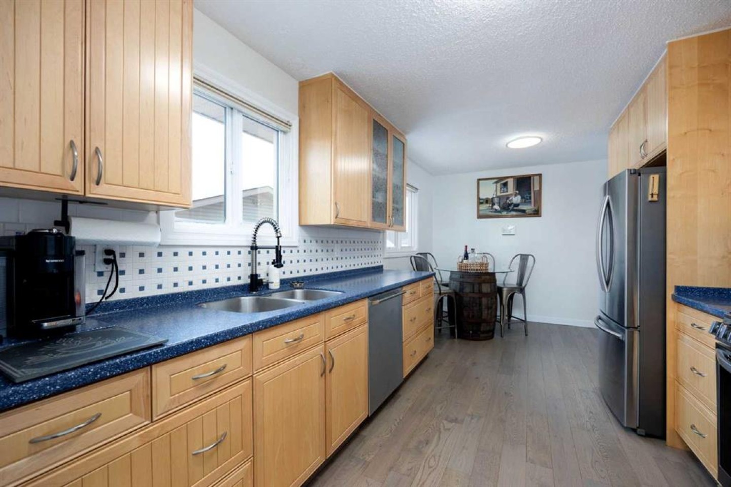 Welcome to 100 Simcoe Way, where thoughtful renovations create a calm, spa-like atmosphere and an expansive 16x75 driveway & oversized heated 28x28 garage w/ oversized door deliver the space and functionality that buyers crave. From the moment you step inside, you will feel the calm, intentional design and quality craftsmanship that sets this property apart. This fully developed bilevel offers four bedrooms (including a primary that accommodates a king-sized bed) and two beautifully renovated full bathrooms, perfectly balancing everyday function with elevated comfort. The main floor welcomes you with stunning engineered hardwood flooring (2025), upgraded trim and wainscotting, and large windows in the kitchen, living, and dining areas that were replaced in 2025 to enhance both efficiency and natural light. The custom front railing, hand-built with distressed cedar and welded rebar, makes a striking first impression and speaks to the pride of ownership throughout. The large, bright living room pours with natural light and connects seamlessly to the adjacent dining nook. The galley-style kitchen is warm and inviting w/ full-height maple cabinetry, Avonite countertops, a gas stove w/ newly installed gas line (2025), Electrolux dishwasher (2025), stainless steel fridge and microwave (2016), and even a built-in cup rinser for added convenience. Just off the back entry, you will find custom coat hooks crafted from reclaimed wood salvaged from the 2016 wildfire, a meaningful and uniquely Fort McMurray touch. The true showstopper of this home is the spa-inspired main bathroom renovation completed in 2024. Featuring a pine ceiling, steam shower (w/ rainfall head, body jets, & handheld sprayer), heated tile floors, illuminated mirror, and a Japanese Ove smart toilet (w/ heated bidet and seat, remote, autoflush, UV sanitation, carbon filter deodorizer, and air dryer), this space transforms your daily routine into a luxury experience. Downstairs, you will find a large family room accented w/ wood and metal features, and an electric fireplace with stone surround, . The basement bathroom also received a stunning renovation in 2024 w/ soaker tub, illuminated mirror, & pine ceiling. Two more bedrooms complete the space downstairs. Comfort continues w/ CENTRAL AIR conditioning, furnace (replaced 2010), upgraded electrical panel (2024), & hot water on demand (2024). There is an exterior hot water tap that makes filling the hot tub a breeze. The house shingles were replaced in 2007 & the garage shingles in 2025. Step outside and you will find a private backyard oasis complete with a pergola built in 2016, fenced yard (2015), storage beneath the deck, and stone placement perfect for a portable fire pit. Whether hosting friends or enjoying a quiet evening under the lights, this space truly feels like a retreat. Lastly, the additional parking at the side of the home makes this property a rare find. Backing & siding greenspace, close to all major amenities, this gem won't last long!