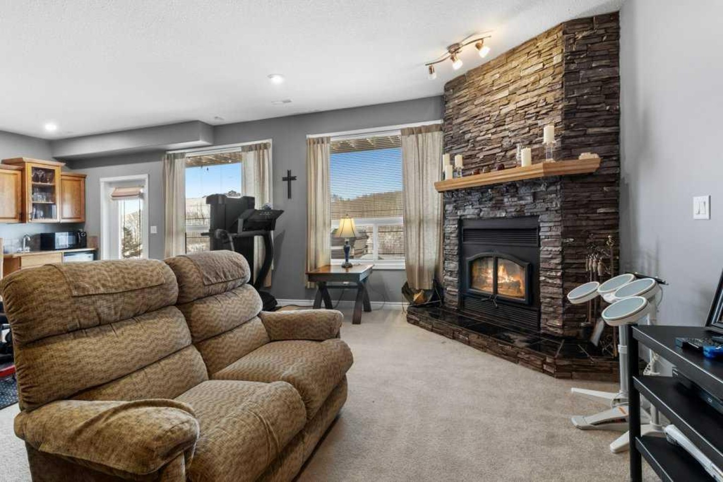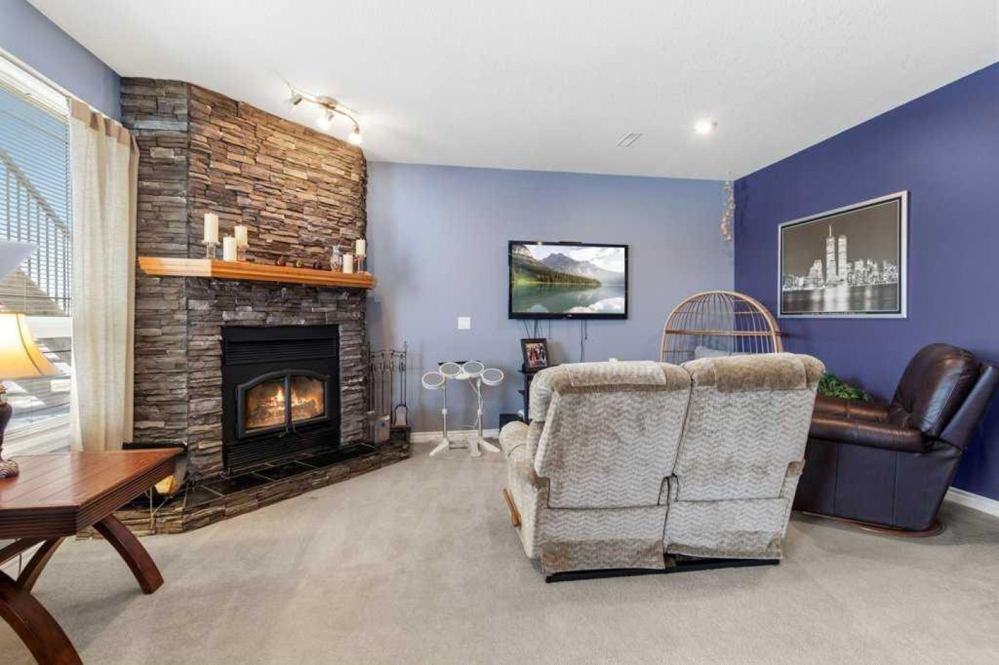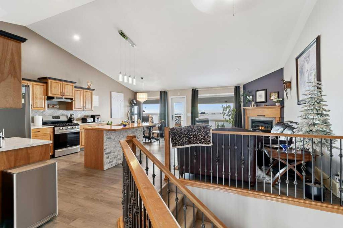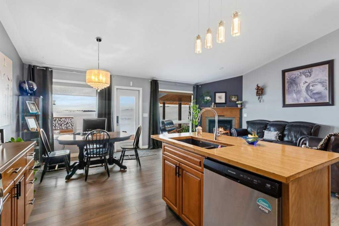 Hillside Bungalow on 3.68 private acres is just 10 minutes from Red Deer. This exceptional Trueline-built walk-out perfectly balances peaceful country living with convenient access to the city. Designed with quality and comfort in mind, the home welcomes you with vaulted ceilings and an open-concept main floor featuring a warm and inviting living room with a gas fireplace and stunning views of the surrounding countryside. The spacious kitchen is complete with maple cabinetry, stainless steel appliances, a gas stove, and a generous pantry, while the island features a bamboo countertop with ceramic sink, providing both style and functionality at the heart of the home. The main level hosts two bedrooms, including a primary suite with a 5-piece ensuite, a soaker tub, separate shower, and walk-in closet. A convenient laundry room and mudroom complete the main floor layout. The fully finished walk-out basement impresses with 9-foot ceilings, in-floor heating, a cozy wood-burning fireplace, and a dedicated media room. Entertain with ease in the bar area featuring a small sink and bar fridge, perfect for hosting family and friends. Guests will appreciate the comfort of a 3-piece bathroom with shower, along with additional under-stair storage and a new in 2021, on-demand water heater. The triple car garage is insulated and has under slab heat with a bonus mezzanine for extra storage. Step outside to the expansive rear deck overlooking the backyard, where you can unwind in the hot tub and take in the peaceful surroundings and beautiful views. The property is serviced by a well, tank and field system with a 2014 pressure tank, and shingles have been replaced on 2017. This remarkable acreage offers space, privacy, scenic vistas, and thoughtful upgrades throughout—an ideal place to call home.