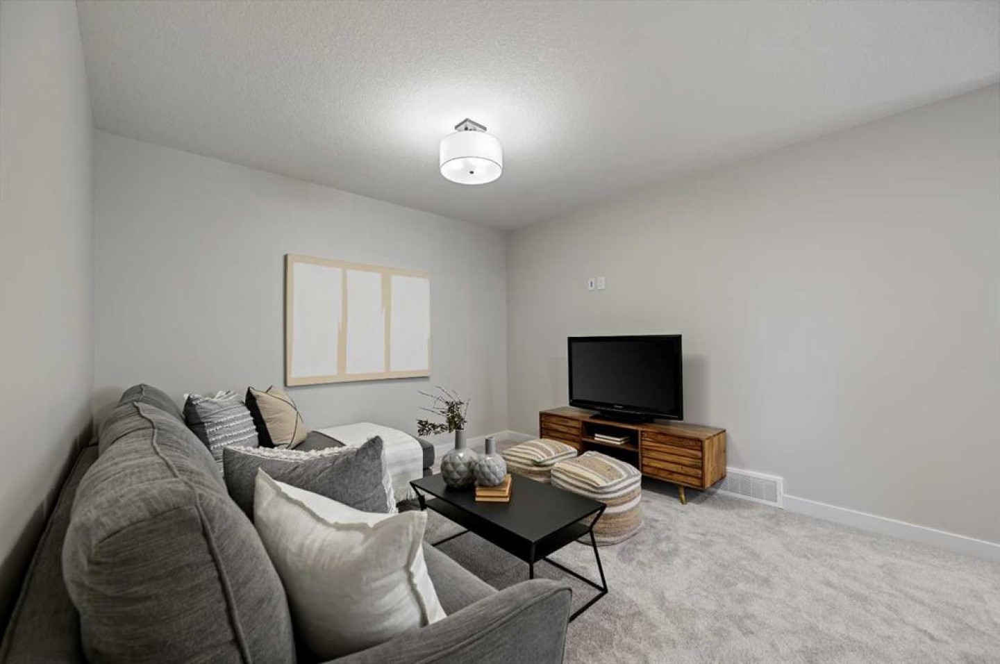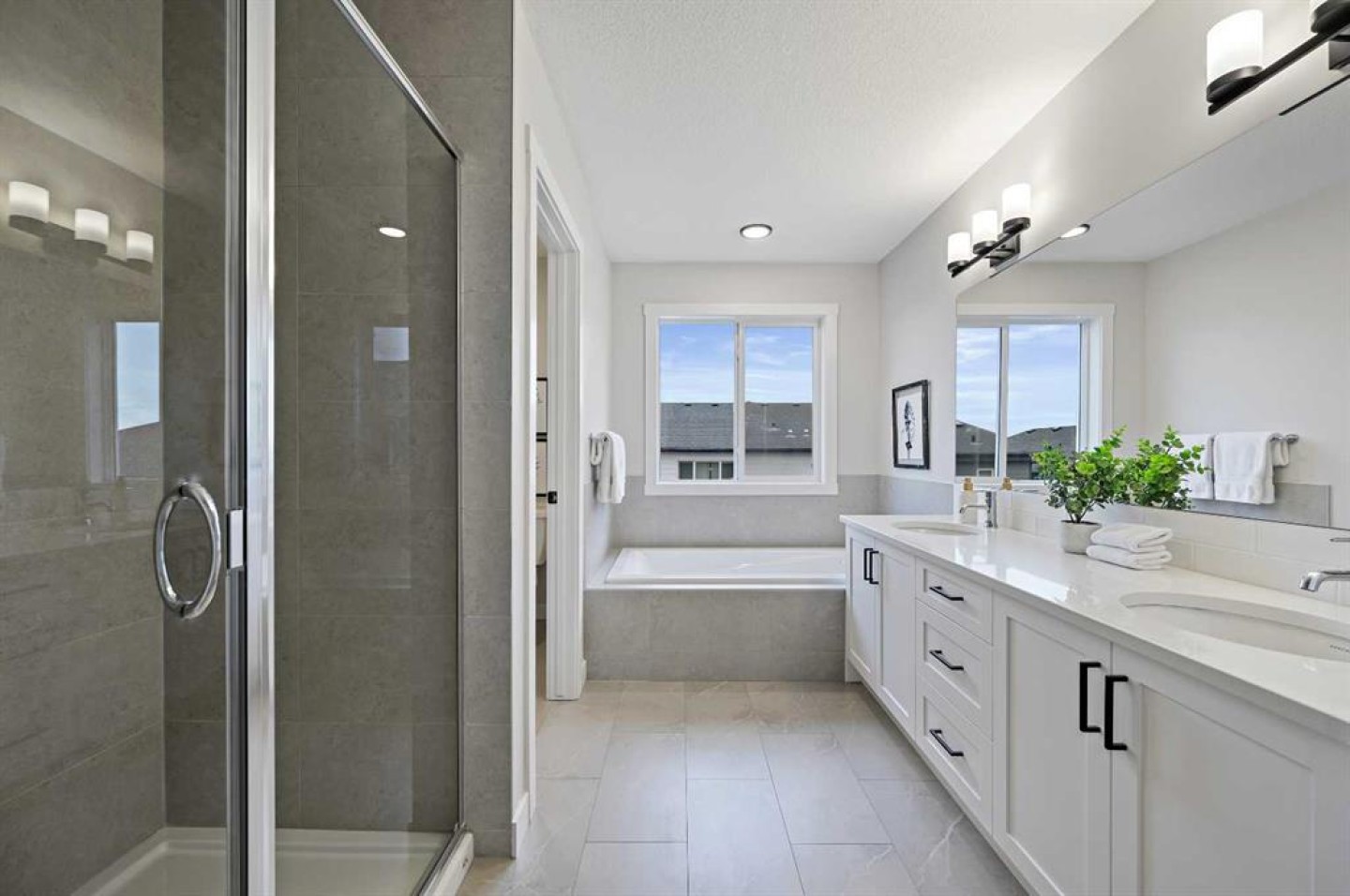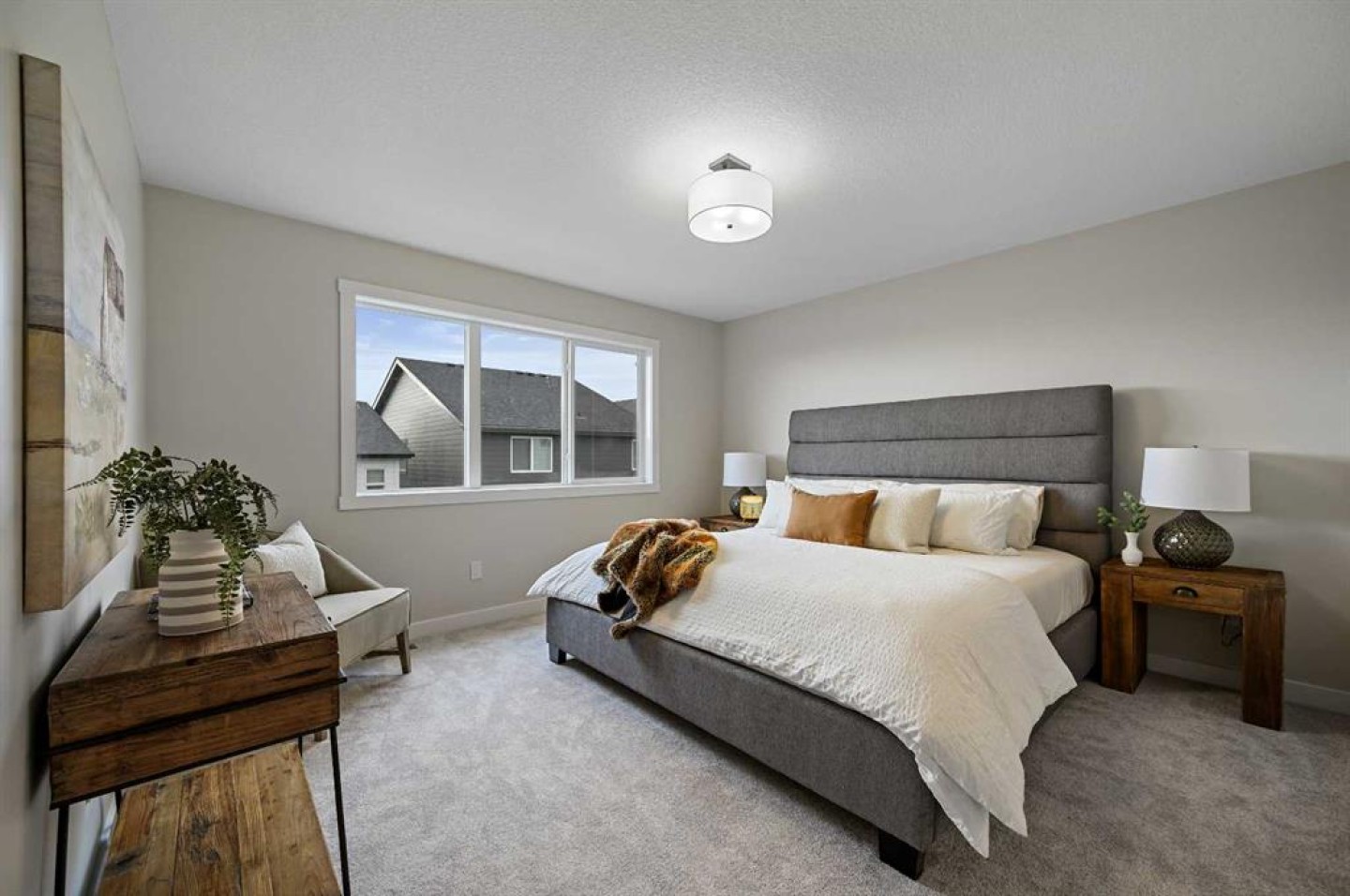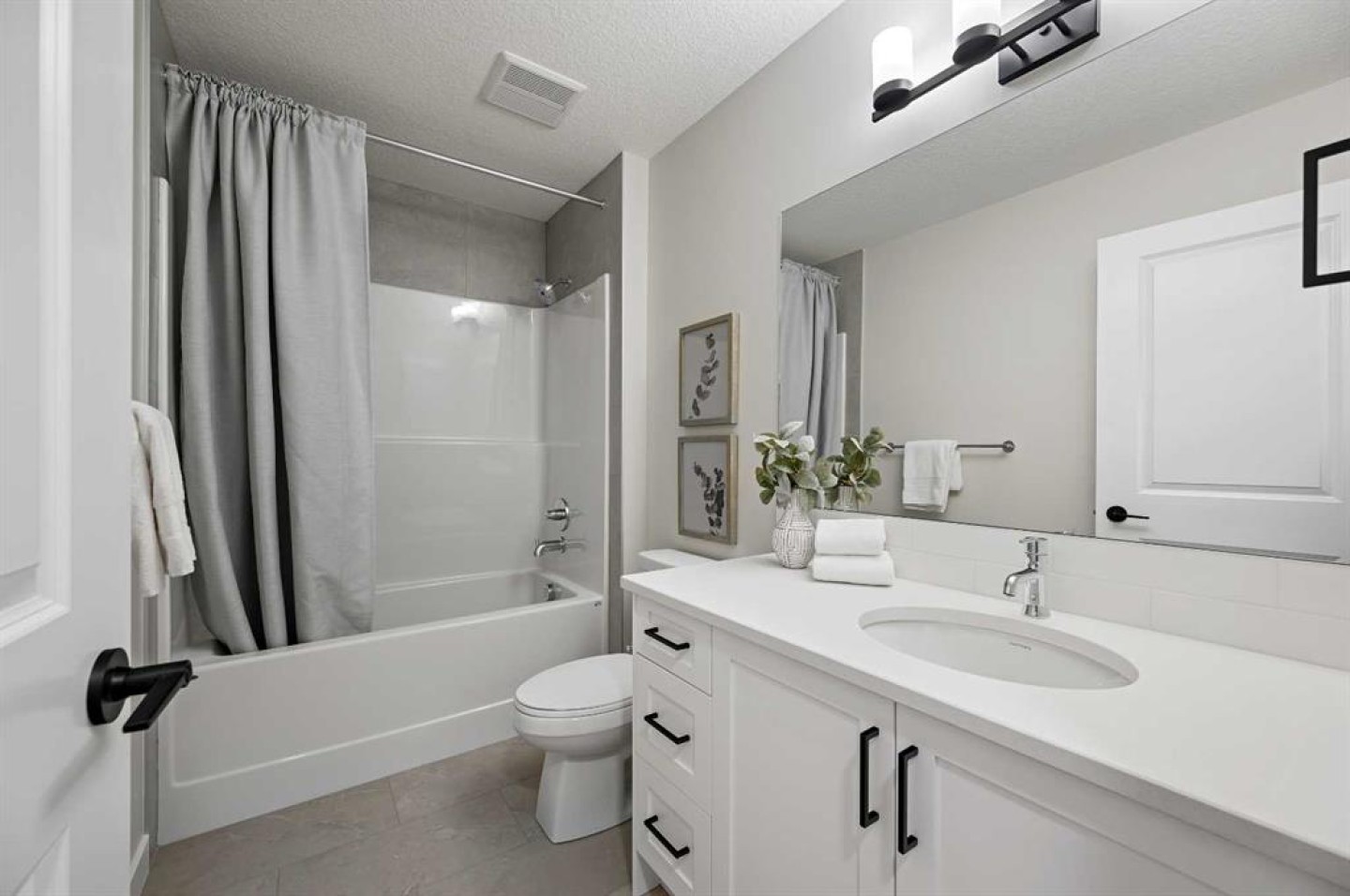 ** Genesis Builders Group presents the Leo II **| Brand New Home | 1,999 SqFt | 4 Bedrooms | 2.5 Bathrooms | Incredible Open Floor Plan | High Ceilings | Sparkling Kitchen | Full Height Cabinets | Stainless Steel Appliances | Gas Cooktop | Built-in Oven & Microwave | Kitchen Island with Barstool Seating Area | Walk-Through Pantry to Mudroom | Electric Fireplace | Recessed Lighting | Large Windows | Upper Level Bonus Room | Upper Level Laundry | Unfinished Basement | Separate Side Entry | Expansive Backyard | Pie Shaped Lot | Double Front Attached Garage | Smart Home. Welcome home to the Leo II built by Genesis Builders Group in the sought after new community of Vermilion Hill SW. This home is vast with living space, high ceilings and great natural light. The front door opens to a foyer with closet storage for a tidy space. The open floor plan kitchen, dining and living rooms makes this the premier home for entertaining friends and family. The fully loaded kitchen is outfitted with full height cabinets, sparkling countertops, stainless steel appliances, a gas cooktop, built-in microwave & oven, and a large centre island with barsool steaing space. The walk-through pantry connects your mud room off the interior garage door to the kitchen making grocery drops easy! Both the dining and living rooms are loaded with natural light as they're framed with large windows. The door to the backyard is here too making indoor/outdoor living easy in the warm summer months! The main level is complete with a 2pc powder room. Upstairs holds 4 bedrooms, a bonus family room and walk-in laundry. The primary bedroom is a personal oasis with a spacious 5pc ensuite that leads into your walk-in closet. The ensuite has dual vanities, a deep soaking tub, walk-in shower and private washing closet. Bedrooms 2, 3 & 4 share the main 4pc bath with a tub/shower combo and extended single vanity with great storage below. The bonus family room is central on the upper level providing a plush and comfortable common area for the family to unwind in the evenings. The laundry room located upstairs is every home owner's dream as its located near all the bedrooms! Downstairs, the unfinished basement is a blank canvas with a separate side entrance providing you with great future development opportunities! Additional highlights include 9 ft basement ceilings and rough-ins for added convenience. Located in the scenic community of Vermilion Hill, this home provides easy access to parks, pathways, green spaces, and major routes, offering the perfect balance of comfort, style, and connectivity. Quick possession is available, making this beautiful new home move-in ready for you to enjoy. Genesis Builders Group follows the First-Time Home Buyer GST/HST Rebate to eliminate the 5% GST on qualifying new homes (up to $1 million) for qualifying first time home buyers. Hurry and book your showing at this gorgeous Genesis home today!