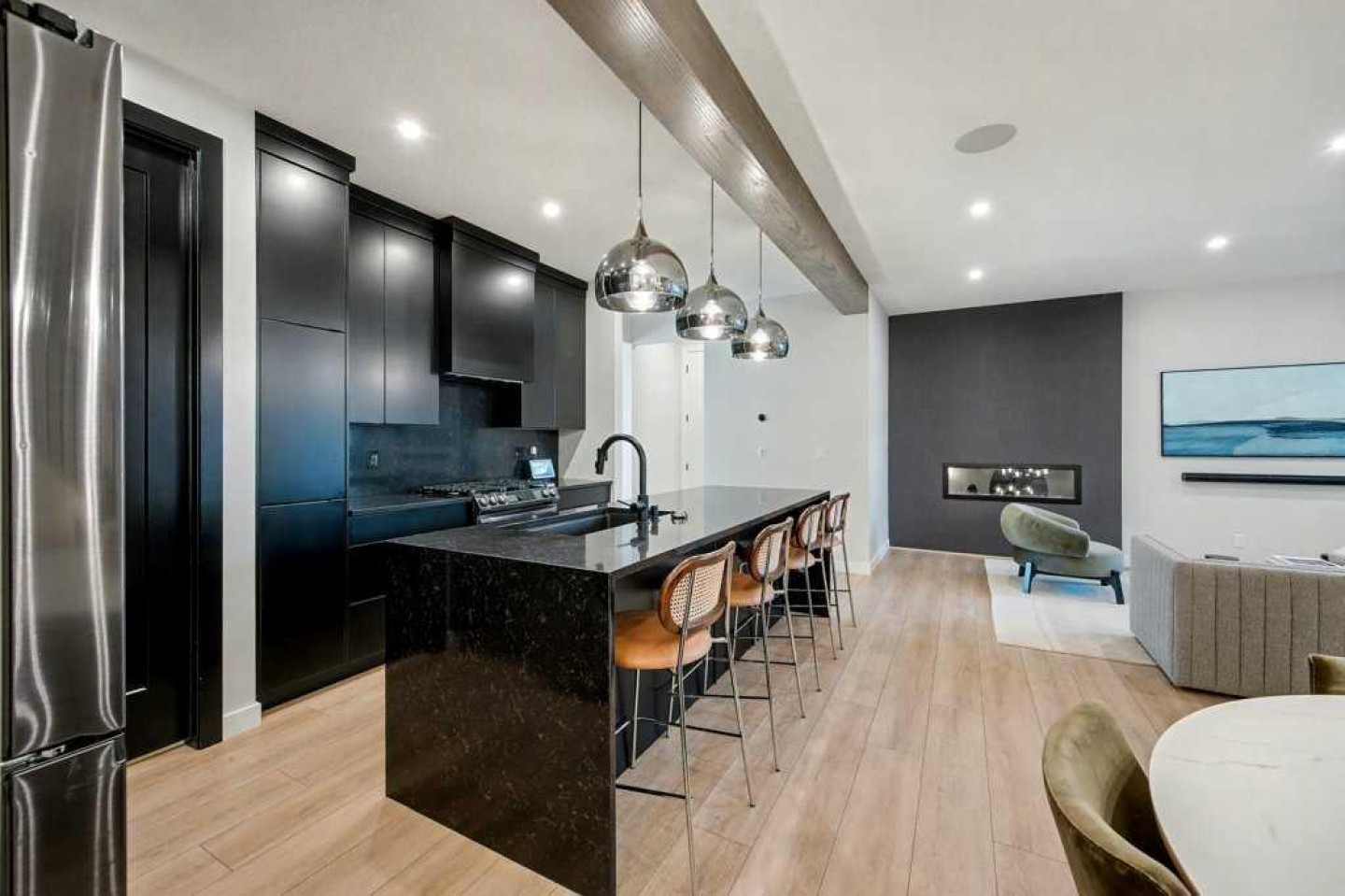 FROM THE MOMENT YOU ENTER YOU WILL FALL IN LOVE WITH THIS MOVE-IN-READY UPGRADED CARDEL BUILT HOME. From the Exquisite kitchen with black cabinets, high end appliances, and stunning lighting, flooring, tile and countertop selections, this distinctive home has been tastefully designed for luxurious living and homeowner delight. Numerous upgrades complete this home such as motorized blinds, 9 foot ceilings on the main and basement level, built in sound system with receiver and electronic upgrades built into a false wall in the great room area, mounted TV in the main floor living room is connected to the receiver and wired in for technical perfection (just play and enjoy!). Find your Retreat In the private yard which features turf grass, barbecue gas line, aggregate concrete patio for your outdoor grilling adventures and private parties. This home has functionality and design perfection with main floor home-office space, built-in fireplace in the living room, 4 bedrooms and 3 bathrooms (with 2 ensuite baths) on the upper level for true family convenience. This home has street parking in the front and access to the OVERSIZED UPGRADED DOUBLE ATTACHED GARAGE AT THE REAR OF THE HOME, nicely reflecting the NEO-TRADITIONAL DESIGN PRINCIPLES OF THE ALPINE PARK COMMUNITY. This home permeates natural light due to its northwest backyard and southeast front facing orientation. Built to outlast nature's elements with hardyboard exterior, this home was constructed for lasting brilliance, and superb curb appeal. Check out the video tour, and buy this home and start enjoying luxurious living. Why wait to build when you have found the perfect place to call home.