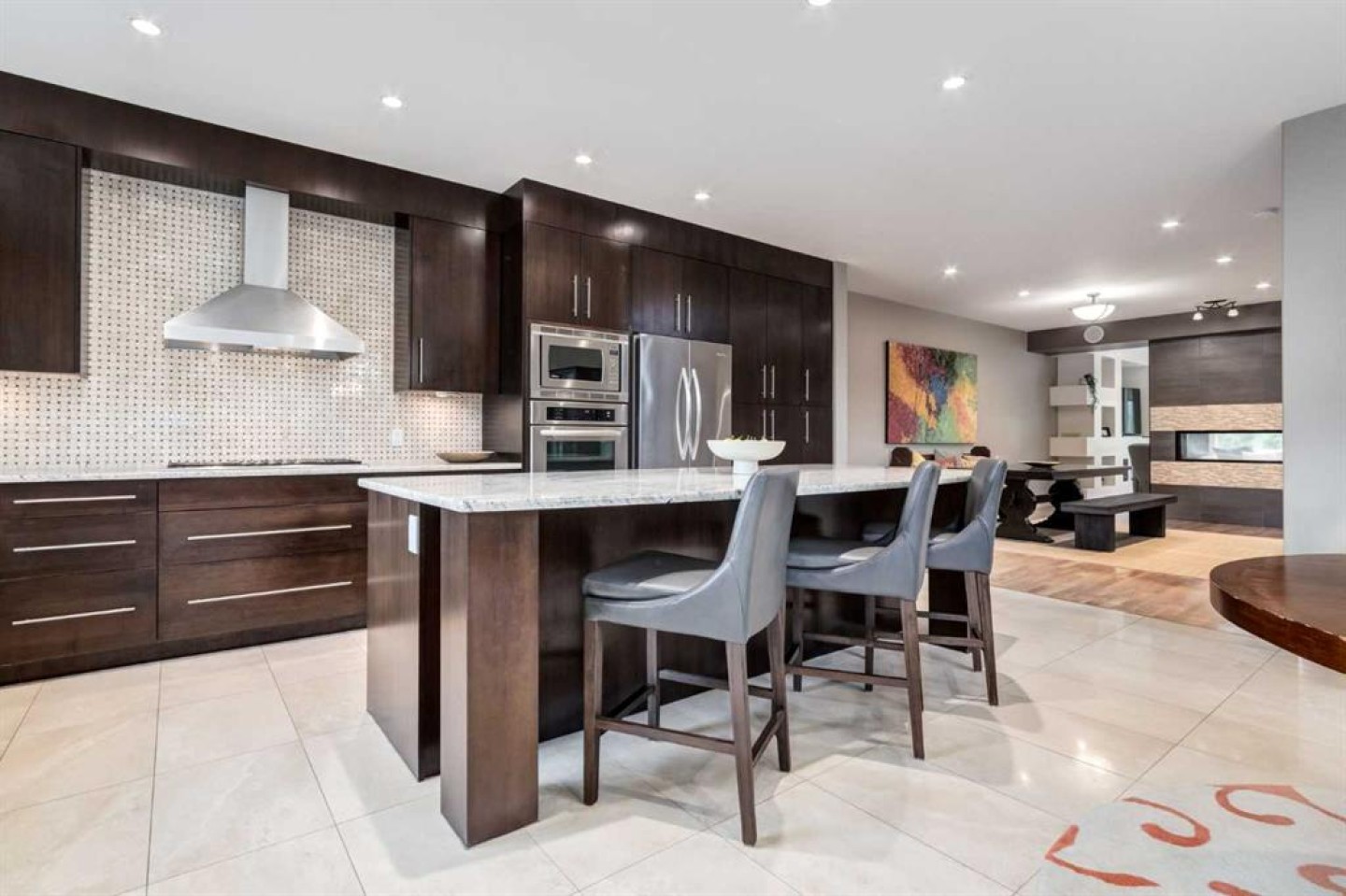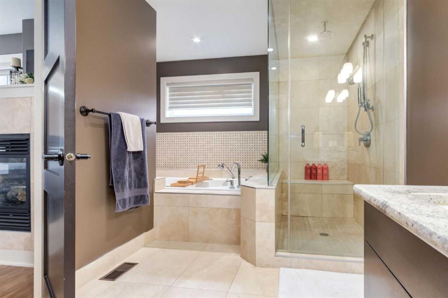 **OPEN HOUSE SATURDAY MARCH 7TH 11:00am - 1:00pm** This custom built residence is one of the largest semi-detached homes in the area, offering over 3300 sq ft of developed, high end living space across the three beautifully finished levels. From the thoughtful design to luxurious finishes, every detail of this home is tailored for comfort, style and function. Perfectly situated just off 17th Avenue, enjoy quick access to boutique shopping, vibrant restaurants, public transit, schools, cycling routes and major road ways. Only minutes to Shaganappi Pointe CTrain station and a short walk to the Bow River pathways - ideal for biking, running and walking. Additionally Highway 1 is just around the corner - your fast track to the Rocky Mountains! The main floor features an open concept with 9' ceilings. Walnut hardwood and heated Travertine tile throughout, a dual sided fireplace connecting the Great Room and Nook as well as extensive built-ins, custom cabinetry and a stunning 9' kitchen island. Welcome to your chefs kitchen featuring high end stainless steel appliances including a 5 burner Thermador gas cook top, wine fridge and Bosch dishwasher. Upstairs you will be greeted by 2 Primary suites, with not one but TWO luxurious spa like ensuites complete with glass showers, soaker tubs, dual sinks, heated floors and granite counters. Expansive walk in closets, and a fireplace. The upper floor also is home to a spacious laundry room and a loft for your home office, complete with built ins and granite counters. The lower level will treat you to hydronic in floor heating under more Travertine tile, a custom espresso/wine bar, complete with more built ins, granite counters and another wine fridge. There is also a third bedroom, another full bath featuring a beautiful glass steam shower. This luxury home sits on an oversized lot, with an oversized heated garage complete with epoxy floors. Central A/C, water softener, vacu flo system, Hunter Douglas custom blinds, hardwired sound system, glass railings on the exterior entrances, fully landscaped and fenced yard. Please note, this home was also constructed with a concrete party wall! There are too many extras in this home to describe, it is a definite must see!! This property will not last long - Book your showing soon!!