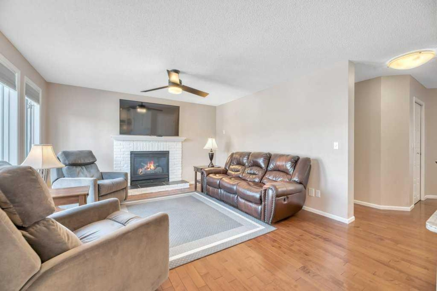 Tucked away on a quiet cul-de-sac and ideally located directly across from a park, this beautifully maintained two-storey home offers the perfect blend of space, comfort, and functionality. From the moment you step inside, you’ll be impressed by the soaring vaulted ceilings and bright, open layout that creates an inviting and airy atmosphere. Hardwood floors flow throughout the home, complementing the elegant formal living and dining rooms—perfect for entertaining or everyday living. The updated white kitchen features granite countertops, ample cabinetry, and is open to the cozy family room complete with a gas fireplace, creating a warm and welcoming central gathering space. Upstairs, you’ll find three bedrooms including a truly expansive primary suite, thoughtfully converted from two bedrooms to create a luxurious retreat. A beautifully renovated 4-piece bathroom completes the upper level, while all four bathrooms in the home have been tastefully updated. The fully developed lower level offers even more living space with a large recreation room, an additional bedroom, and another renovated bathroom—ideal for guests, teens, or a home office setup. Outside, enjoy the large backyard featuring a brand new deck, shed, and convenient back lane access with RV parking. The heated double garage provides comfort and practicality year-round. With its exceptional location, generous living spaces, and extensive updates, this home offers outstanding value in a sought-after setting close to parks, schools, and everyday amenities.