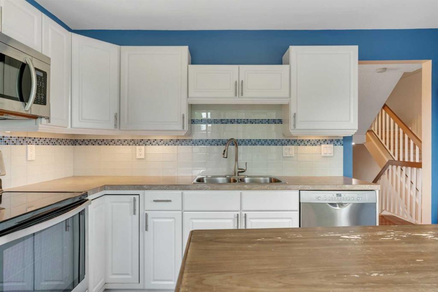 Nestled in a quiet, tree-lined cul-de-sac in the desirable community of Coach Hill, this charming 3-bedroom, 2.5-bath townhome offers style, comfort, and convenience. The main floor features an updated white kitchen with modern backsplash, stainless steel appliances, and hardwood floors that flow seamlessly into the bright, open living and dining areas. Upstairs, you’ll find three spacious bedrooms, including a primary suite with updated baths and plush, luxurious carpets. The unfinished basement provides plenty of opportunity for additional living space or storage. Enjoy the privacy of backing onto green space in this well-maintained, pet-friendly complex (with board approval). Complete with a single garage and extra parking, this home is part of a well-managed community that offers peace of mind and pride of ownership. There is a community garden to allow your "green thumb" to work for you! Immaculately maintained with many exterior updates over the years, this complex shows pride of ownership!