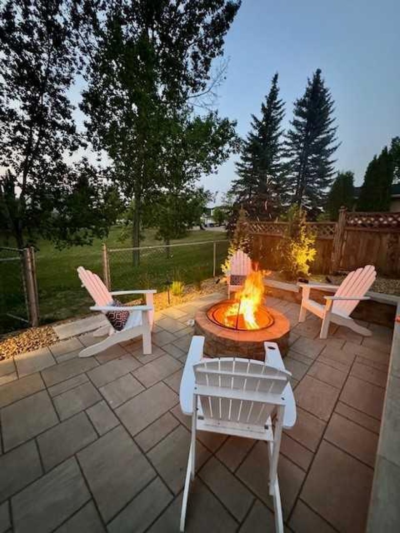 attached tv's and brackets, basement sound bar, firepit, nest doorbell camera and nest thermostat