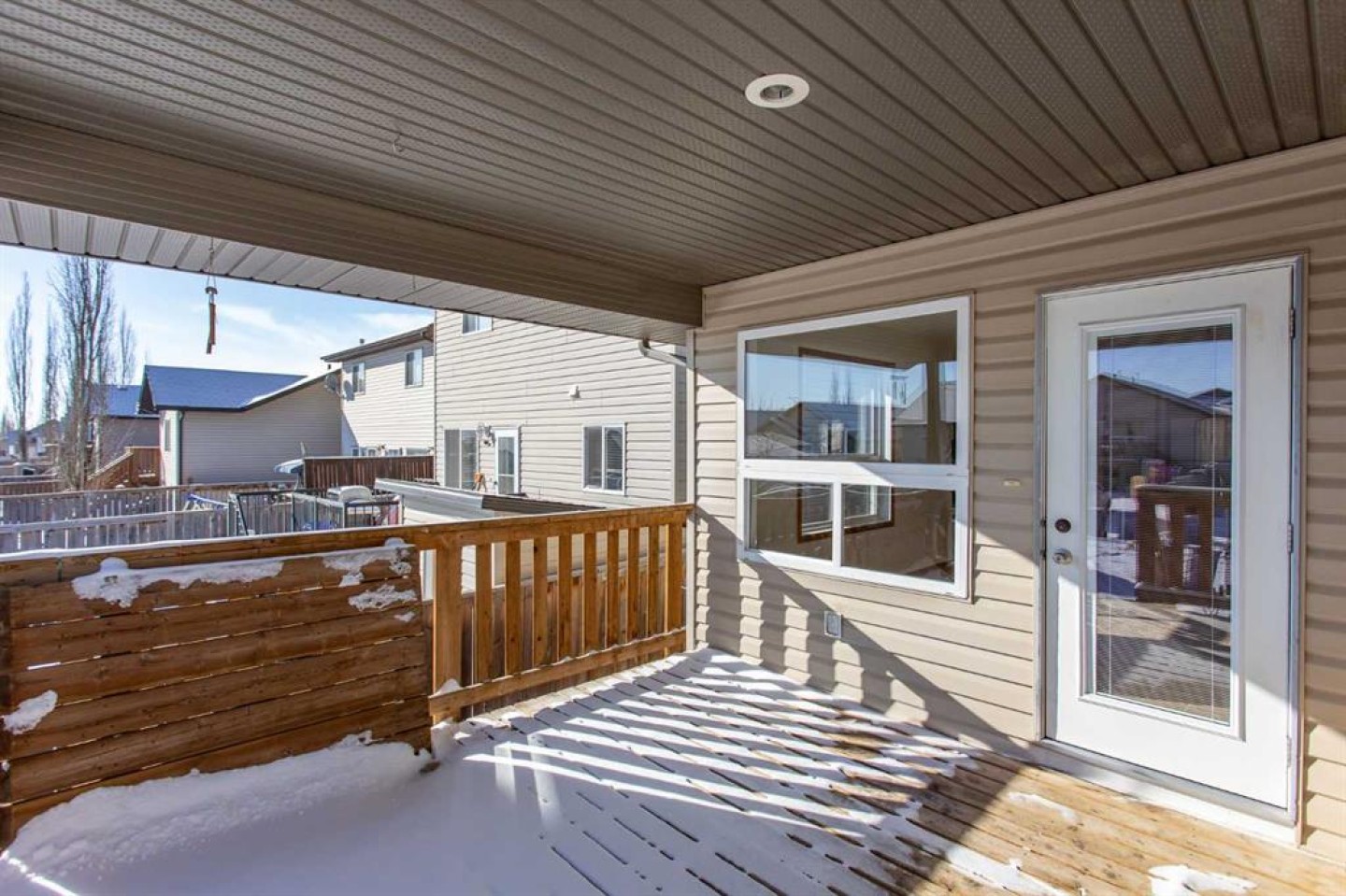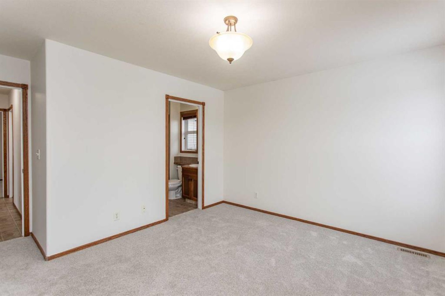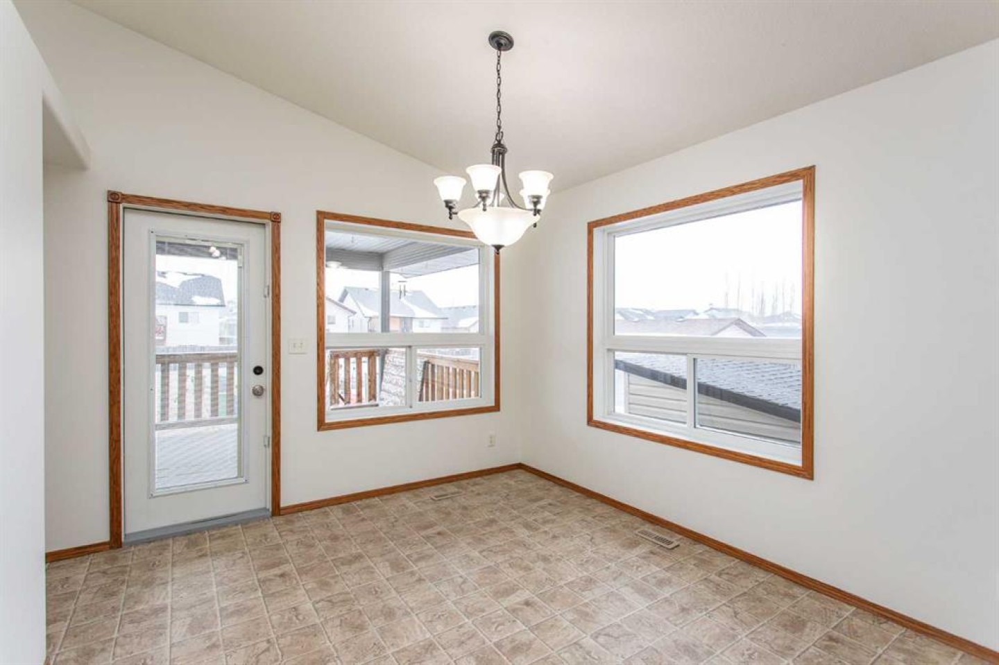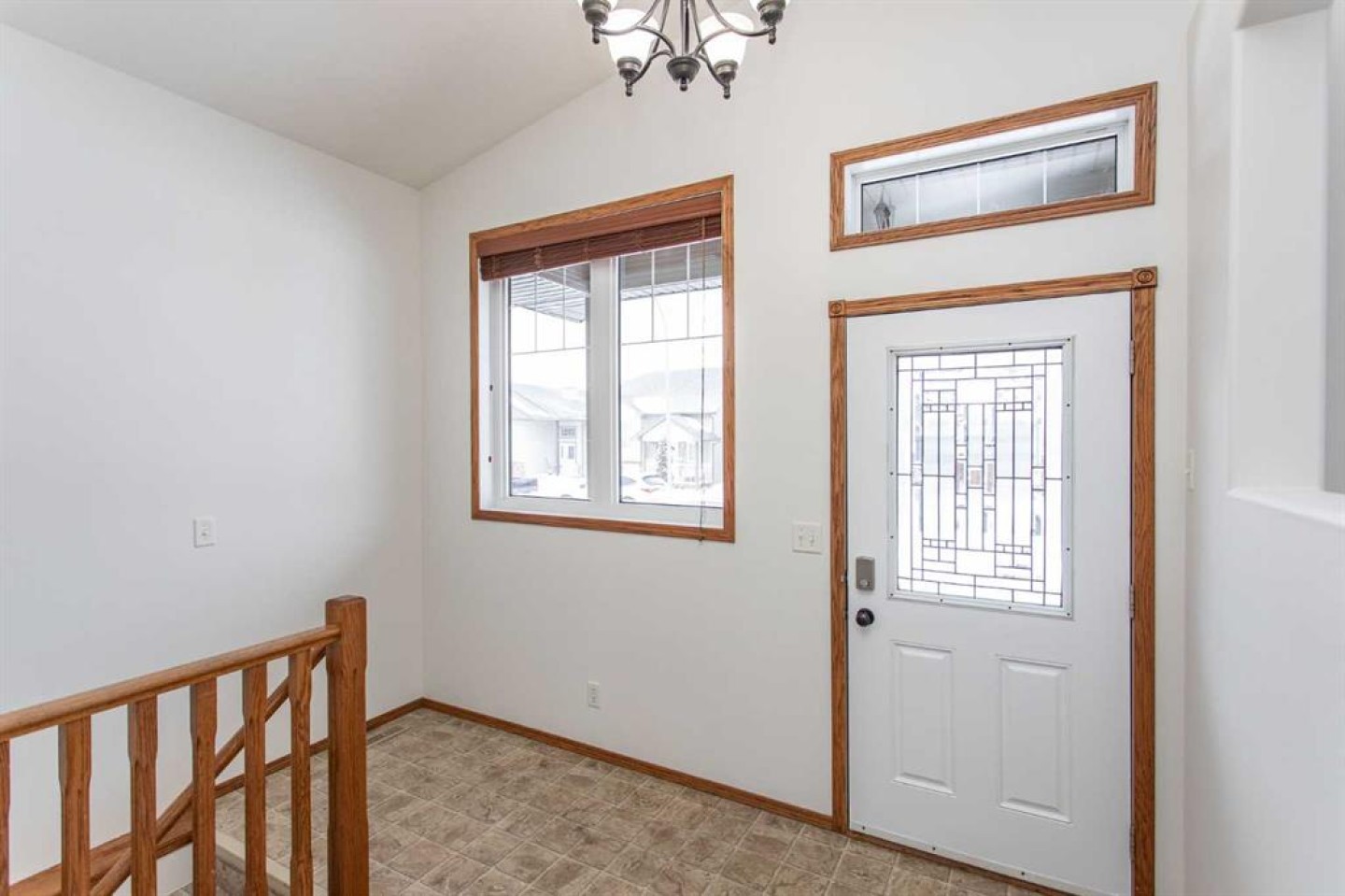 Turn the keys and make the dream of home ownership a reality. Ideal home for a first time buyer or even a retired couple looking to downsize. Walk right up and be greeted with the large covered front veranda perfect for relaxing on and enjoying a warm morning coffee or an evening beverage to unwind the day. The spacious entrance allows all your guests to come in with ease and admire the bright open design. Freshly painted main floor and brand new carpet throughout you can be the first to enjoy the upgrades just completed. Vaulted ceilings enhance the sense of space and natural light throughout. The large front sitting room is cleverly designed with a niche area perfect for media stand to allow more usable floor space for your furnishings. The generous kitchen design offers a fantastic amount of work space with plenty of counter top room, large center island, decorative sub way tile, deep corner pantry plus rich dark stained oak cabinets. A roomy dining area boasts enough room to host a dinner party or just the right amount of space for an intimate evening for two. Garden door just off the space leads to the covered back deck so you can even bbq all year round. Two bedrooms on the main floor allows for larger room sizes. Sizable Primary bedroom even has a three piece en suite with 4 ft shower plus a deep walk in closet. Head down to the partially finished basement and tap into future potential and equity builder. With a bedroom and three piece bathroom already in place why not carry on and easily finish the area that would develop perfectly into a family room with games area or the addition of an extra bedroom if needed. Large storage space for seasonal items can be incorporated into the laundry area as well. A nice deep lot allows plenty of space to build a future garage and still have yard left over to enjoy. Take a stroll anytime you want as the house sits just adjacent to the city walking trail system which takes you right to the neighborhood amenities.