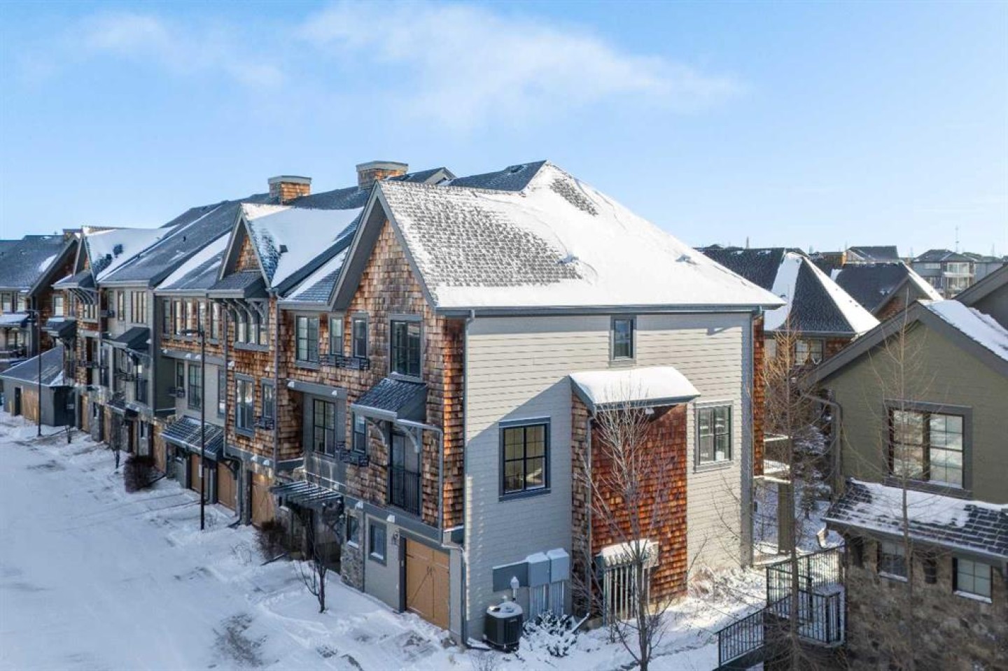 Welcome to 455 Ascot Circle SW, offered for the very first time, this beautifully appointed end-unit home in the heart of sought-after Aspen Woods — one of Calgary’s most prestigious west-side communities. This end-unit with its higher ground placement allows for an abundance of natural light that fills the home throughout the day, creating a bright and airy atmosphere rarely found in comparable units. Featuring 3 bedrooms, 2 full bathrooms, and 1 half bath, this thoughtfully designed residence delivers the perfect blend of upscale design and functional family living. From the moment you arrive, the curb appeal sets the tone. Inside, expansive windows highlight the brand new main level entire hardwood flooring and plush new carpet throughout, elevating the warmth and freshness of every space. The open-concept main floor seamlessly connects the kitchen, dining, and living areas — ideal for everyday family life and effortless entertaining. The chef-inspired kitchen offers quality cabinetry, generous counter space, and a central island that anchors the home — perfect for morning coffee, homework sessions, or hosting friends. Upstairs, spacious bedrooms provide comfort and flexibility, while the primary retreat offers a serene escape complete with a well-appointed ensuite and walk-in closet. One of the standout features is the extra wide heated tandem garage (17’7” x 36’1”) with additional storage areas, setting this unit apart from others in the complex. Whether you need space for two vehicles, mountain gear, bikes, or seasonal storage, the extra depth and versatility add significant value. Situated within The Enclave, the community offers a peaceful, mountain-inspired atmosphere reminiscent of Canmore or Banff, with beautifully maintained walking paths and green space throughout. With quick access to Stoney Trail, weekend escapes to the Rockies are effortless. Families will appreciate proximity to leading schools, walking distance to Webber Academy and Calgary Academy, the future Catholic High School, Guardian Angel and Roberta Bondar schools. Easy access to the boutiques and dining at Aspen Landing Shopping Centre. Downtown access is equally seamless, offering the perfect balance of retreat and connectivity. Specifics for this unit include all the upgrades offered from the original builder with finished ceilings, electric fireplace, stainless steel appliances & gas stove, quartz counters with under cupboards lighting, primary ensuite 10mm walk-in shower, gas bbq line. Further add-ons include: air conditioning, upgraded closets, bedroom black out window coverings, and ring door bell. This home is like new, move in ready with all new flooring, new paint and all home maintenance just completed.