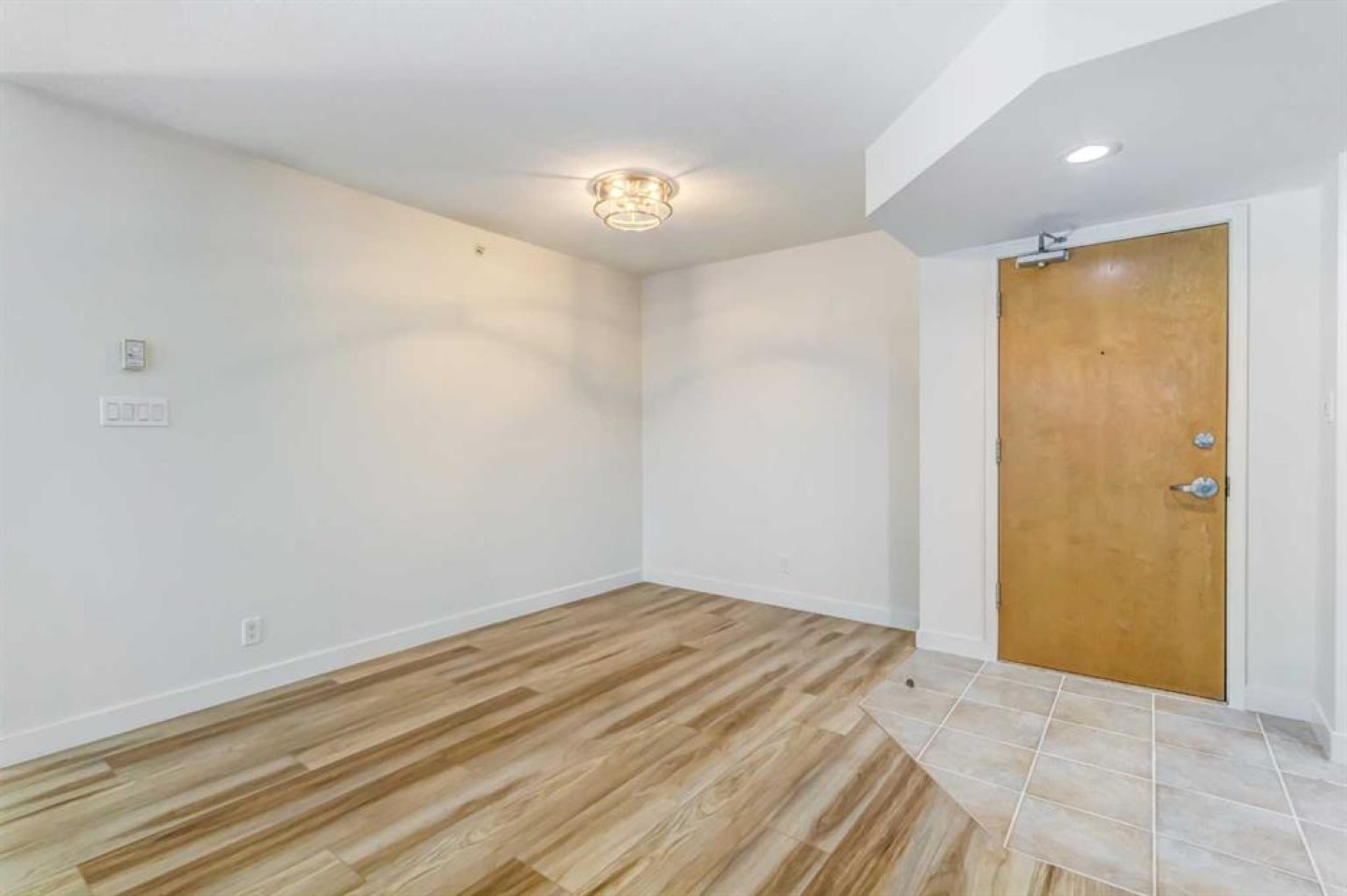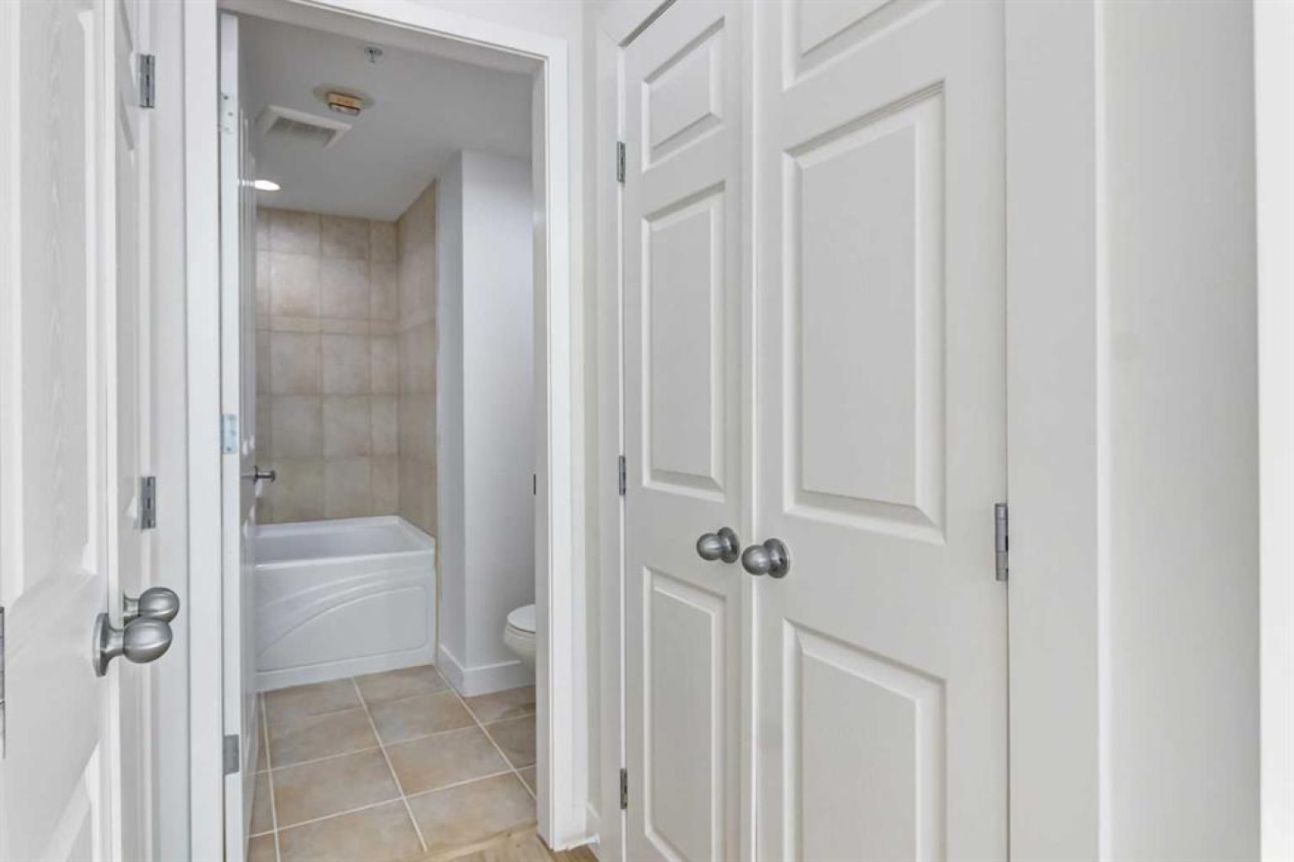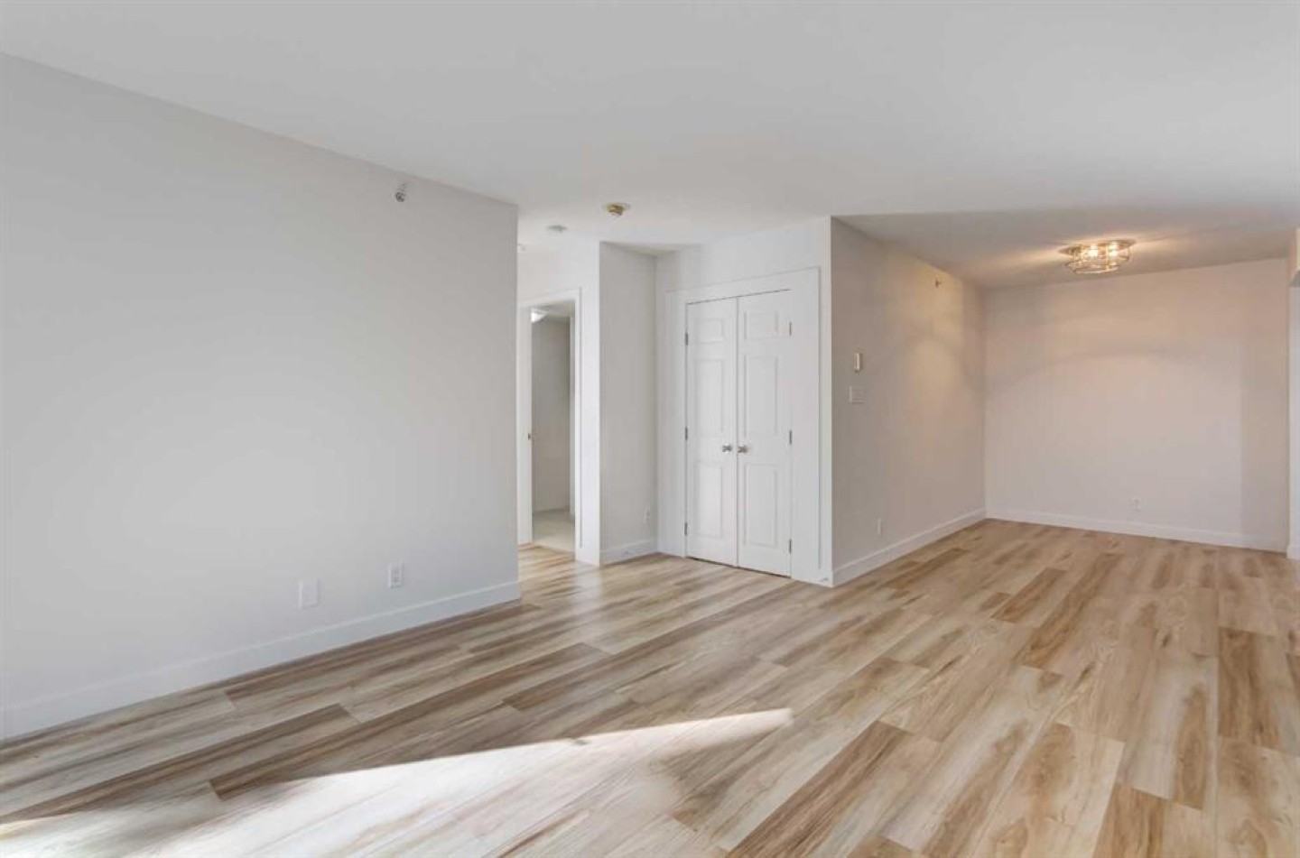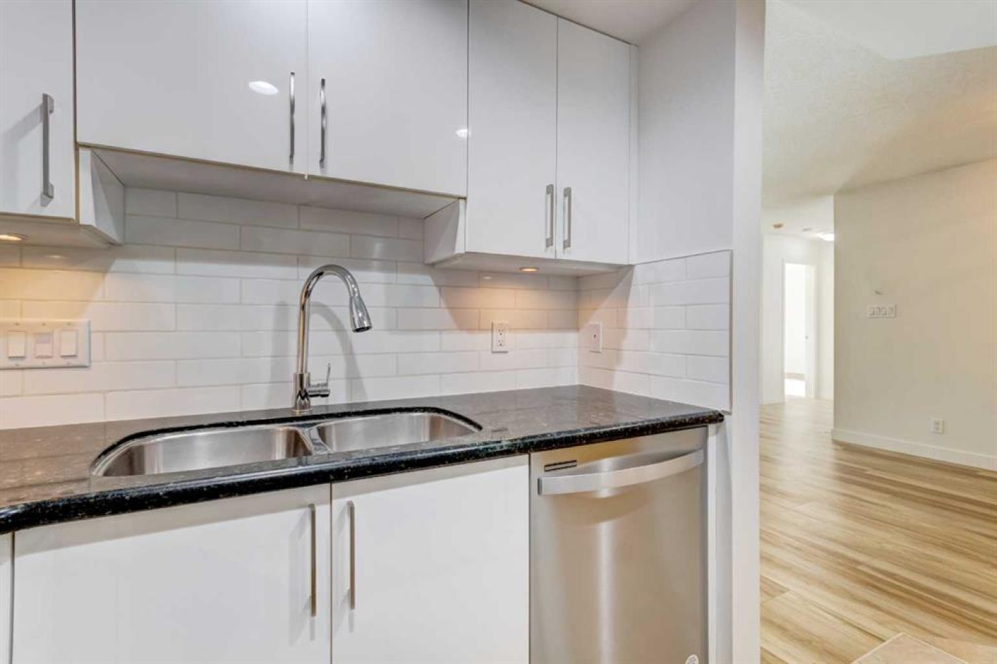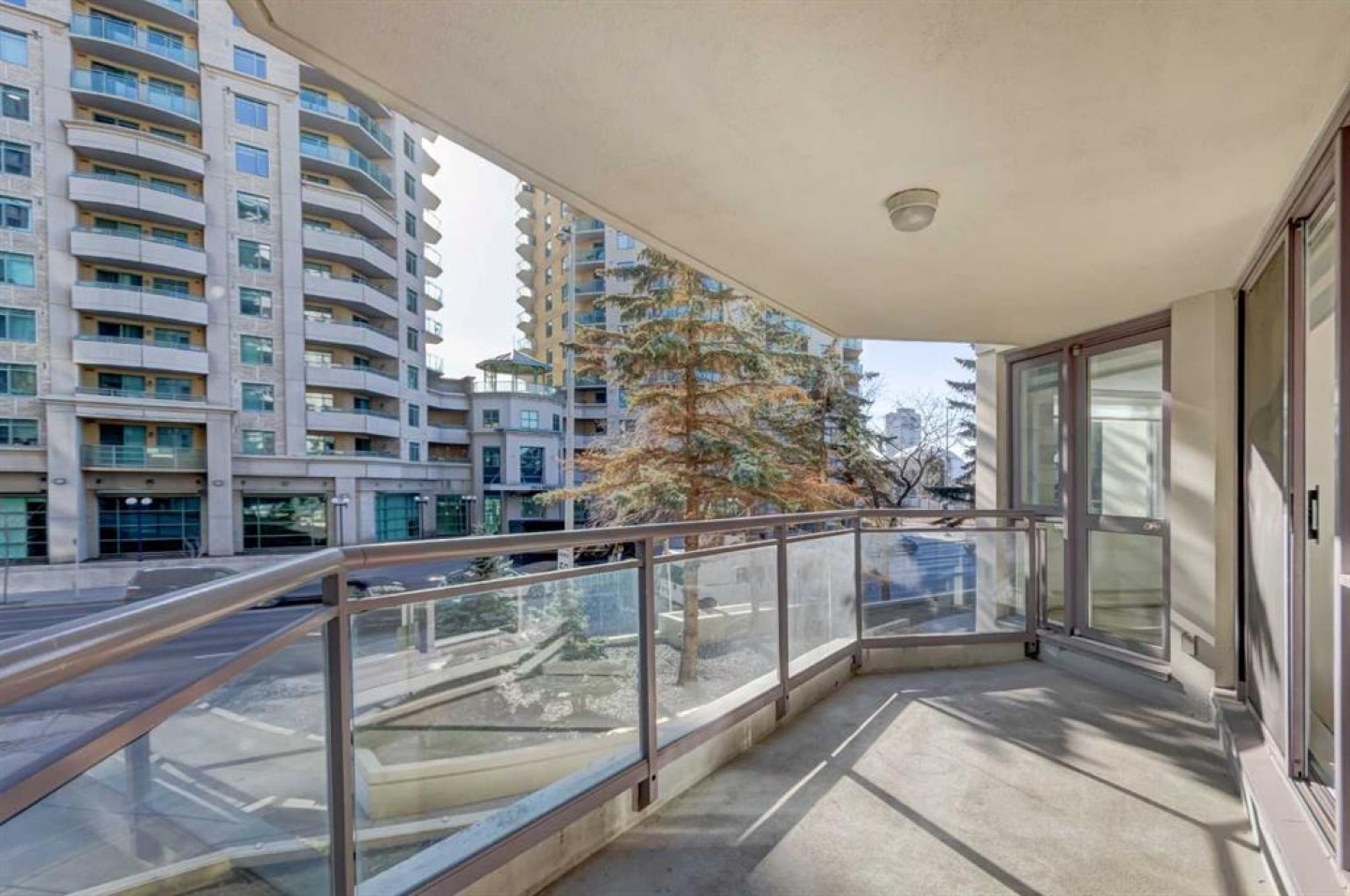 Welcome to this beautifully renovated 2-bedroom, 2-bathroom condo in The Marquis, ideally located in the desirable west end of downtown. Offering nearly 1,000 sq ft of bright, open-concept living space, this stylish unit has undergone approximately $30,000 in quality upgrades. Recent renovations include NEW stainless steel appliances (stove and fridge), newer dishwasher and microwave, NEW kitchen cabinetry and backsplash, NEW bathroom vanity and sink, NEW closet doors, NEW lighting, NEW window coverings, NEW paint throughout, and NEW durable vinyl plank flooring that complements the cozy gas fireplace perfectly. The thoughtfully designed layout is both functional and inviting. The spacious primary bedroom features a full ensuite and direct access to the private, south-facing balcony surrounded by mature trees for added privacy. The second bedroom is ideally positioned near the second full bathroom, making it perfect for guests, roommates, or a home office. Enjoy an unbeatable urban lifestyle just steps from the Bow River pathways and only a two-minutes to the C-Train within the free fare zone. Added conveniences include easy stair access to avoid elevator wait times and close proximity to the titled underground parking stall. Building amenities include a fitness center, yoga studio, social/party room, landscaped courtyard, secure bike storage, and visitor parking. Pet-friendly (with board approval). An exceptional opportunity for professionals, downsizers, or investors seeking turnkey living in a prime downtown location.