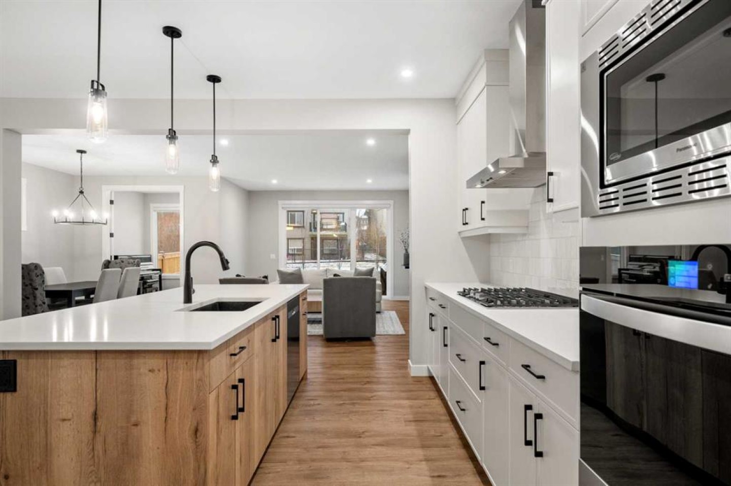 Welcome to 135 Silver Spruce Grove, a show-home worthy estate nestled within the prestigious enclave of homes in Silver Spruce, Silverado. This residence was built by the highly regarded Brookfield Homes and showcases the award winning ‘Columbia’ floor plan, known for its thoughtful design. With opulent finishes, premium selections and a palette that compliments every era, this residence transcends time and trends. You will love the striking, modern exterior, and the desirable location, west-backing unto a serene pathway and greenspace! The impressive main features 9’ ceilings and luxury vinyl plank flooring coloured in ‘Willow’, illuminated by the plethora of natural light beaming through the expansive triple-pane-windows on this floorplan. The chef-inspired kitchen is extraordinary, with a remarkable island as the showpiece! This designer kitchen is curated with contrasting two-tone cabinetry in Ivory and Natural Halifax Oak, offering brilliant dimension. This culinary retreat is framed with stunning full height Oak Shaker Cabinetry, and is enhanced with lux tile, gorgeous quartz counters, alongside the state-of-the-art appliance suite. The notable family room features a gas fireplace as its centrepiece and for memorable dinners, an open-concept dining area awaits. A rare feature of this floorplan is the impressive size of the main living areas, including the addition of a den located at the back of the residence. The den overlooks your backyard oasis and is the perfect in-home office or children’s area. Ascend upstairs, and into your lavish primary suite featuring a boutique worthy dressing room and a designer five-piece spa. The spa is elevated by a soaker tub, lush shower and dual vanities! The upper has a split wing design, with two spacious bedrooms ensconced on one end of the residence, both with walk-in closets, and one with extravagant vaulted ceilings! The generous bonus room allows for privacy and separation between the primary suite and secondary bedrooms. This level features laundry and another five-piece bath. The lower level awaits your creativity, with desirable 9’ ceilings and a separate entrance – for future suite development (with city approval) as an ideal space for your kids or in-laws! This residence captures the allure of a brand-new build with its pristine like-new condition, while presenting the advantages of having remaining warranty, an ideal possession timeline, and the ability to save on the gst! Plus, the value of having extensive upgrades on a premium lot, along with motorized Hunter Douglas blinds, air-conditioning, pax wardrobe systems and professionally curated landscaping – with lush greenspace, a tiered deck in vinyl and stone, a gorgeous fence and aspens for privacy. Silver Spruce offers modern living in an established community, with parks, schools and amenities just minutes away including Spruce Meadows, Fish Creek, and multiple world class golf courses! This estate is waiting for a connoisseur of fine living to call it home!