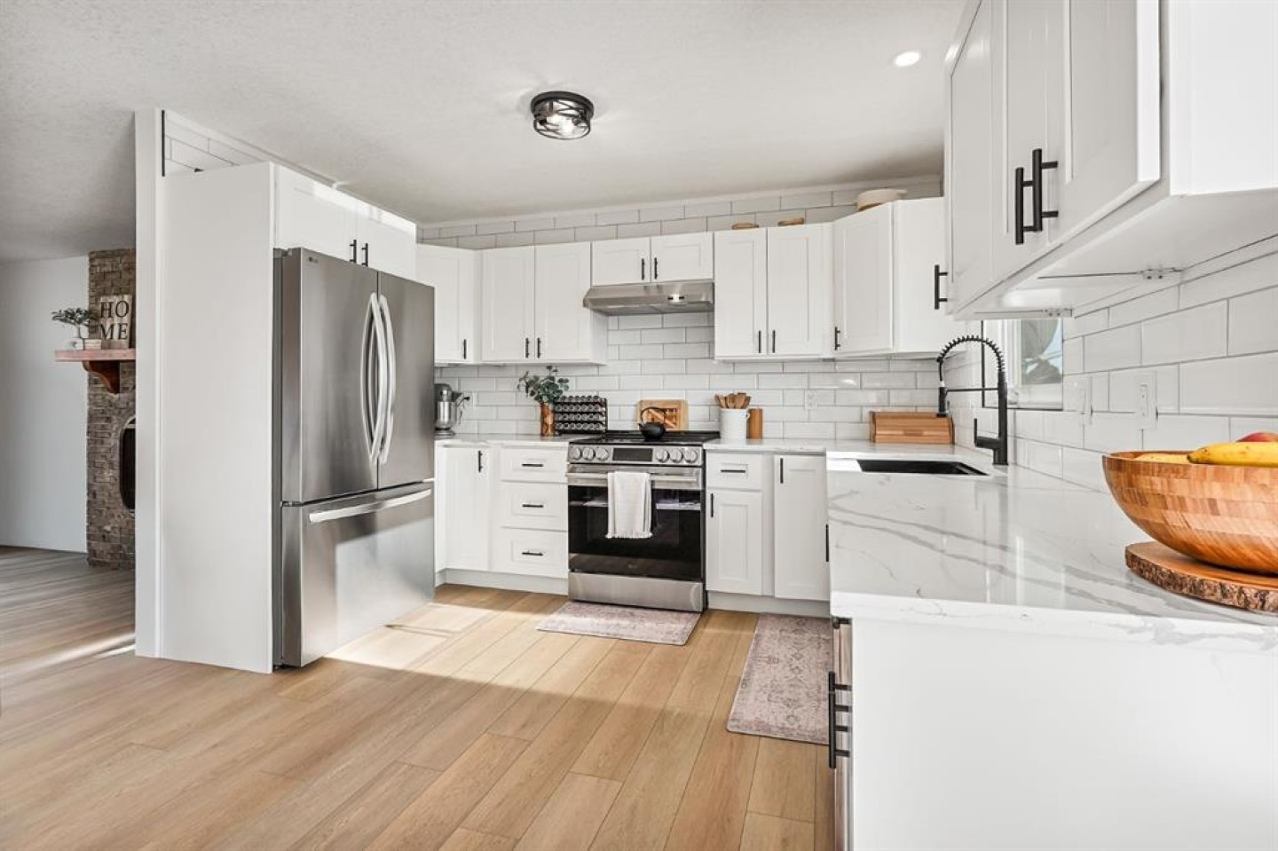 Welcome to 13 Rice Bay SE, nestled in a beautiful, quiet cul-de-sac in sought-after Medicine Hat SE. This fully updated home offers exceptional curb appeal with new cement board siding, a vinyl fence, and a double attached garage. Inside, you’ll find modern finishes throughout, including durable vinyl plank flooring and ceramic tile in the bathrooms. The stunning updated kitchen features quartz countertops, updated appliances, and a clean, contemporary design perfect for everyday living and entertaining. The upper level offers 3 spacious bedrooms and 1.5 bathrooms, while both the main floor and basement feature cozy wood-burning fireplaces — ideal for those chilly Alberta evenings. Custom railings add a stylish architectural touch. The walkout basement provides additional functional living space, including a large gym area and another bedroom, making it perfect for growing families or guests. All windows and appliances have been updated, offering peace of mind and improved efficiency. This move-in-ready home combines quality upgrades, space, and an unbeatable cul-de-sac location — a must-see!