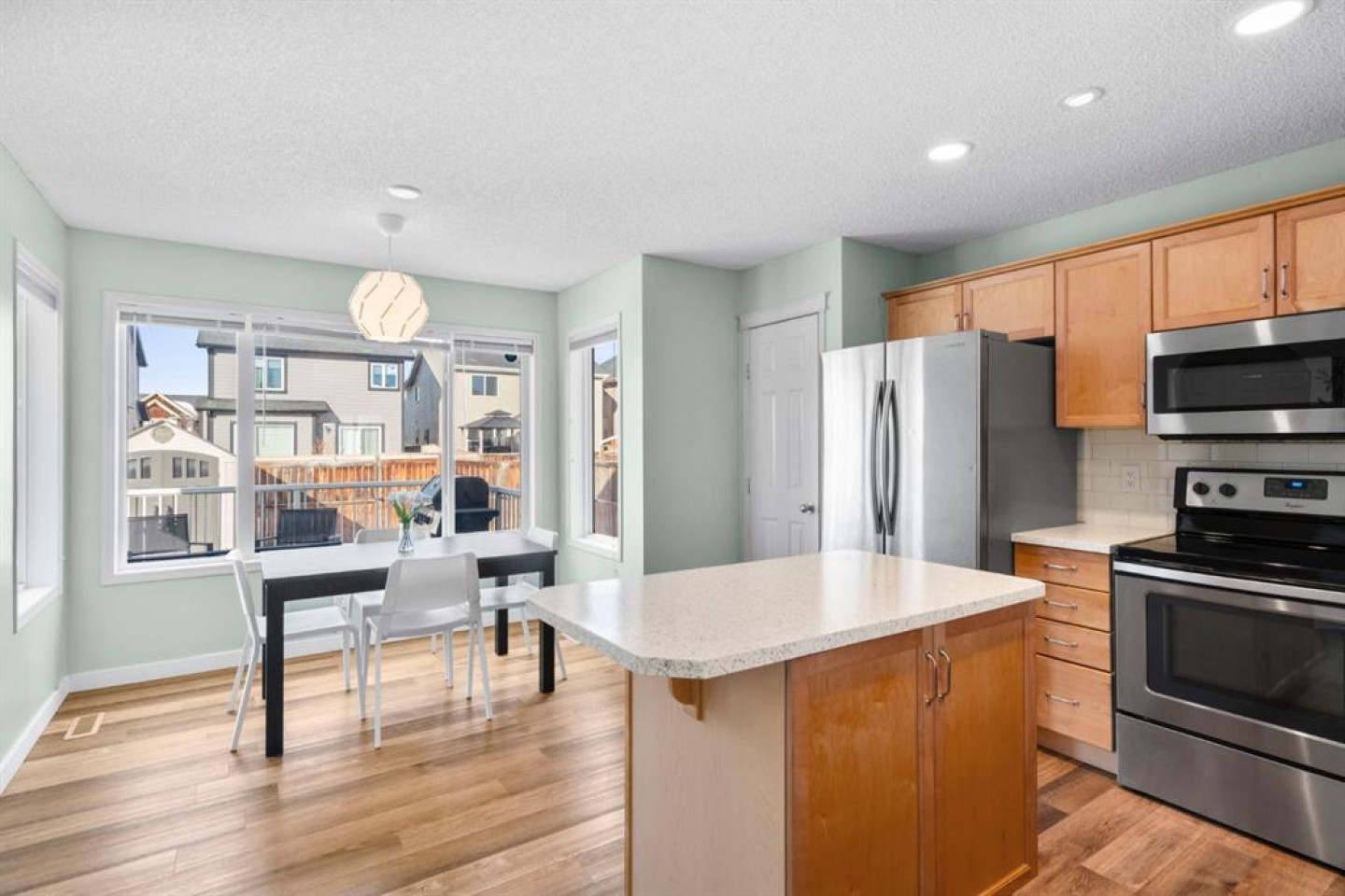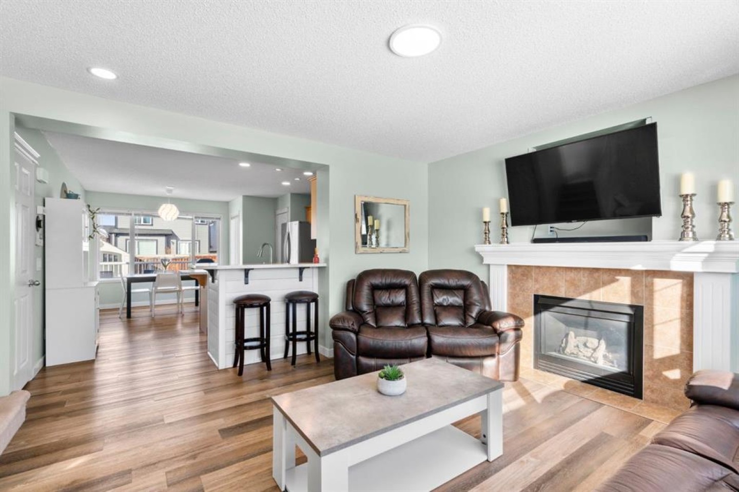 This well-maintained 3 bedroom, 3 bathroom two-storey home offers a bright, open layout designed for everyday living. The living room is filled with natural light and provides a comfortable space for both relaxing and entertaining. The kitchen features stainless steel appliances, upgraded LED lighting and connects seamlessly with the main living areas. Wide-plank LVP flooring and fresh paint throughout add a modern, cohesive look. Significant exterior updates were completed in 2020, including a new roof and gutters. The basement includes a finished recreation room with a flexible layout, offering the potential to add a fourth bedroom and an additional bathroom. A large utility and storage room with laundry completes the lower level. Situated directly across from a park, the home enjoys open views and convenient access to green space. Close to highly regarded schools, amenities and pathway systems, this move-in-ready property offers both comfort and long-term potential in a sought-after location.