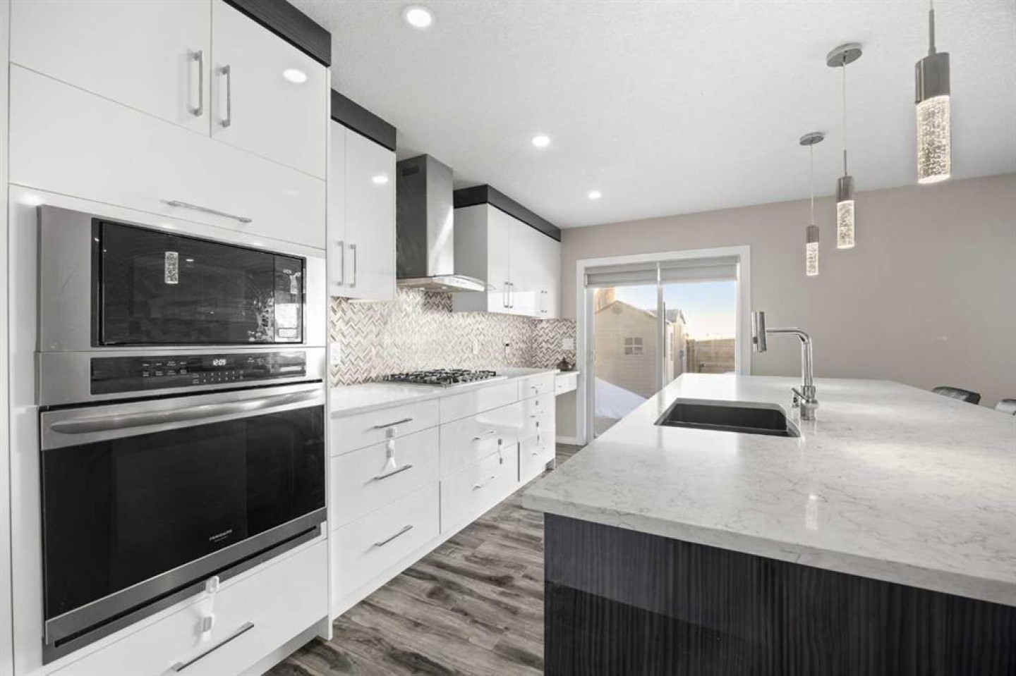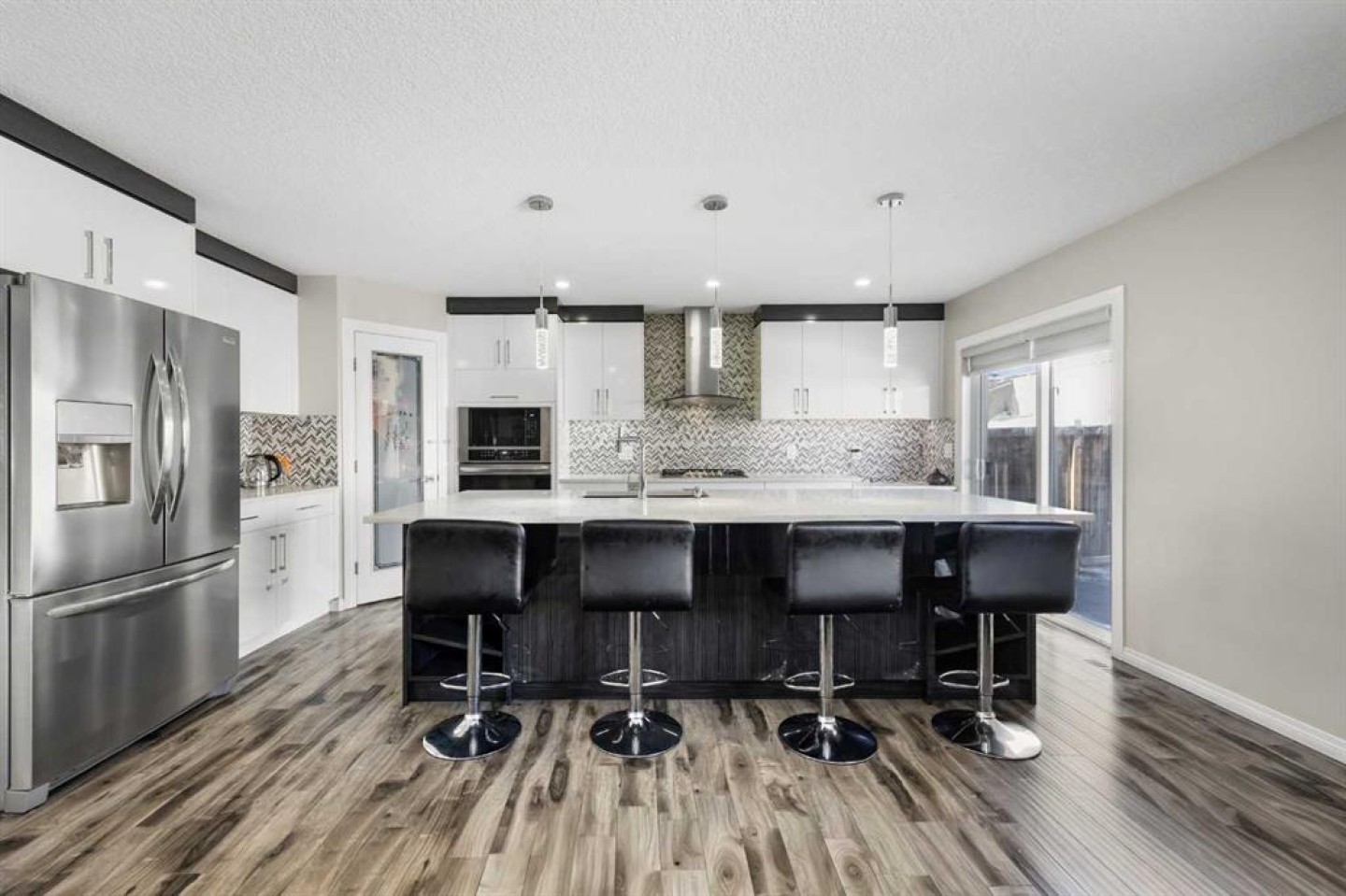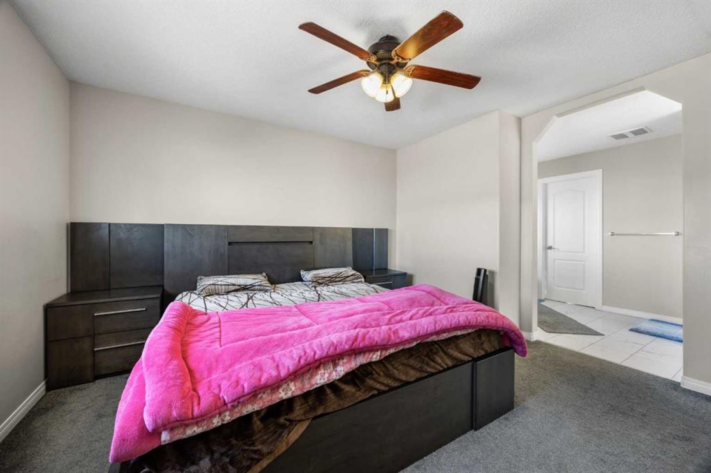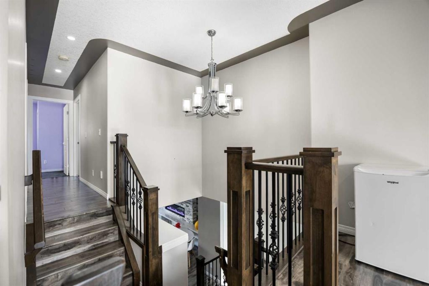 Welcome to this Beautifully Renovated family home with Central Air Conditioning, nestled in a cul-de-sac location with no neighbors behind and within walking distance to all levels of school. This home offers newer floorings, a fully upgraded kitchen with wine rack, 3+1 bedrooms, 3.5 baths, and 1,950 sq ft of comfortable living space, plus a fully finished 591 sq.ft. basement with an illegal suite and a separate entrance. Step inside and discover a wide-open floor plan with an inviting Living Room featuring a cozy electric fireplace and built-ins. An adjacent dining area perfect for family gatherings and all entertaining. The heart of the home is the modern chef-inspired Kitchen, featuring an impressive 9'9" x 4'3" quartz center island — ideal for meal prep and entertaining — complemented by stainless steel appliances including gas cooktop, built-in microwave, and built-in oven. The upper level features an exceptional 345 sq.ft. Bonus room, offering versatile space for a home theatre, playroom, or additional family area. The spacious Primary bedroom provides a peaceful retreat with ceiling fan, 4pc ensuite bath, and walk-in closet. Two additional well-sized bedrooms, both with ceiling fans, complete this level along with a full 4pc bathroom. The fully finished basement features an illegal suite with a separate entrance from the garage. The illegal suite includes a massive Recreation room with Kitchen area, one large bedroom, and a full 4pc bathroom—providing comfortable and private living space for guests or extended family. Step outside to your private backyard with no neighbors behind, offering peace and privacy. A spacious concrete patio provides the perfect outdoor space for relaxation and summer barbecues, while a generous shed offers ample storage space. Located in the Coventry Hills with easy access to schools, shopping mall, Superstore, the Vivo Rec Centre, Public Library, Movie Theatre, restaurants, parks, transit, and Stoney Trail. This is a fantastic opportunity to own a family-friendly home in one of Calgary's most desirable Northeast communities!