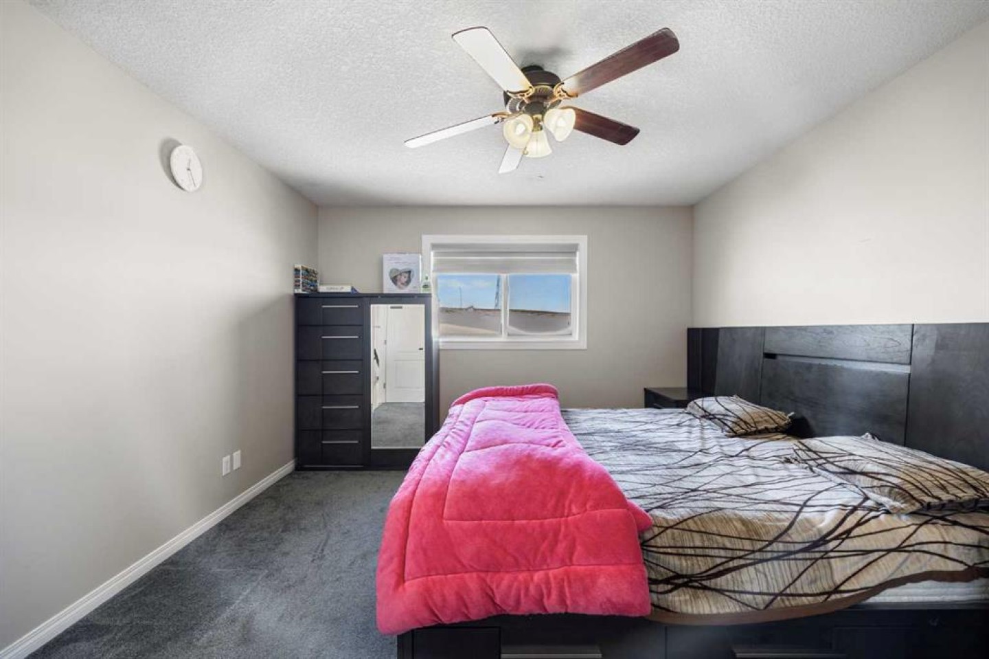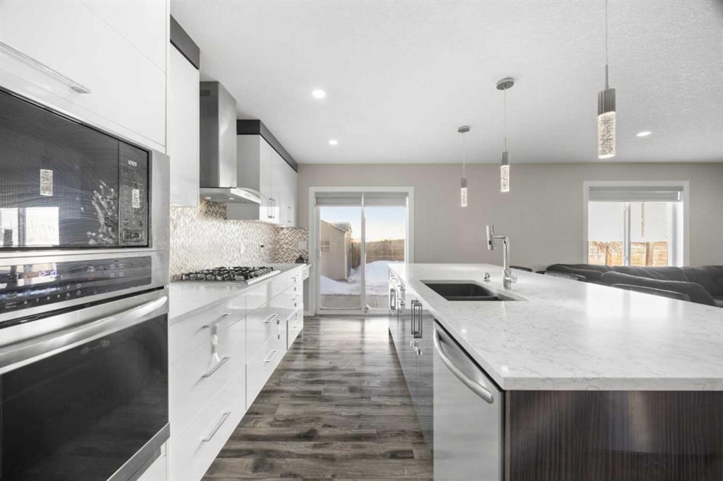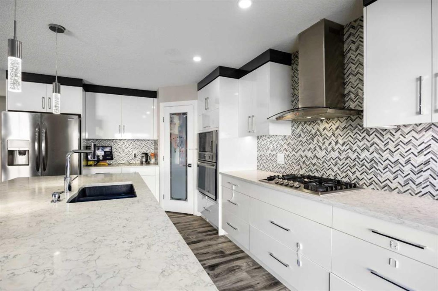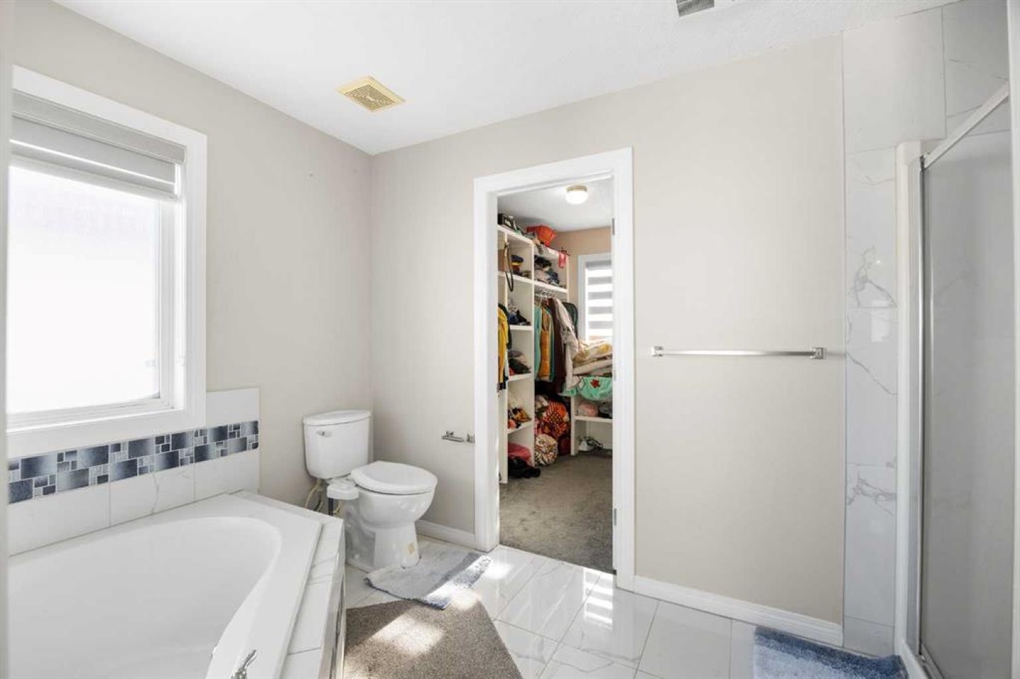 Welcome to this Beautifully Renovated family home with Central Air Conditioning, nestled in a cul-de-sac location with no neighbors behind and within walking distance to all levels of school. This home offers newer floorings, a fully upgraded kitchen with wine rack, 3+1 bedrooms, 3.5 baths, and 1,950 sq ft of comfortable living space, plus a fully finished 591 sq.ft. basement with an illegal suite and a separate entrance. Step inside and discover a wide-open floor plan with an inviting Living Room featuring a cozy electric fireplace and built-ins. An adjacent dining area perfect for family gatherings and all entertaining. The heart of the home is the modern chef-inspired Kitchen, featuring an impressive 9'9" x 4'3" quartz center island — ideal for meal prep and entertaining — complemented by stainless steel appliances including gas cooktop, built-in microwave, and built-in oven. The upper level features an exceptional 345 sq.ft. Bonus room, offering versatile space for a home theatre, playroom, or additional family area. The spacious Primary bedroom provides a peaceful retreat with ceiling fan, 4pc ensuite bath, and walk-in closet. Two additional well-sized bedrooms, both with ceiling fans, complete this level along with a full 4pc bathroom. The fully finished basement features an illegal suite with a separate entrance from the garage. The illegal suite includes a massive Recreation room with Kitchen area, one large bedroom, and a full 4pc bathroom—providing comfortable and private living space for guests or extended family. Step outside to your private backyard with no neighbors behind, offering peace and privacy. A spacious concrete patio provides the perfect outdoor space for relaxation and summer barbecues, while a generous shed offers ample storage space. Located in the Coventry Hills with easy access to schools, shopping mall, Superstore, the Vivo Rec Centre, Public Library, Movie Theatre, restaurants, parks, transit, and Stoney Trail. This is a fantastic opportunity to own a family-friendly home in one of Calgary's most desirable Northeast communities!