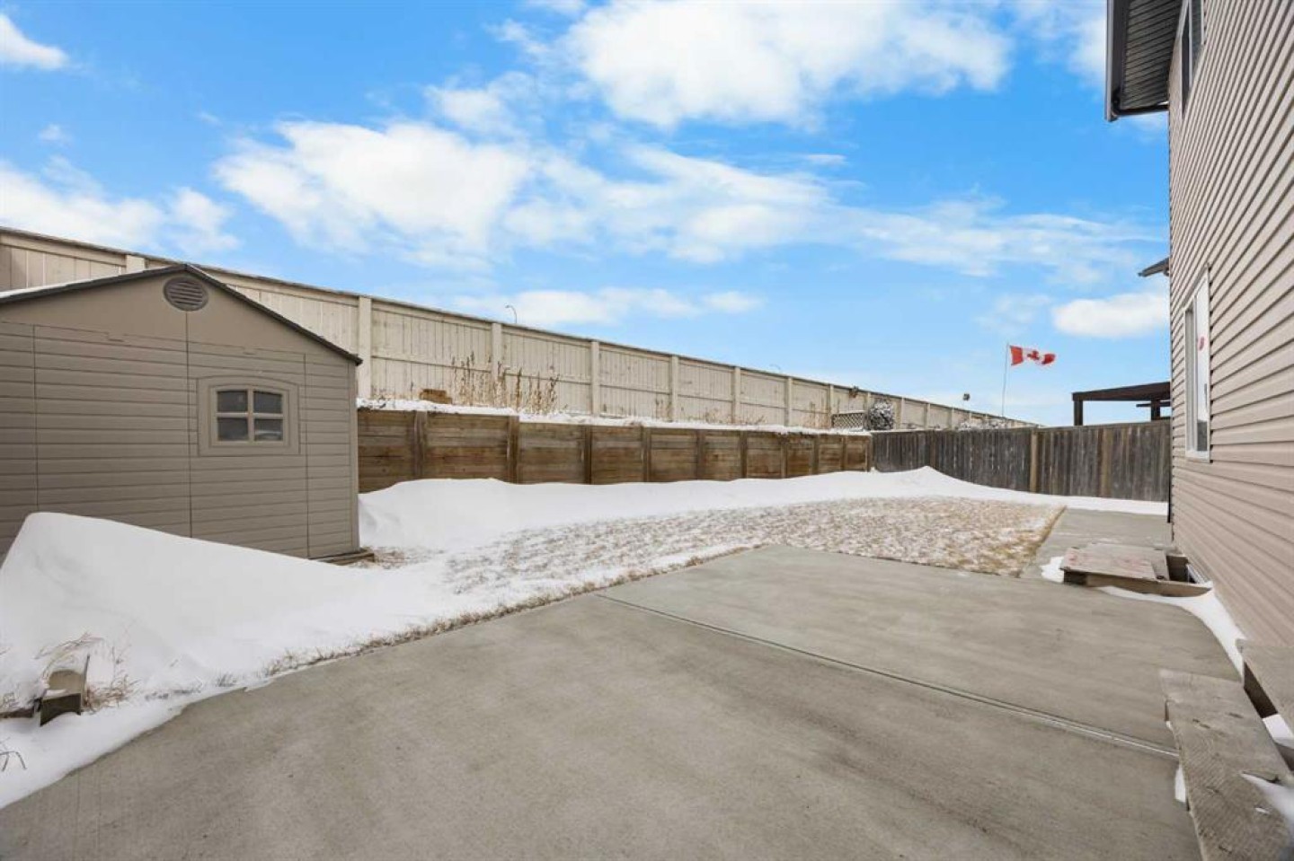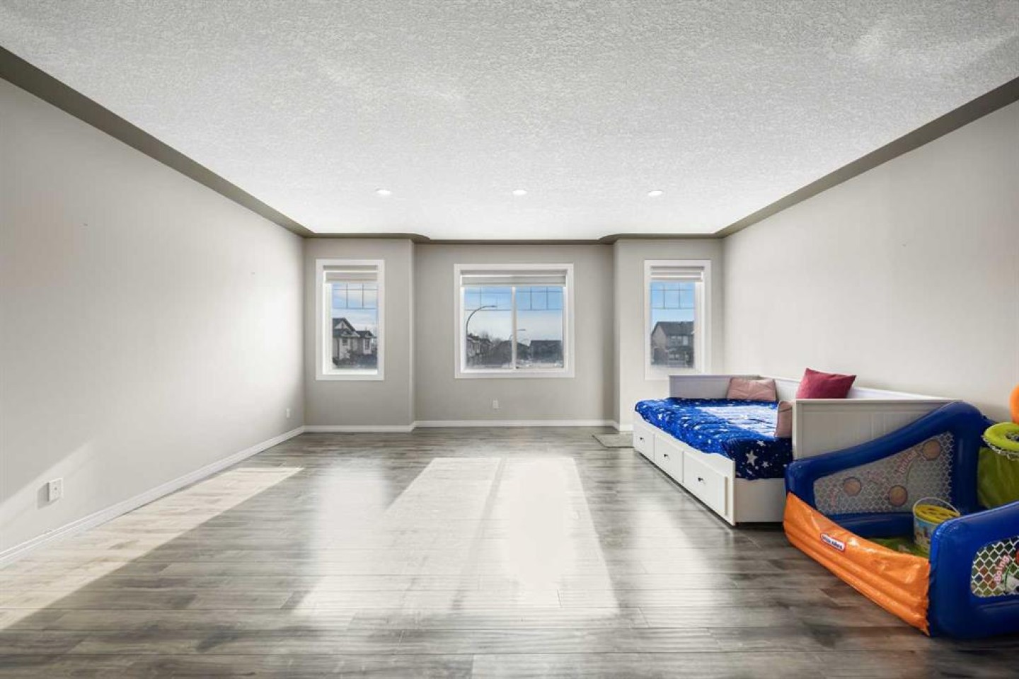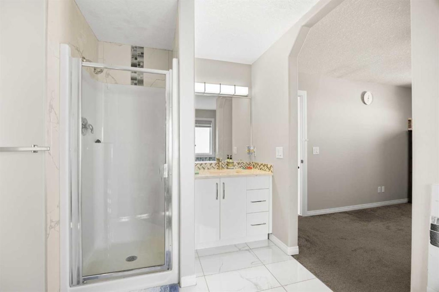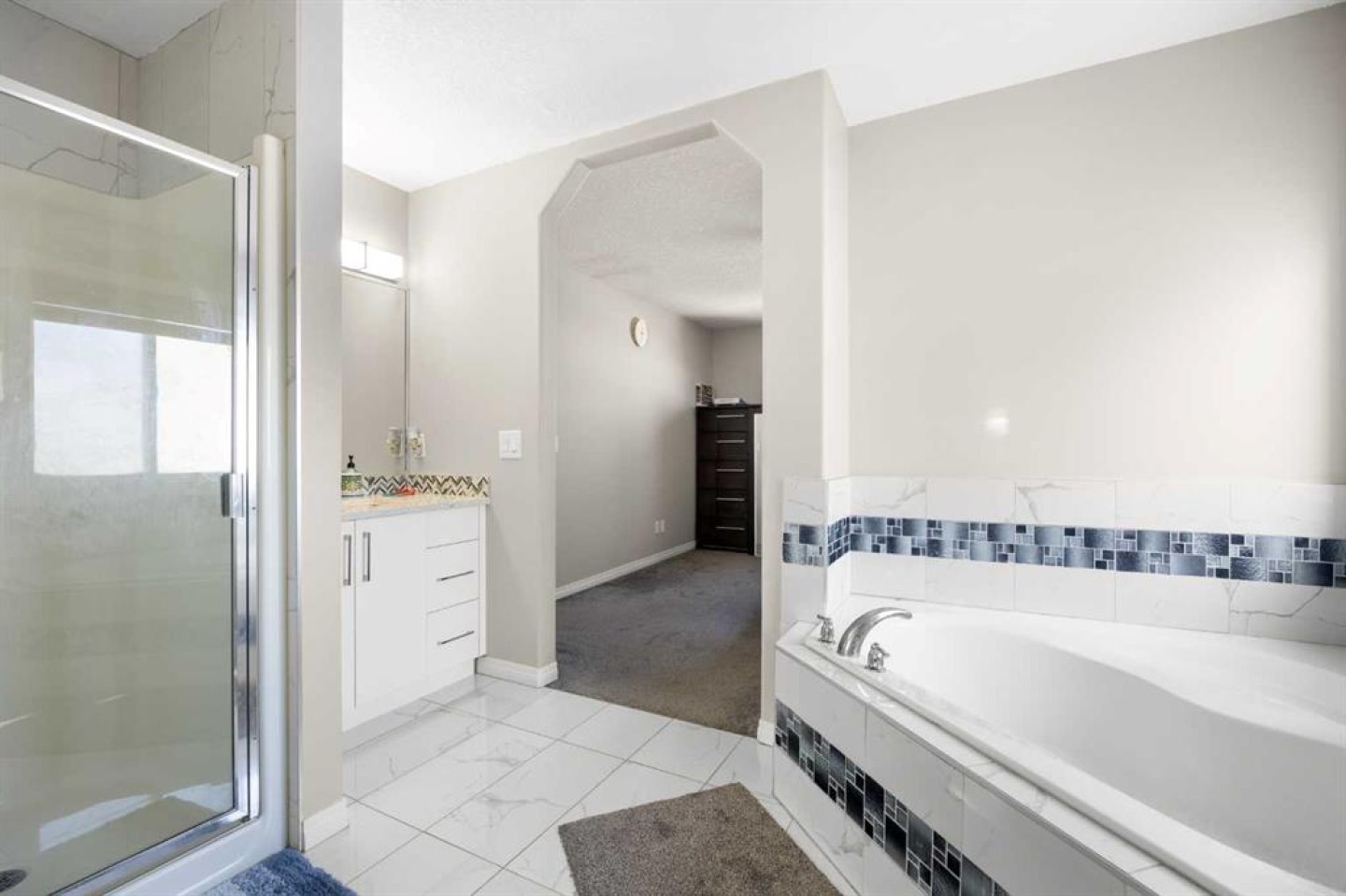Welcome to this Beautifully Renovated family home with Central Air Conditioning, nestled in a cul-de-sac location with no neighbors behind and within walking distance to all levels of school. This home offers newer floorings, a fully upgraded kitchen with wine rack, 3+1 bedrooms, 3.5 baths, and 1,950 sq ft of comfortable living space, plus a fully finished 591 sq.ft. basement with an illegal suite and a separate entrance. Step inside and discover a wide-open floor plan with an inviting Living Room featuring a cozy electric fireplace and built-ins. An adjacent dining area perfect for family gatherings and all entertaining. The heart of the home is the modern chef-inspired Kitchen, featuring an impressive 9'9" x 4'3" quartz center island — ideal for meal prep and entertaining — complemented by stainless steel appliances including gas cooktop, built-in microwave, and built-in oven. The upper level features an exceptional 345 sq.ft. Bonus room, offering versatile space for a home theatre, playroom, or additional family area. The spacious Primary bedroom provides a peaceful retreat with ceiling fan, 4pc ensuite bath, and walk-in closet. Two additional well-sized bedrooms, both with ceiling fans, complete this level along with a full 4pc bathroom. The fully finished basement features an illegal suite with a separate entrance from the garage. The illegal suite includes a massive Recreation room with Kitchen area, one large bedroom, and a full 4pc bathroom—providing comfortable and private living space for guests or extended family. Step outside to your private backyard with no neighbors behind, offering peace and privacy. A spacious concrete patio provides the perfect outdoor space for relaxation and summer barbecues, while a generous shed offers ample storage space. Located in the Coventry Hills with easy access to schools, shopping mall, Superstore, the Vivo Rec Centre, Public Library, Movie Theatre, restaurants, parks, transit, and Stoney Trail. This is a fantastic opportunity to own a family-friendly home in one of Calgary's most desirable Northeast communities!