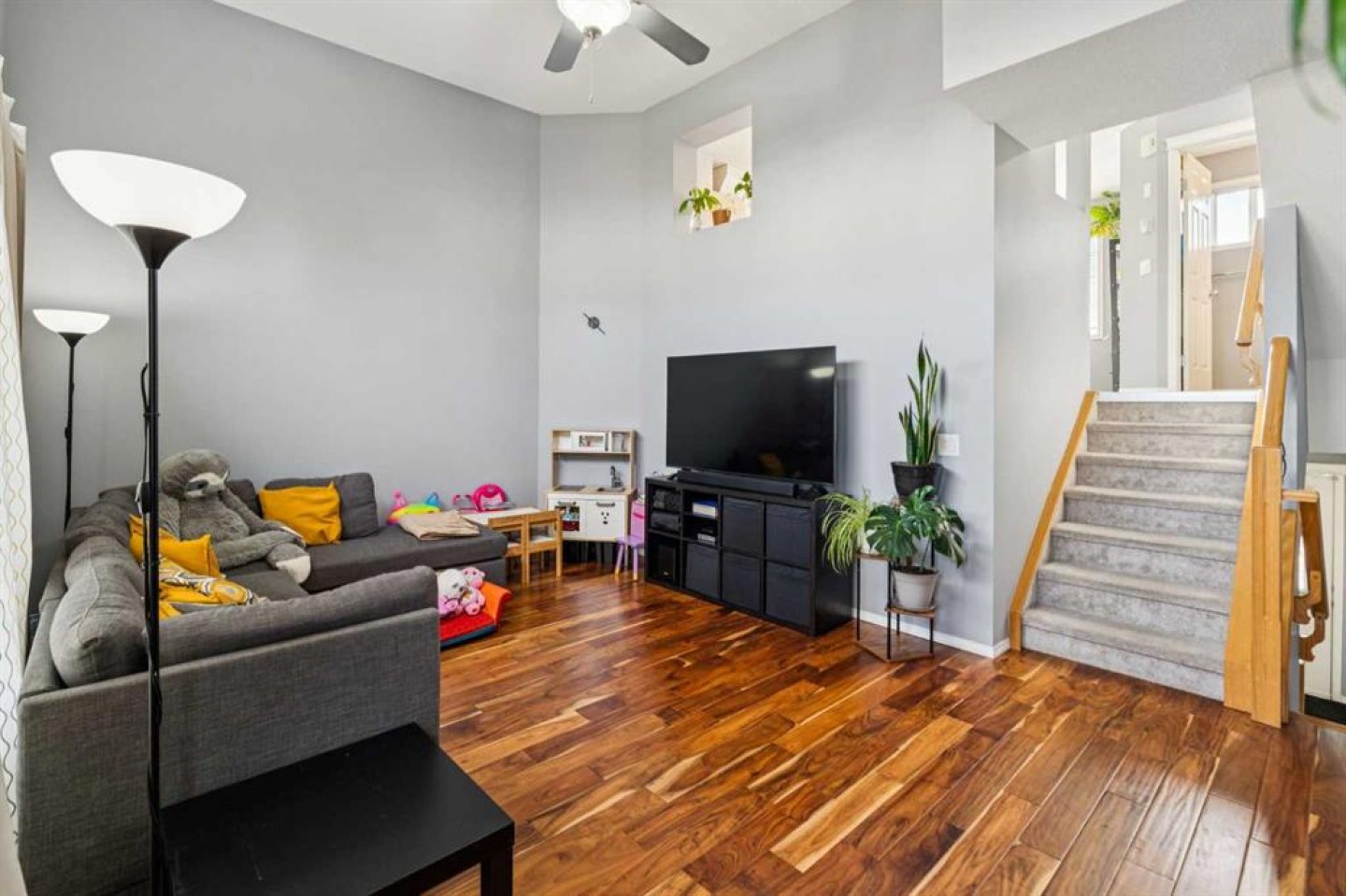 Welcome to this bright and functional 3-bedroom, 2.5-bath townhouse backing onto green space, offering a spacious multi-level floorplan ideal for families, couples, or those working from home. The main living area features tall ceilings and abundant natural light, creating an open and inviting atmosphere, complemented by fresh paint and engineered hardwood flooring. The upper level offers three bedrooms and 2 full bathroom, including a comfortable primary bedroom with ample closet space and attached ensuite bath. The fully developed lower level provides versatile additional living space, perfect for a recreation room, kids’ play area, or home office. Additional highlights include an attached single-car garage, an extra-long driveway for additional parking, and recent roof replacement. Conveniently located near East Hills Shopping Centre, Tim Hortons, Elliston Park, transit, and with quick access to Stoney Trail, this home offers an excellent balance of space, functionality, and low-maintenance living. Backing onto green space, this property provides added privacy and a peaceful outdoor setting, making it a great opportunity for buyers seeking convenience and comfort.