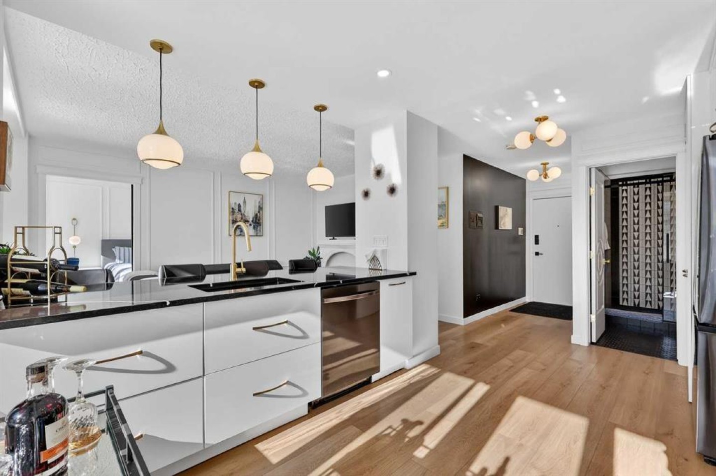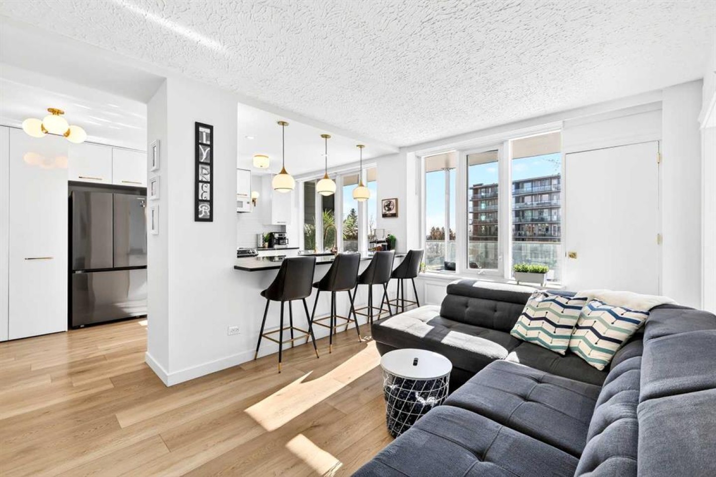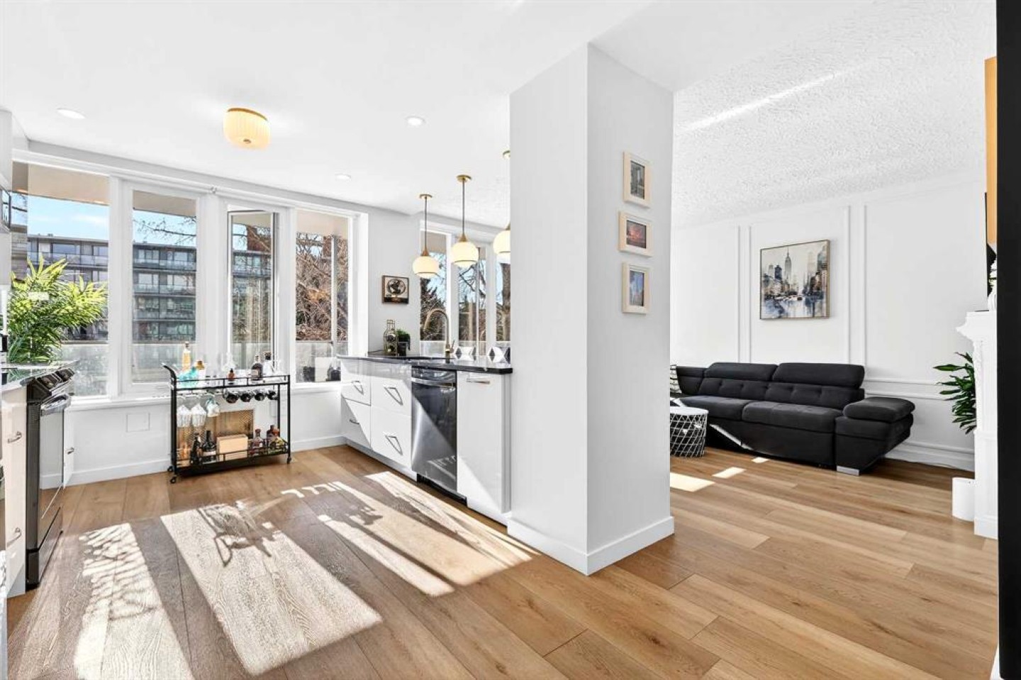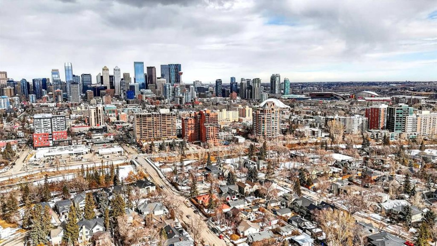 Welcome to the King of the Castle at Rideau Towers!! One of Calgary’s greatest hidden gems. Perfectly perched in an unbeatable inner-city location, this beautifully reimagined residence blends timeless character with modern sophistication in a fully accessible building rich with history. Step inside to a bright, open-concept living space filled with natural light from expansive south-facing windows. Elegant raised paneling and wide luxury vinyl plank flooring create a refined yet inviting atmosphere throughout. The thoughtfully redesigned kitchen is a culinary dream, featuring ceiling-height white cabinetry, a stylish white brick backsplash, sleek black quartz countertops, and generous counter space perfect for both everyday living and entertaining. The bathroom showcases art-deco inspired tilework, complemented by warm brass fixtures, a luxurious 12-inch rain showerhead, and a cleverly integrated mirrored cabinet for additional storage. Opposite the kitchen, the living room offers a stunning focal point with raised paneling and a charming weathered white brick fireplace frame, providing the perfect canvas for your own creative décor. The bedroom is equally impressive, offering 10 feet of built-in closet space along the far wall. Step outside to your 30 foot south facing balcony, where you can enjoy peaceful sunrise views overlooking the lush greenery surrounding Rideau Towers and the Parkhill community. Additional features include a spacious front entry closet that can double as a pantry, secure underground parking, and a separate storage unit. Residents also enjoy access to the 13-acre park-like grounds, complete with a private outdoor swimming pool, a rare amenity in the heart of the city. Built in 1955, Rideau Towers stands apart as a truly unique complex where each unit has been individually designed, creating a sense of character and individuality rarely found today. Surrounded by some of Calgary’s most prestigious communities such as Rideau Park, Roxboro, Parkhill, Mission, and the Stampede Grounds. This stunning unit is just a short walk to trendy 4th Street and downtown, the lifestyle offered here is second to none. A rare opportunity to own in one of Calgary’s most distinctive and charming buildings. Book your showing today.