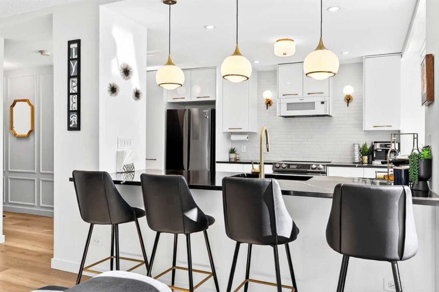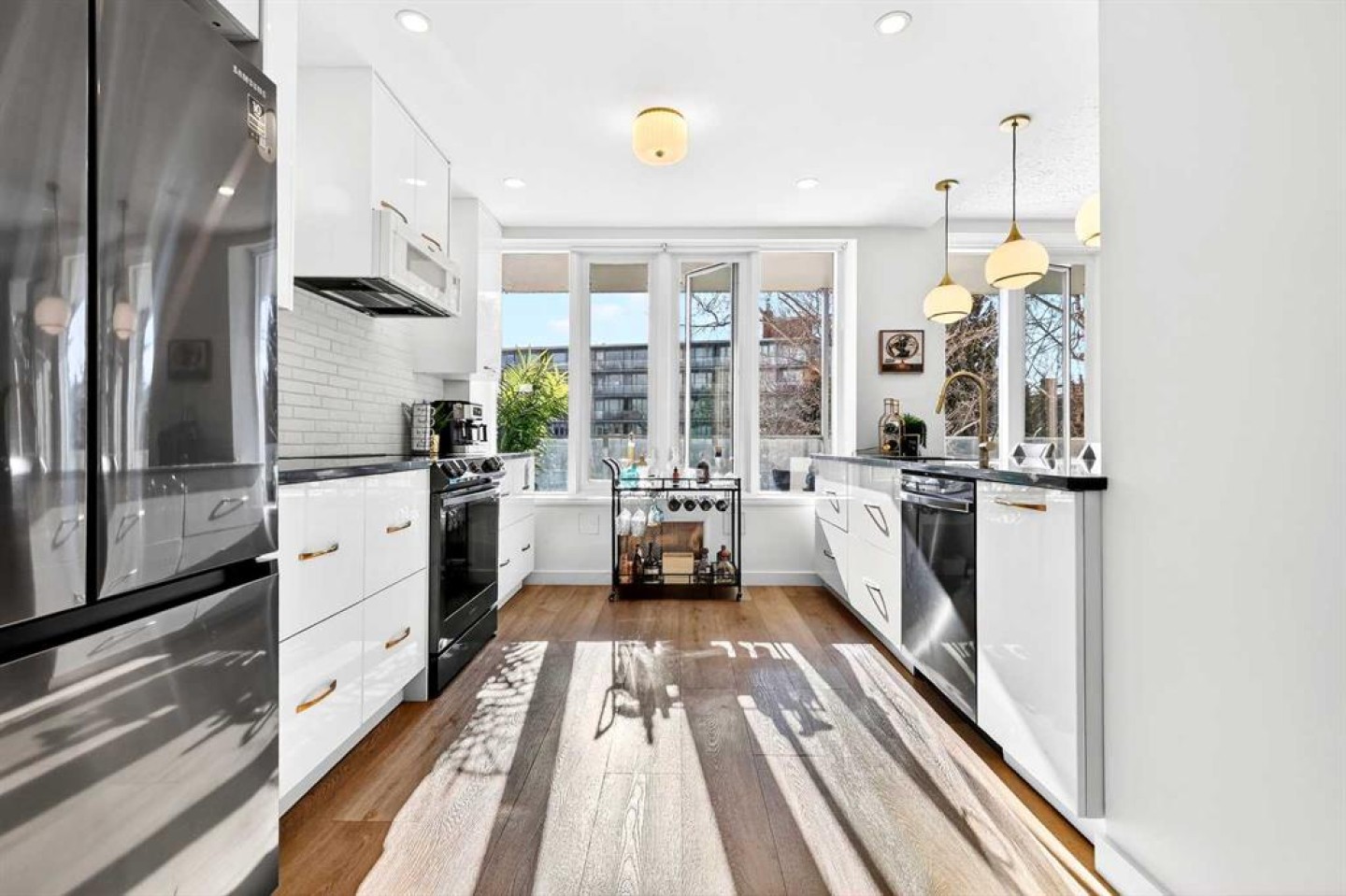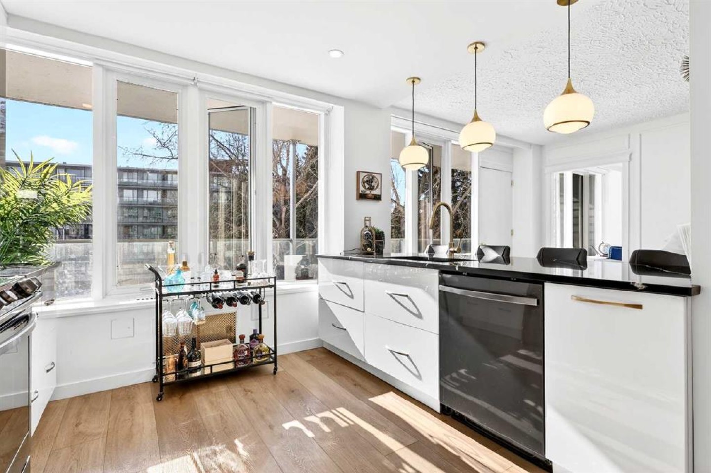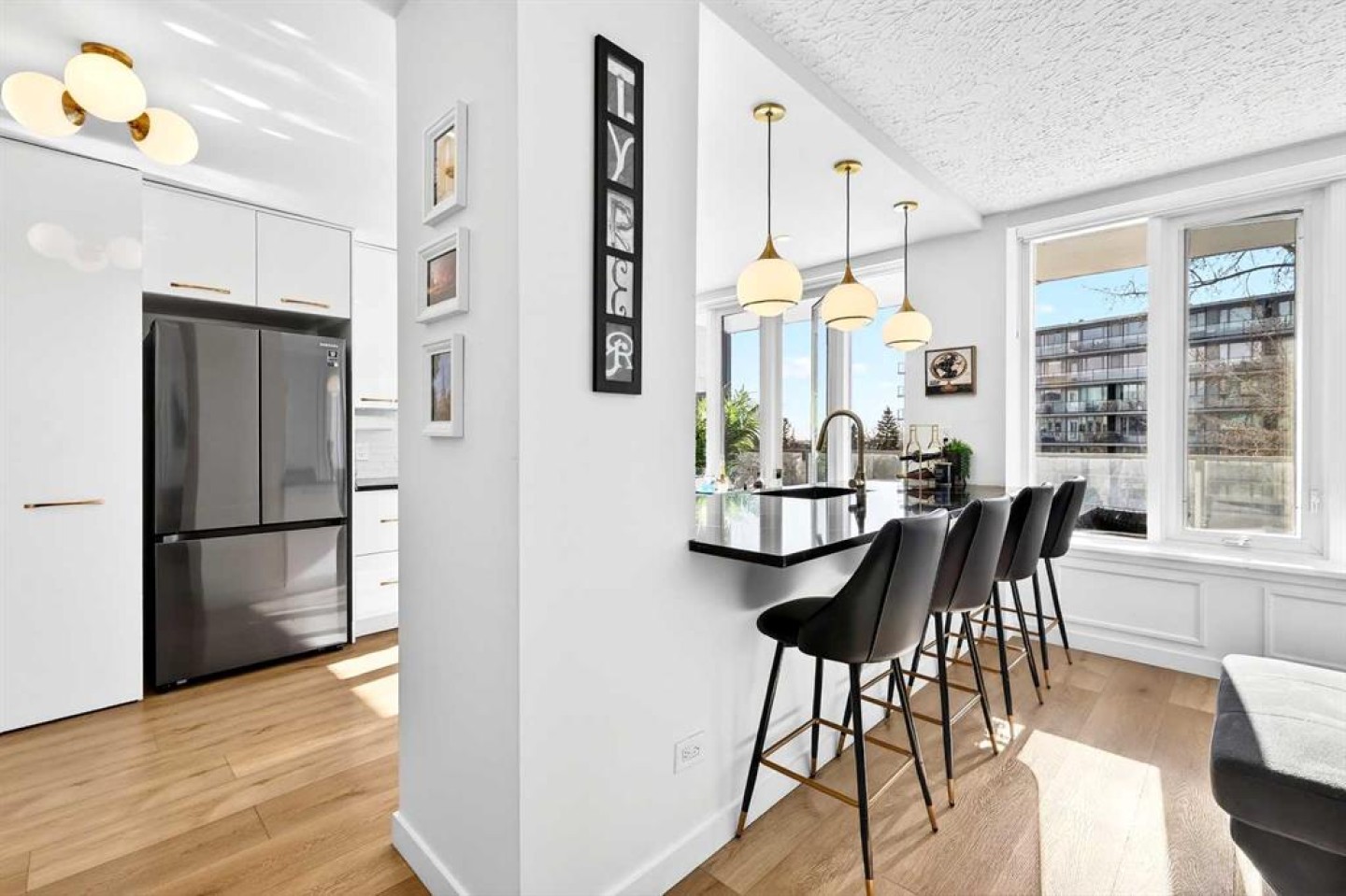 Welcome to the King of the Castle at Rideau Towers!! One of Calgary’s greatest hidden gems. Perfectly perched in an unbeatable inner-city location, this beautifully reimagined residence blends timeless character with modern sophistication in a fully accessible building rich with history. Step inside to a bright, open-concept living space filled with natural light from expansive south-facing windows. Elegant raised paneling and wide luxury vinyl plank flooring create a refined yet inviting atmosphere throughout. The thoughtfully redesigned kitchen is a culinary dream, featuring ceiling-height white cabinetry, a stylish white brick backsplash, sleek black quartz countertops, and generous counter space perfect for both everyday living and entertaining. The bathroom showcases art-deco inspired tilework, complemented by warm brass fixtures, a luxurious 12-inch rain showerhead, and a cleverly integrated mirrored cabinet for additional storage. Opposite the kitchen, the living room offers a stunning focal point with raised paneling and a charming weathered white brick fireplace frame, providing the perfect canvas for your own creative décor. The bedroom is equally impressive, offering 10 feet of built-in closet space along the far wall. Step outside to your 30 foot south facing balcony, where you can enjoy peaceful sunrise views overlooking the lush greenery surrounding Rideau Towers and the Parkhill community. Additional features include a spacious front entry closet that can double as a pantry, secure underground parking, and a separate storage unit. Residents also enjoy access to the 13-acre park-like grounds, complete with a private outdoor swimming pool, a rare amenity in the heart of the city. Built in 1955, Rideau Towers stands apart as a truly unique complex where each unit has been individually designed, creating a sense of character and individuality rarely found today. Surrounded by some of Calgary’s most prestigious communities such as Rideau Park, Roxboro, Parkhill, Mission, and the Stampede Grounds. This stunning unit is just a short walk to trendy 4th Street and downtown, the lifestyle offered here is second to none. A rare opportunity to own in one of Calgary’s most distinctive and charming buildings. Book your showing today.
