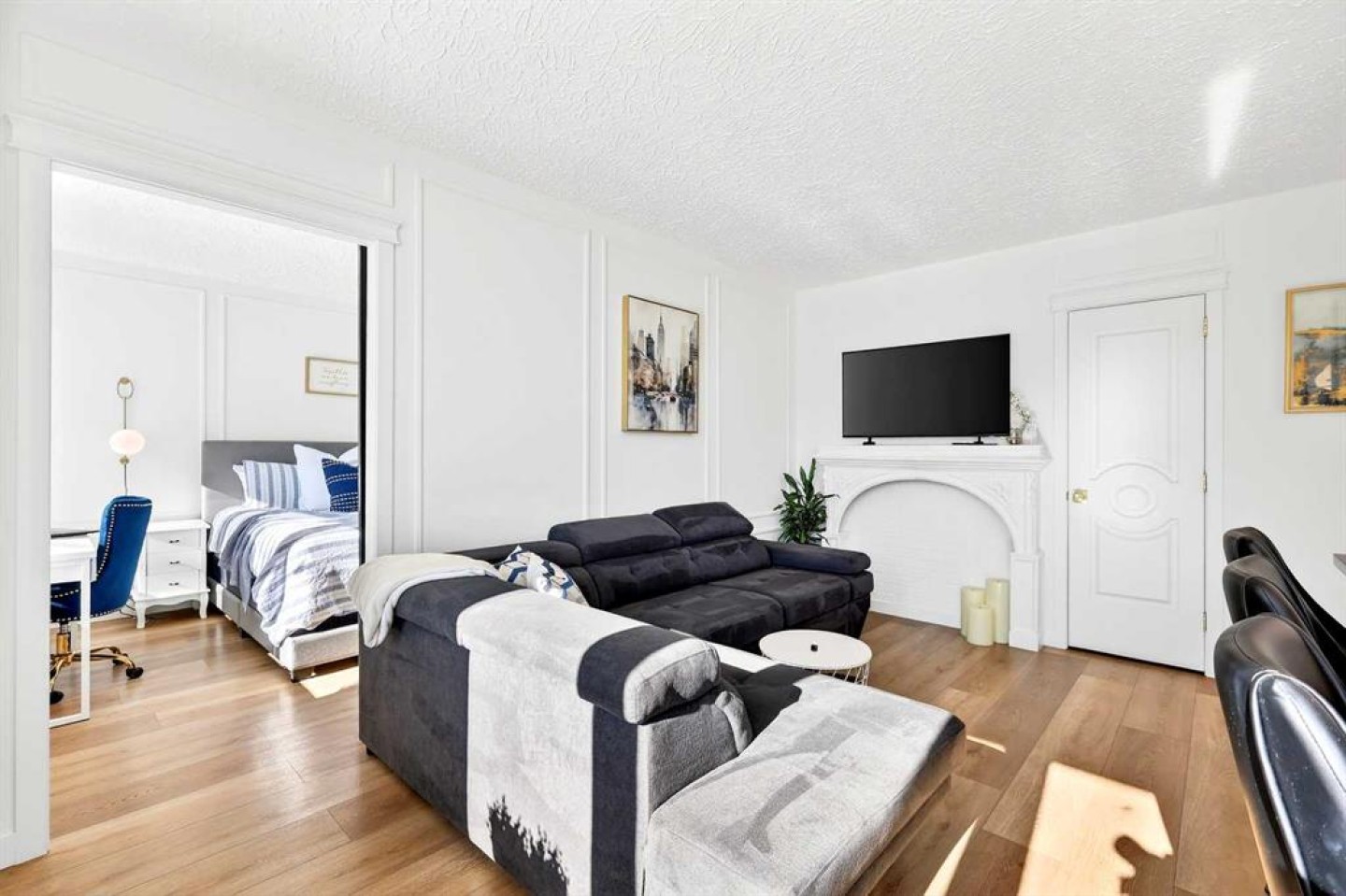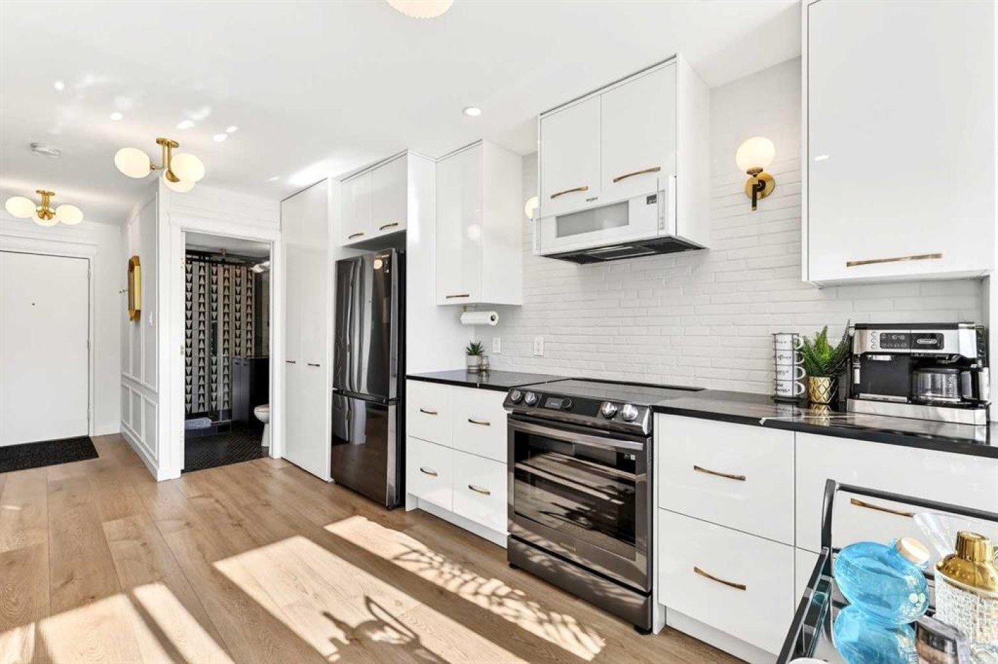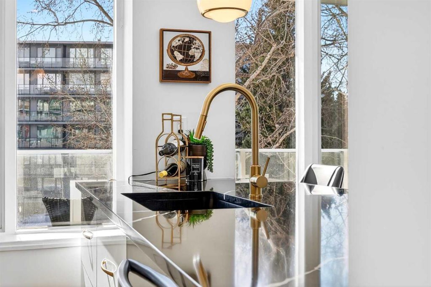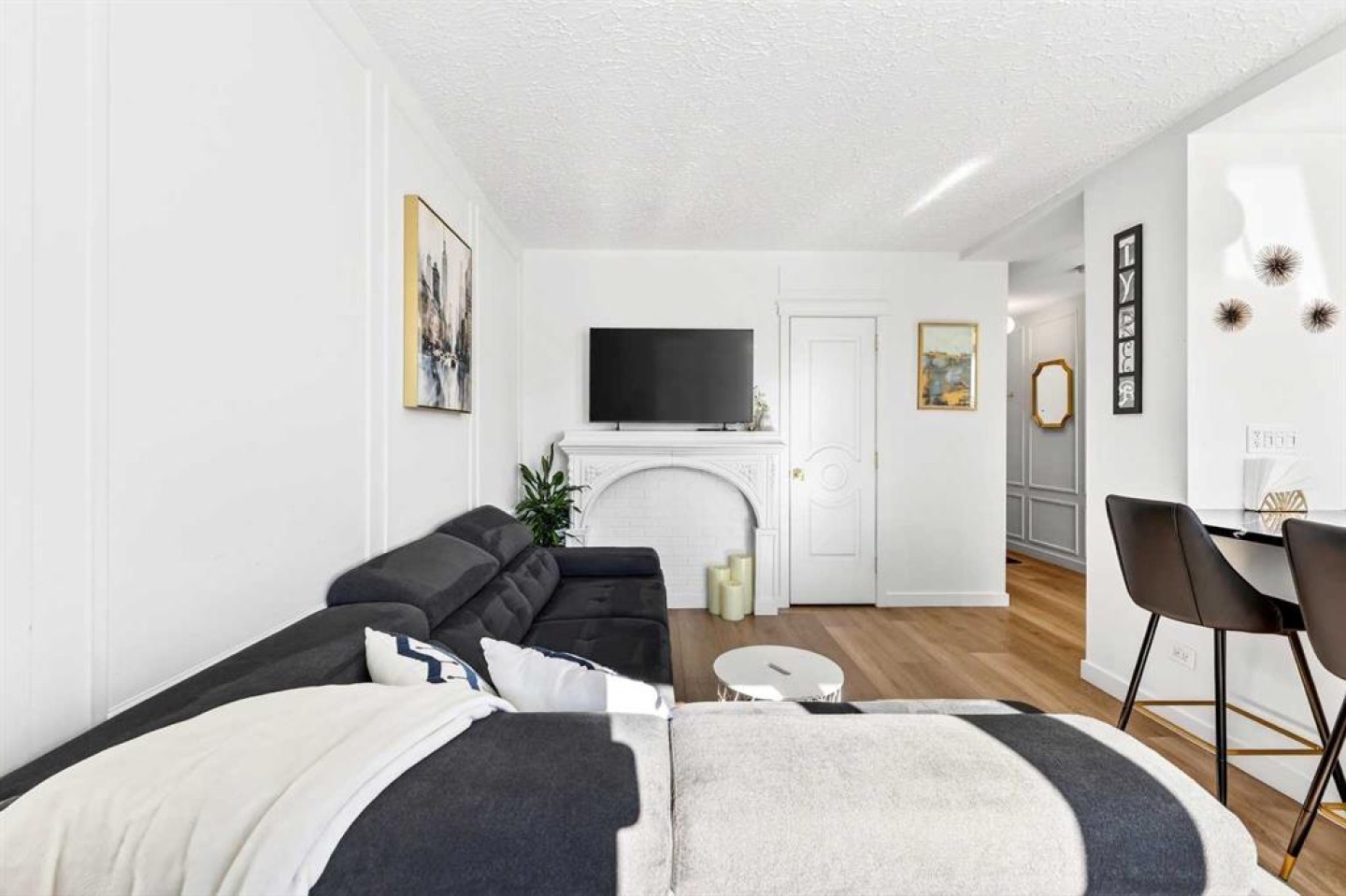 Welcome to the King of the Castle at Rideau Towers!! One of Calgary’s greatest hidden gems. Perfectly perched in an unbeatable inner-city location, this beautifully reimagined residence blends timeless character with modern sophistication in a fully accessible building rich with history. Step inside to a bright, open-concept living space filled with natural light from expansive south-facing windows. Elegant raised paneling and wide luxury vinyl plank flooring create a refined yet inviting atmosphere throughout. The thoughtfully redesigned kitchen is a culinary dream, featuring ceiling-height white cabinetry, a stylish white brick backsplash, sleek black quartz countertops, and generous counter space perfect for both everyday living and entertaining. The bathroom showcases art-deco inspired tilework, complemented by warm brass fixtures, a luxurious 12-inch rain showerhead, and a cleverly integrated mirrored cabinet for additional storage. Opposite the kitchen, the living room offers a stunning focal point with raised paneling and a charming weathered white brick fireplace frame, providing the perfect canvas for your own creative décor. The bedroom is equally impressive, offering 10 feet of built-in closet space along the far wall. Step outside to your 30 foot south facing balcony, where you can enjoy peaceful sunrise views overlooking the lush greenery surrounding Rideau Towers and the Parkhill community. Additional features include a spacious front entry closet that can double as a pantry, secure underground parking, and a separate storage unit. Residents also enjoy access to the 13-acre park-like grounds, complete with a private outdoor swimming pool, a rare amenity in the heart of the city. Built in 1955, Rideau Towers stands apart as a truly unique complex where each unit has been individually designed, creating a sense of character and individuality rarely found today. Surrounded by some of Calgary’s most prestigious communities such as Rideau Park, Roxboro, Parkhill, Mission, and the Stampede Grounds. This stunning unit is just a short walk to trendy 4th Street and downtown, the lifestyle offered here is second to none. A rare opportunity to own in one of Calgary’s most distinctive and charming buildings. Book your showing today.