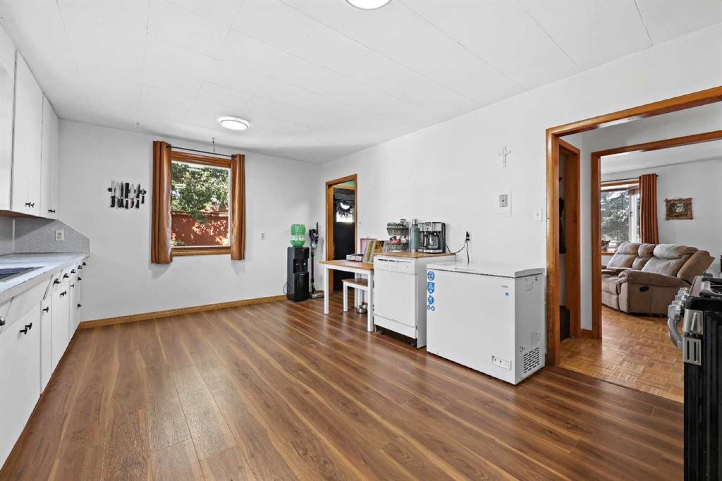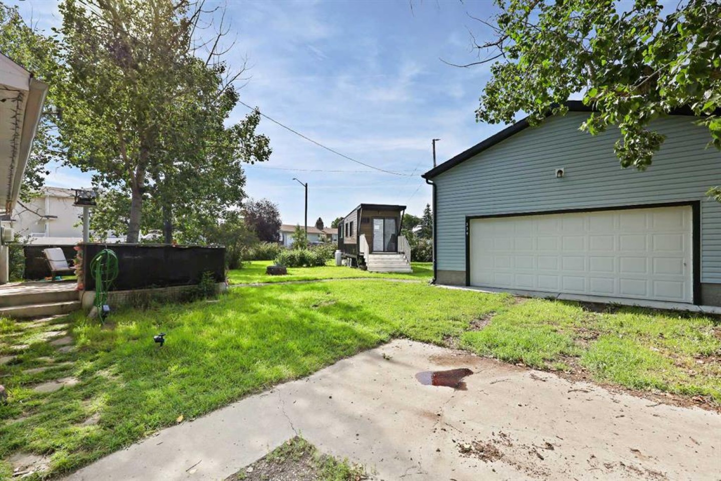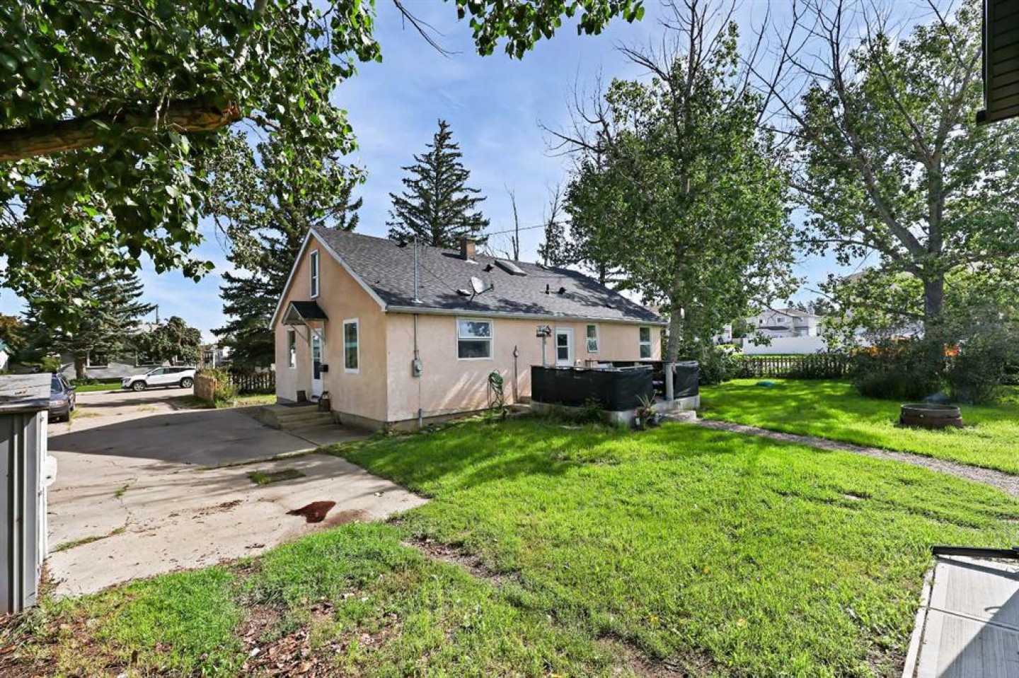 Welcome to this warm and inviting 4-bedroom, 1-bath country-style home nestled in the heart of Irricana—just 30 minutes from Calgary! Situated on a massive corner lot the size of four standard lots, this property offers an abundance of space with 1837 sqft of developed living space, privacy, and natural beauty with mature trees and fruit shrubs throughout. Inside, you’ll find a bright and spacious layout with two bedrooms and a full 4-piece bath on the main floor, and two additional bedrooms plus a den upstairs perfect for a home office or playroom. The home features a large kitchen with ample cabinet space, a designated dining area, and three separate entrance points, making it functional and family-friendly. A cozy wood-burning fireplace anchors the living area, creating a perfect spot to gather and unwind. You’ll love the abundance of storage throughout the home, including cold storage or a hobby room in the basement. Step outside to your private backyard oasis—ideal for family gatherings, gardening, or simply enjoying peaceful evenings around the fire, soaking in the quiet serenity of small-town living. A huge detached garage with a hoist offers incredible potential for a mechanic, hobbyist, or small business owner. Located in a quiet and friendly neighbourhood, with local amenities nearby and additional services just 10 minutes away in Beiseker, this property is perfect for families or investors looking to subdivide the oversized lot. This home has been thoughtfully updated over the years and is ready for its next chapter—don't miss out on this unique opportunity! A must-see for those craving space, charm, and small-town peace.