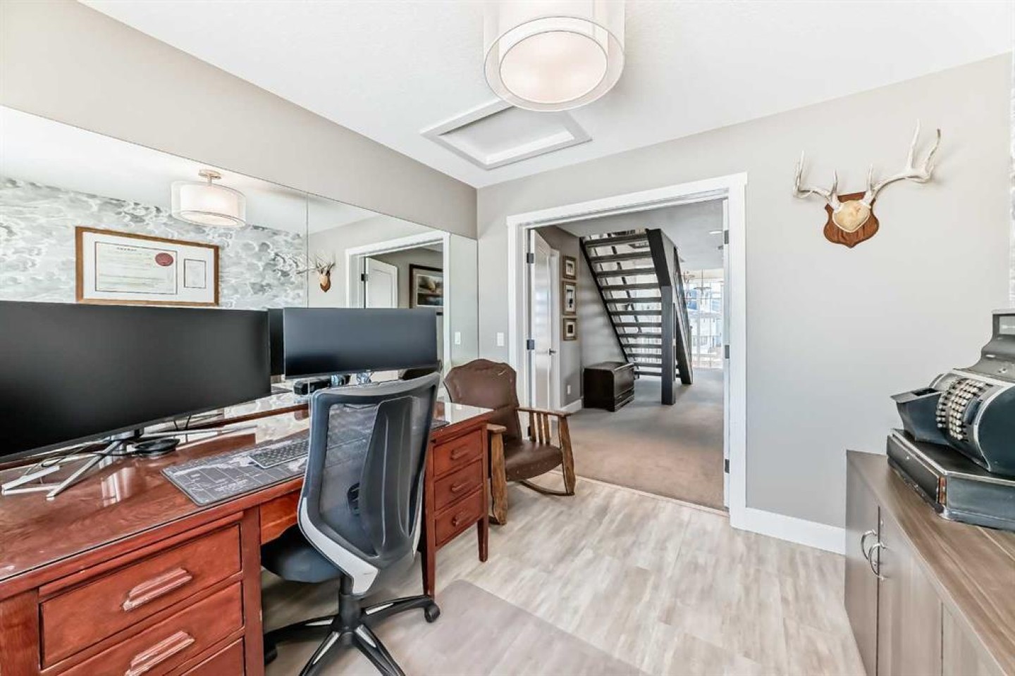 Situated in the award-winning lake community of Harmony in Rural Rocky View County, 108 Cattail Run is a masterclass in modern luxury and functional design, offering over 4,000 square feet of meticulously crafted living space. From the moment you arrive, the oversized garage (which may fit 4 cars) signals that this home was built for a lifestyle of both scale and convenience—providing ample room for your vehicles, a workshop, or all the "lake life" toys you’ll inevitably acquire. To add to this space is the massive amount of space for RV's boats, or trailers out behind the home! The interior is anchored by stunning hardwood floors that flow through an open-concept main level, leading you toward a kitchen that would make a professional chef blush. Featuring high-end appliances, soft-close cabinetry, a convection oven, and a dedicated warming oven, this culinary hub is anchored by massive double-wide refrigerators and a highly functional butler’s pantry to keep your prep work tucked away while hosting. Whether you're retreating to the rooftop patio to soak in the Alberta sunsets or gathering in the upper-level bonus room, the home offers a variety of spaces to unwind. The four spacious bedrooms and 3.5 bathrooms ensure everyone has their own sanctuary, with the added luxury of heated floors in the bathrooms to make those crisp Rocky View mornings much more inviting. The fully finished basement rec room offers the ultimate venue for movie nights or gym space. A large custom sauna will be sure to sooth the body during a crisp winter night. The top floor deck has also been engineered and is pre-wired to be able to accomodate a hot tub ! The southwest-facing backyard ensures your outdoor living area is drenched in sunlight from afternoon to evening. It is a rare combination of high-spec finishes and thoughtful layout, all set within a community that prizes wellness, nature, and world-class amenities like the Mickelson National Golf Club and the future village centre.
