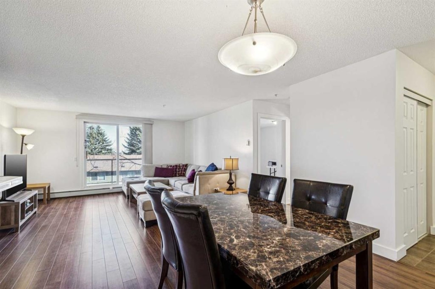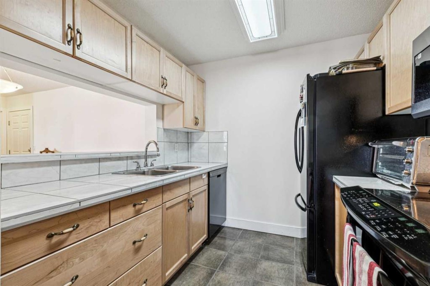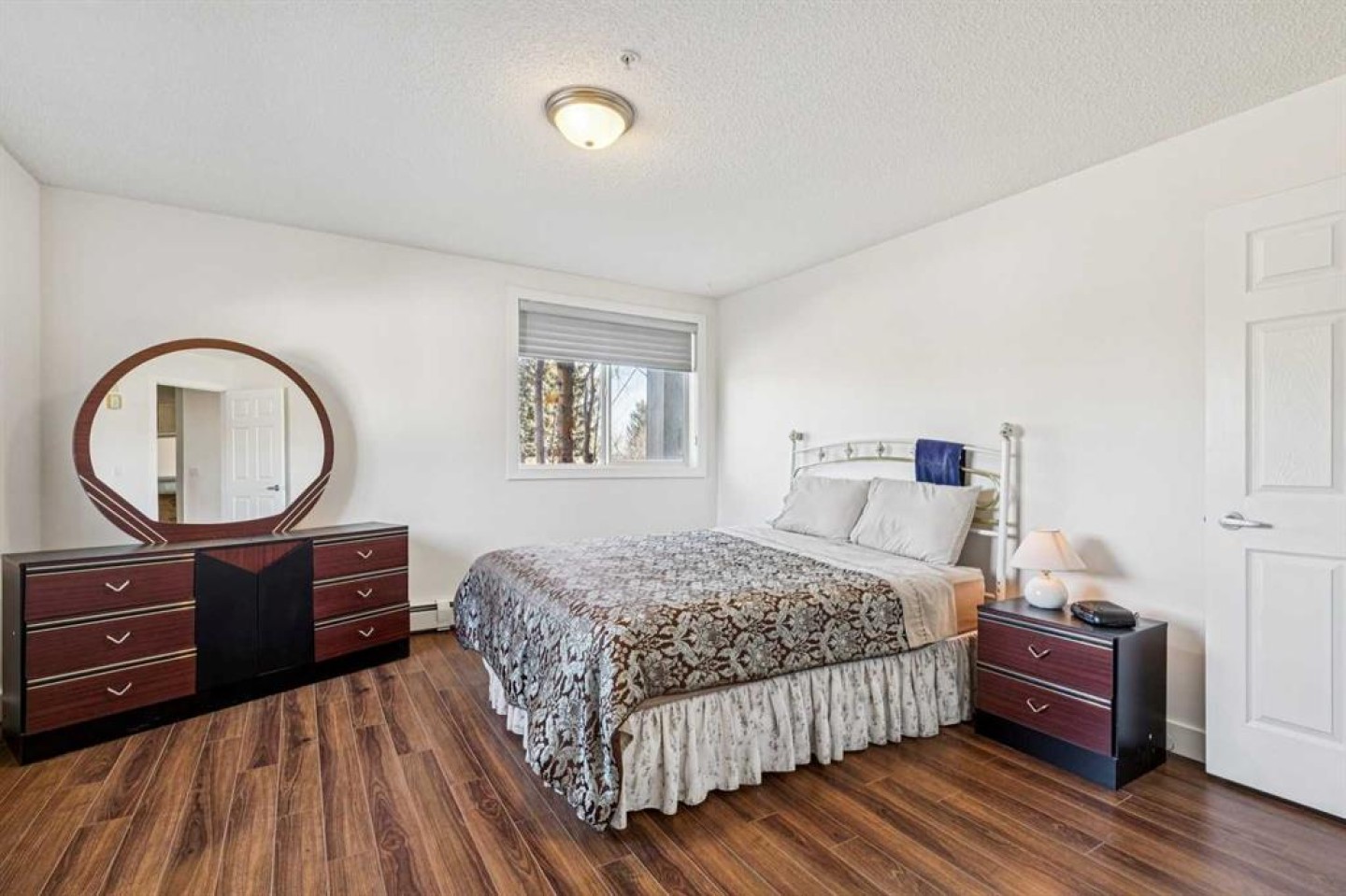 Welcome to Unit 202 in the highly desirable Valhalla Ridge complex, ideally located in the established community of Queensland — just up the road from the entrance to Fish Creek Park and its incredible network of scenic walking and river pathways. This spacious 2 bedroom, 2 bathroom corner unit offers over 1,000 sq ft of comfortable living and is perfectly positioned at the back of the building, away from the parking lot and traffic for added privacy and quiet. A well-maintained building with elevator access and secured underground parking adds everyday convenience, while the unit itself features a large in-suite laundry room, generous storage throughout, and an additional storage locker located with the parking stall. Step inside to a welcoming foyer that opens into a bright, open-concept living and dining area with access to your covered balcony — perfect for relaxing or enjoying fresh air year-round. The functional galley-style kitchen features a convenient pass-through to the dining space, ideal for entertaining and everyday living. The primary bedroom enjoys a corner location with multiple windows that fill the space with natural light, along with a walk-through closet and private 4-piece ensuite. On the opposite side of the unit, you’ll find a well-sized second bedroom and another full 4-piece bathroom — an ideal layout for guests, roommates, or a home office. With excellent value in the condo fees for the size, a thoughtful layout, and a well-cared-for interior, this move-in ready home is a fantastic opportunity in a prime location close to nature, amenities, and major routes.