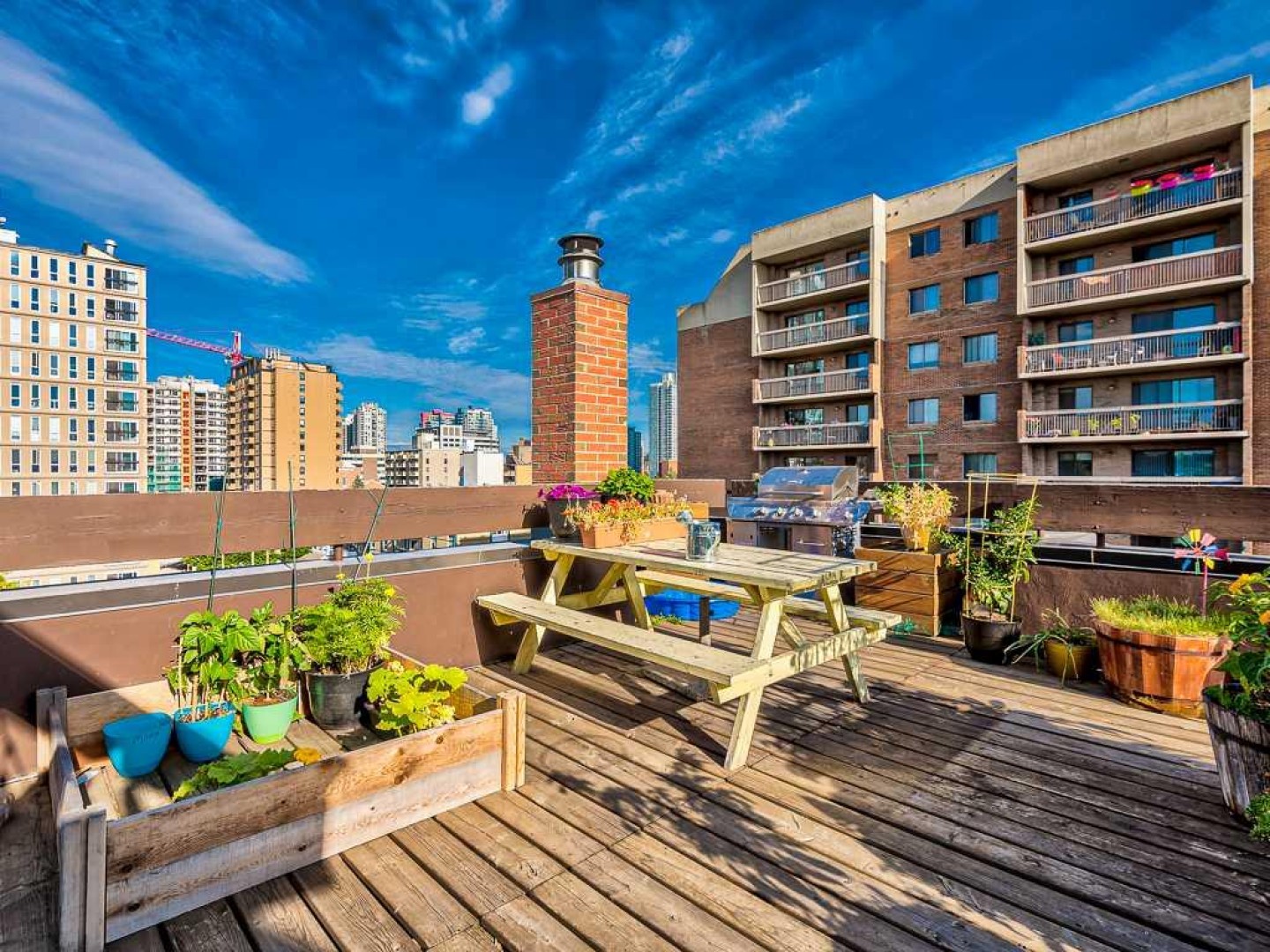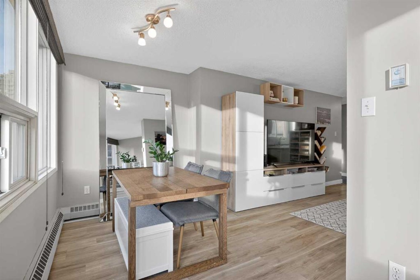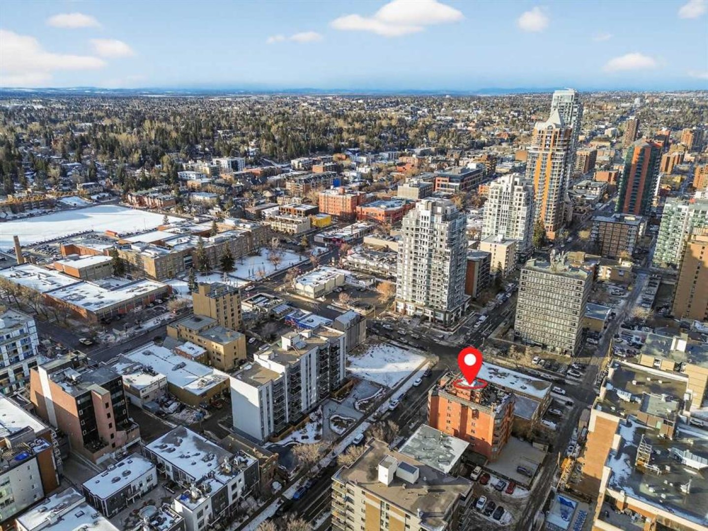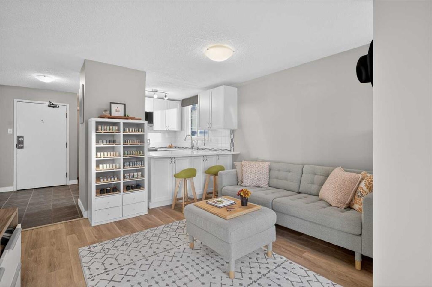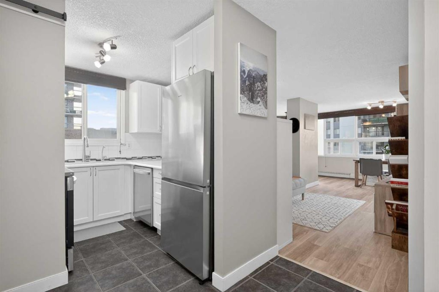**Welcome to this EXTENSIVELY RENOVATED 2 Bedroom + Den condo, offering a refined blend of comfort, style, and urban convenience. Nestled on a quiet, tree-lined avenue just two blocks from vibrant 17TH AVENUE this SE corner unit enjoys additional windows and an abundance of natural light throughout the day. The interior showcases NEWER wide-plank flooring, in-suite laundry, and the added convenience of an assigned UNDERGROUND PARKING stall. The kitchen has been FULLY RENOVATED within the past 2 years, featuring updated cabinetry, generous counter space with an extended breakfast bar, and ALL-NEW stainless steel appliances, including a NEW washer/dryer. A rare kitchen window enhances both light and functionality, an uncommon luxury in condo living. The kitchen flows seamlessly into the spacious living room, making it ideal for entertaining. Adjacent to the dining area, the open-concept DEN provides an excellent work-from-home studio or creative art space, offering flexibility to suit your lifestyle. Both bedrooms are well-proportioned, and the FULL BATHROOM HAS BEEN UPDATED with a new vanity and toilet, adding to the home’s move-in-ready appeal. Residents also enjoy access to a ROOFTOP PATIO with sweeping views of Calgary’s ever-changing skyline, perfect for hosting gatherings, grilling, or simply unwinding. This home offers the unique advantage of being steps from a vibrant social scene while still providing a peaceful, private retreat. Pet Policy: Maximum of two domestic cats or dogs, each not exceeding 15 kg when fully grown.