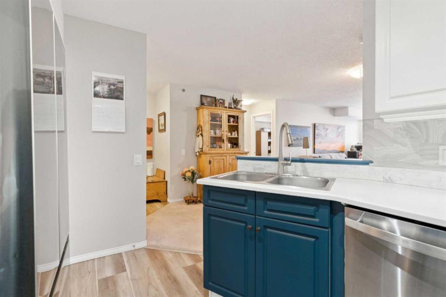 Retire your Cares - NOT your Dreams! Immaculate TOP FLOOR 2 Bedroom/2 Bath Condo with TREED Courtyard Views, AMAZING In-House Amenities & Numerous UPDATES throughout! Stylish Modern Kitchen - QUARTZ Counters, Crisp White & Blue Cabinetry, Stainless Steel Fridge & Dishwasher & Convenient Side PANTRY. Flexible Open Living & Dining Area with lots of natural light - Generous Master with WALK-THRU Closets & Ensuite bath, Spacious 2nd Bedroom perfect for Guests or a Computer/Sewing/Craft Room, 2nd full Bath with “Easy Access” Shower & Private Balcony for relaxing morning coffees with Sunrise views. There’s a large Laundry & Storage Room with newer washer & dryer Plus an X-TRA Storage Locker in your UNDERGROUND parking stall. How’s your SOCIAL calendar? Dana Village offers daily activities - fitness classes, movie nights, potluck dinners, weekly shopping outings, game nights & a “HELPING HANDS” committee to assist owners with small daily chores, along with exceptional SITE FACILITIES - Fitness, Billiards, & Puzzle areas, Woodworking Shop & even a Car Wash Bay - all accessible WITHOUT going outside. SUPERIOR complex construction focused on SAFETY & SECURITY includes 5 elevators, security doors & low maintenance fire retardant materials - Concrete Tile roof, Stucco exterior & fire suppression system with sprinklers & speakers. 55+ AGE Restricted, Non-Smoking complex & 1 cat is permitted with Board Approval. CENTRAL LOCATION with Easy Access to Transit & LRT, Shopping, Downtown & the Mountains too. Those who say “You can’t buy happiness” haven’t been to Dana Village!