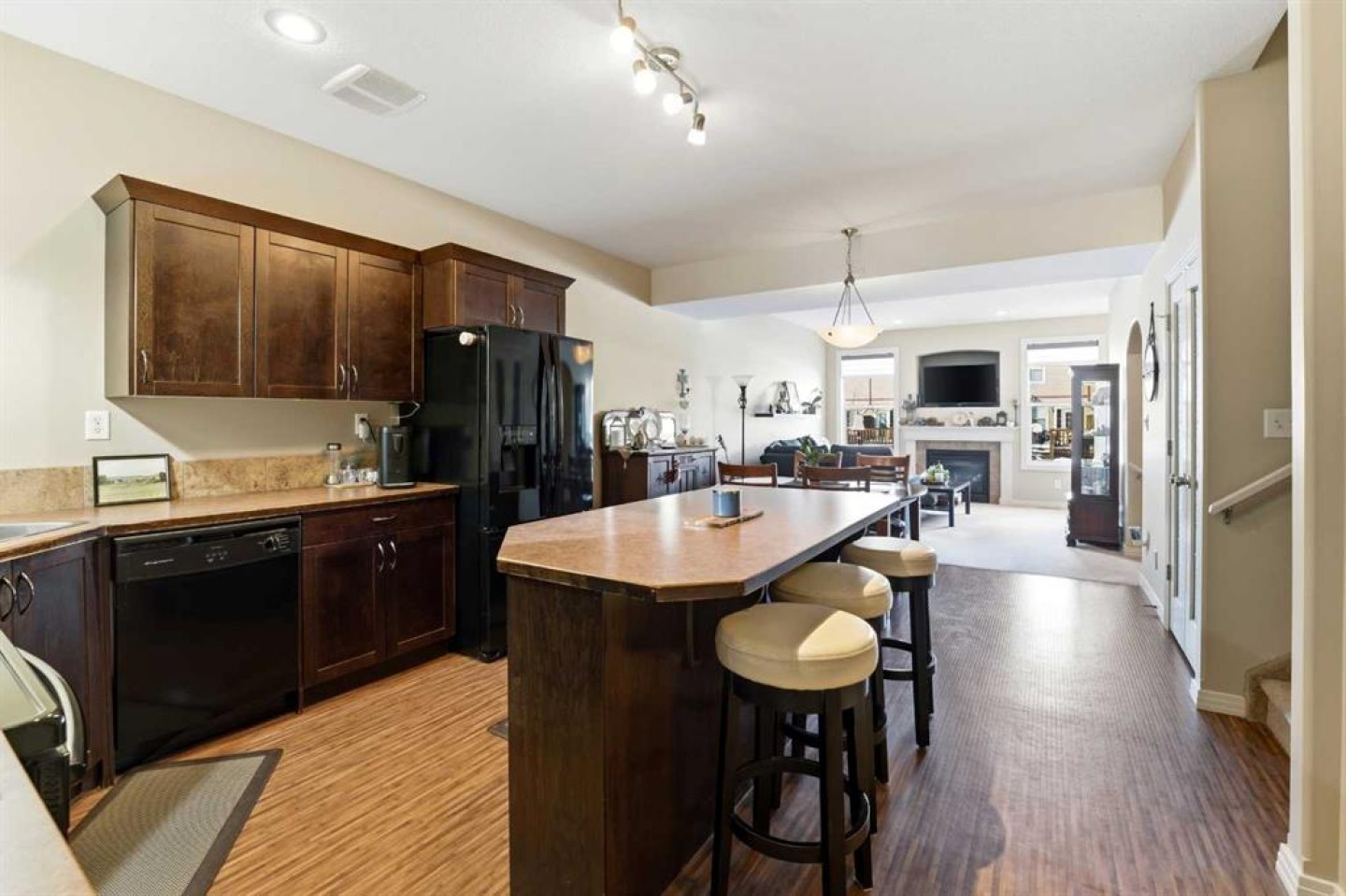 Welcome to 52, 45 Ironstone Drive ~ An Immaculately Maintained 2 Storey Offering 3 Bedrooms, 3.5 Bathrooms and a Single Attached Garage. The main floor features an open concept design with a highly functional kitchen complete with ample cabinetry, a centre island and pantry space. These townhomes offer impressive square footage, allowing plenty of room for a full dining table without compromising flow. The kitchen and dining area are finished with Gerflor flooring — incredibly durable while also being comfortable underfoot. The bright living room is complemented by a gas fireplace and large windows that fill the space with natural light. Tucked conveniently near the back entrance is a 2pc bathroom. Upstairs you’ll find two oversized primary suites, each complete with their own full 4pc ensuite — an ideal setup for roommates, guests or family living. The fully developed basement boasts 10 ft ceilings and offers a cozy secondary living space, a wet bar, a 4pc bathroom, and a spacious third bedroom with a massive walk-in closet. Additional highlights include a single attached garage with a separate storage closet, high-end window coverings throughout, and the convenience of snow removal handled for you. This property truly shines and shows even better in person ~ immediate possession available.