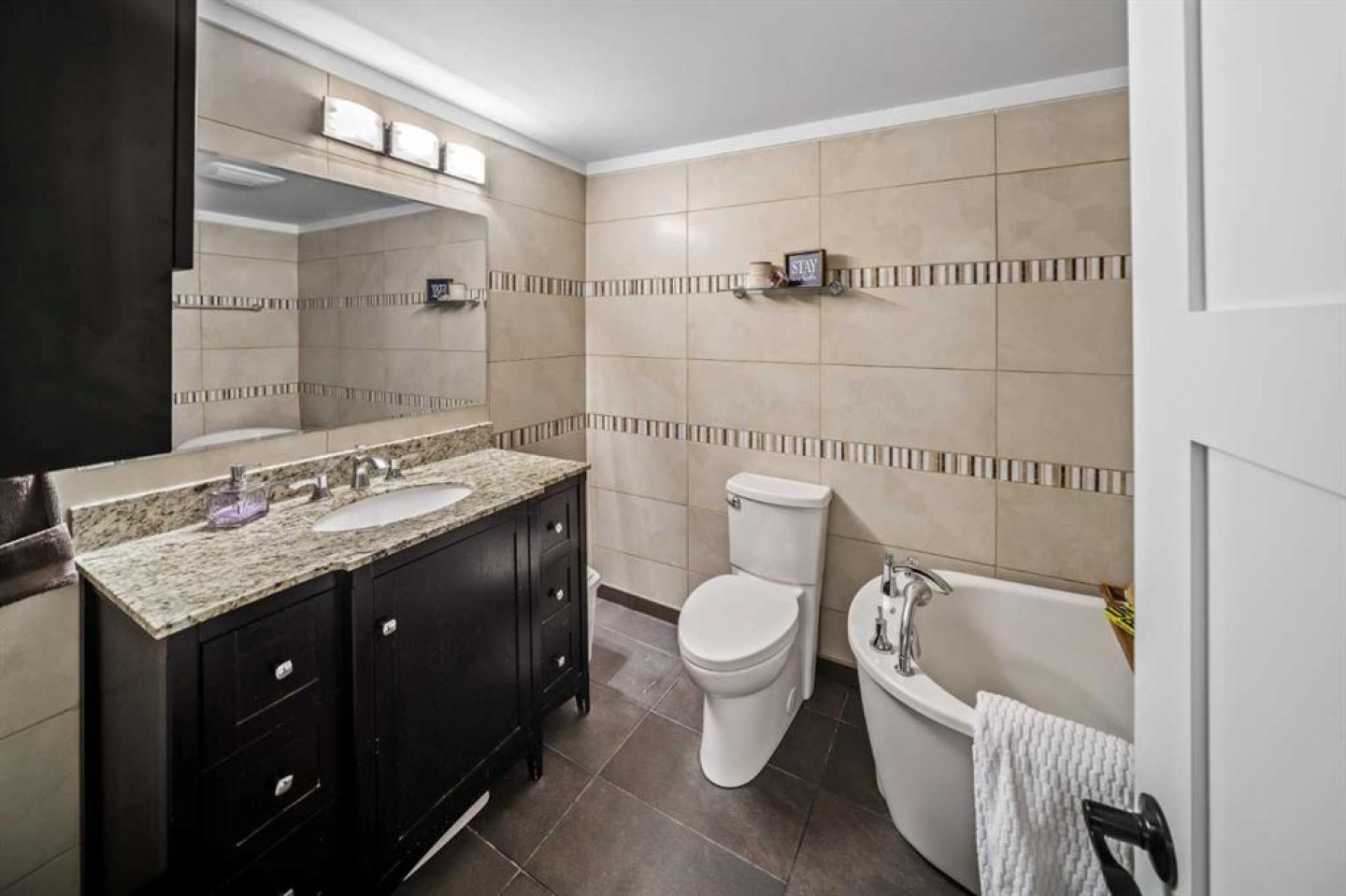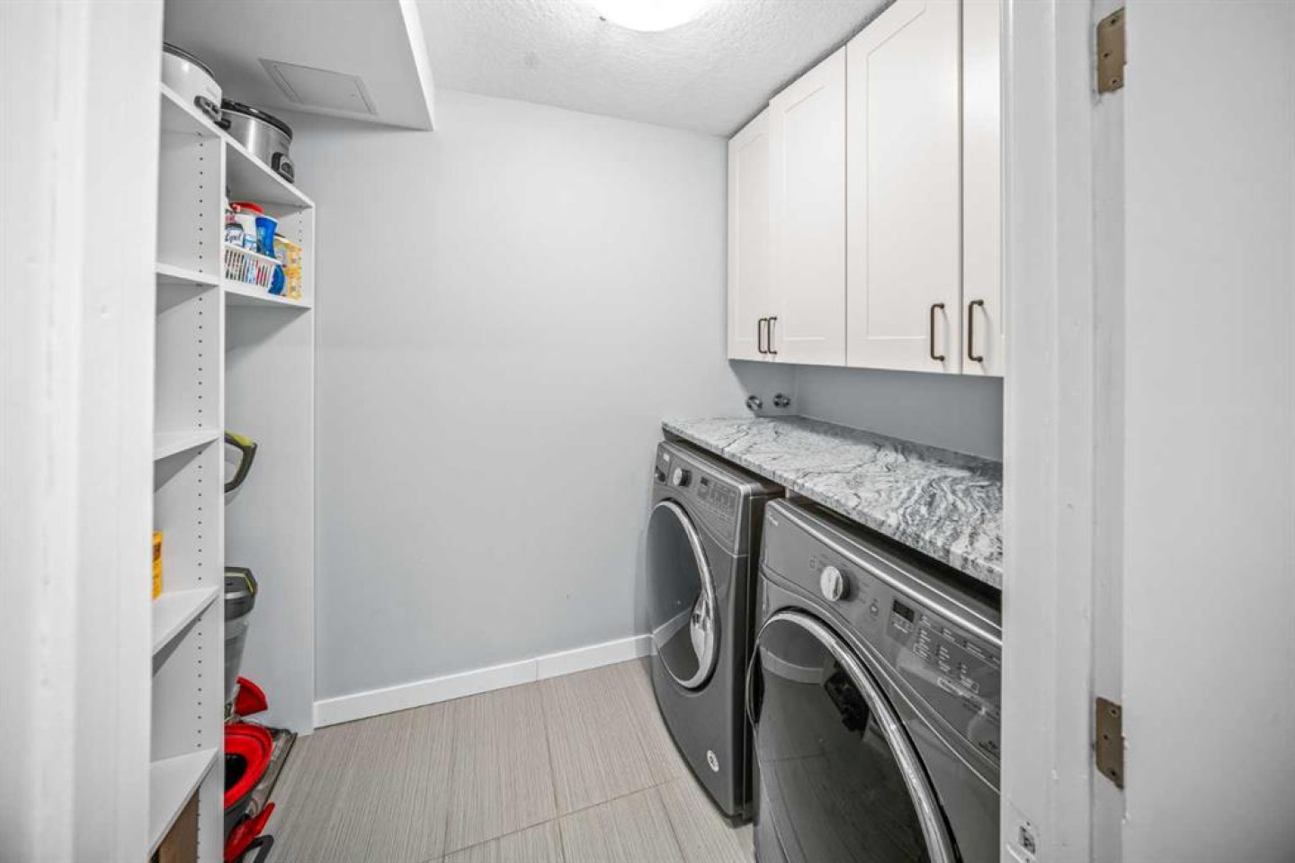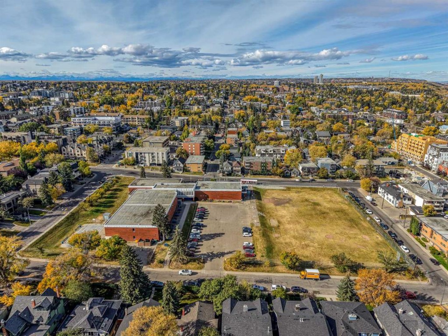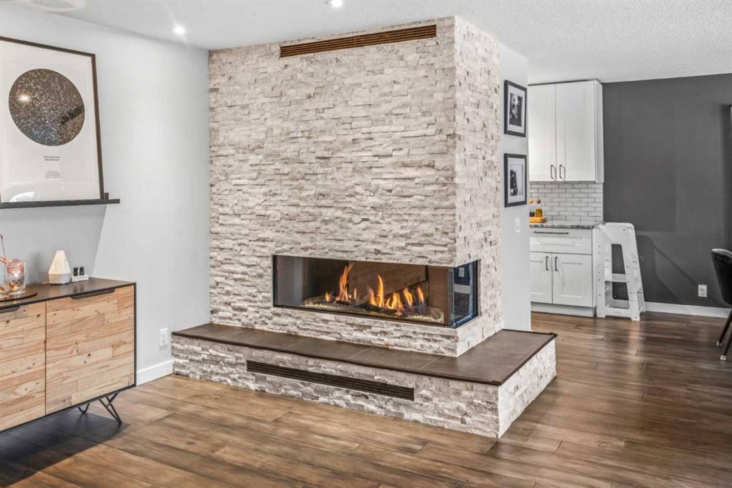 Welcome to Copper Castle — a bold, unique, and one-of a-kind complex in Calgary’s inner-city. Defined by its copper and brick exterior. This distinctive industrial-modern design is far from your typical townhouse. Quietly tucked between the vibrant 17th Avenue and the prestigious community of Upper Mount Royal this location is truly unmatched. Offering over 1,300 sqft of bungalow-style living, this unit delivers all the modern upgrades in the comfort of single-level living. Inside, an spacious open floor plan. Large triple-pane windows face the front of the unit. The living room is anchored by a modern two-sided gas fireplace, creating warmth and comfort. The generous size dining room flows seamlessly into the contemporary galley kitchen - featuring white shaker cabinetry, stainless steel KitchenAid appliances, subway tile backsplash, and marble-granite countertops. Through the kitchen is your walk-in pantry and your main-floor laundry room. Both bedrooms are generously sized. The primary features a walk-in closet and a fully tiled 4-piece ensuite, complete with a shower and freestanding soaker tub. A separate stairwell leads directly to your oversized garage (with driveway), providing exceptional storage and parking flexibility. At the rear of the garage — a recently updated flex space that creates the perfect setup for a home office, gym, or creative studio. Additional storage space is found in the utility room. This home is also equipped with central AC and a newer hot water tank (2021). Whether you're looking to downsize or if you are buying your first home, this home is one you won’t want to miss. Book your showing today!