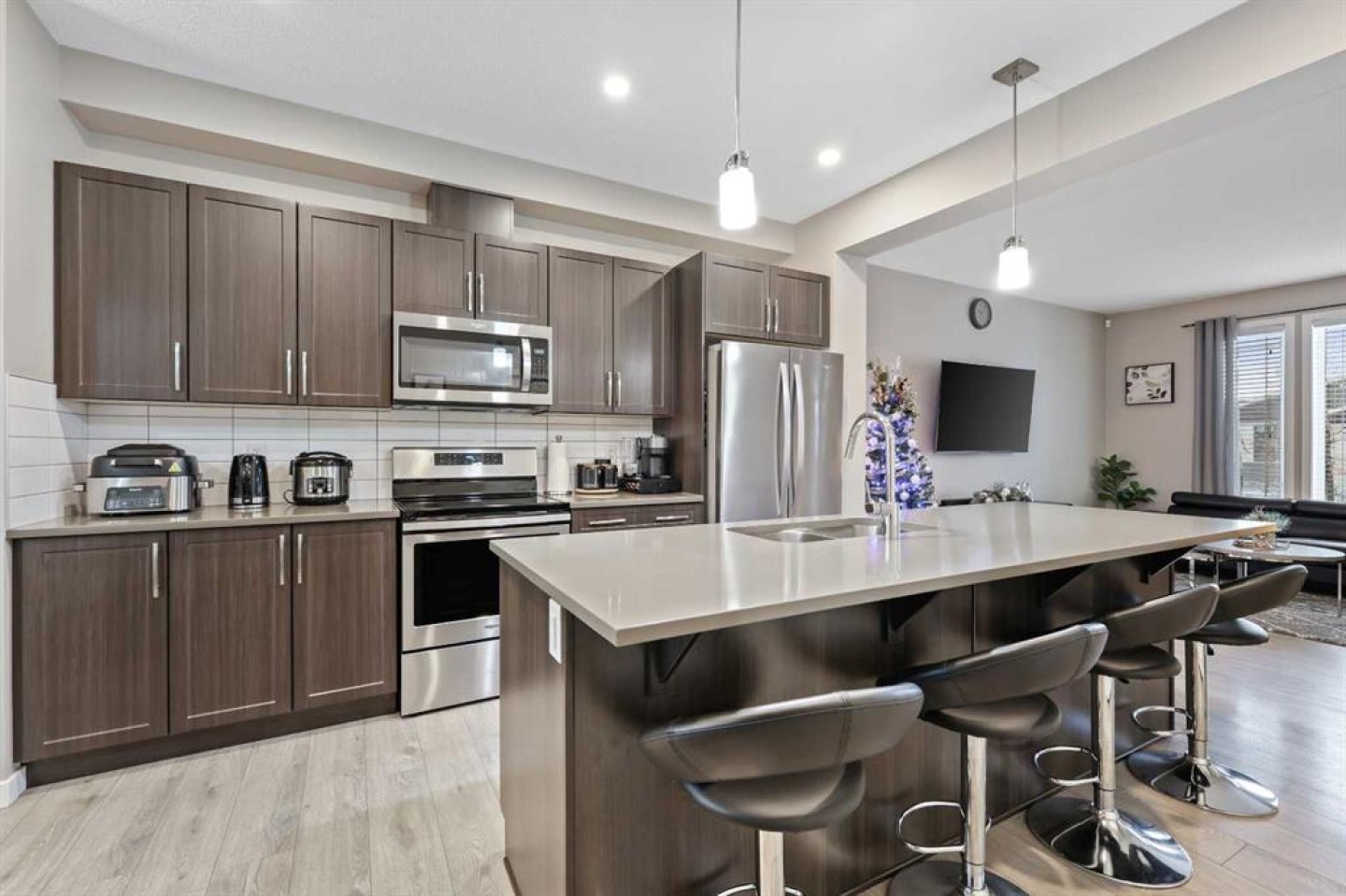 Welcome to Belmont, an exciting and up-and-coming community where thoughtful planning, future-forward amenities, and everyday convenience come together—and where this exquisite, barely lived in, Jayman BUILT “DESTINY” home is ready to impress from the moment you arrive. Beautifully crafted and impeccably designed, this stunning home offers over 1,500 square feet of modern living space with a unique and highly functional open-concept floor plan that perfectly balances style and comfort. From the moment you step inside, you’ll appreciate the quality craftsmanship and attention to detail Jayman is known for. At the heart of the home lies a truly gourmet kitchen, designed to inspire both everyday living and effortless entertaining. A striking oversized central island with flush eating bar anchors the space, complemented by sleek quartz countertops, a Terra Sol 4x12 horizontal stacked pure white gloss tile backsplash, an undermount Blanco sink, and stainless steel Whirlpool appliances. Stylish pendant lighting adds warmth and character, while the kitchen flows seamlessly into the generous dining area overlooking the backyard and the spacious great room—both enhanced by large oversized windows and 9-foot ceilings, creating a bright, airy feel and beautiful open sightlines for family living. The main floor is finished with Divine Maestro laminate flooring, paired with elegant 12x12 tile at the entryways and powder room, offering both durability and timeless appeal. Upstairs, you’ll find three well-appointed bedrooms, a conveniently located laundry area, and a private primary retreat complete with a walk-in closet and a full ensuite bath—your own peaceful escape at the end of the day. The lower level includes a 3-piece rough-in, ready for your future design ideas and personal touches. Outside, enjoy your fully fenced backyard, perfect for kids, pets, and summer gatherings. The sizeable deck with pergola invites outdoor entertaining, while central air conditioning ensures comfort during Calgary’s warmer months. An oversized double detached garage completes this impressive package. Belmont is a community designed with the future in mind. A brand-new City of Calgary Recreation Centre is set to begin construction, alongside planned schools, a future library, and a transit centre with a proposed LRT stop—all adding incredible long-term value. Located in West Macleod, Belmont offers seamless access via three major roadways, allowing you to skip traffic bottlenecks and get where you need to go faster—whether it’s work, school, or recreation. As Belmont continues to grow and flourish, so too will the sense of community and opportunity it offers. This is a place where families are supported through every stage of life, where convenience meets connection, and where you can truly enjoy the lifestyle you deserve. Welcome home to Belmont—where your next chapter begins.