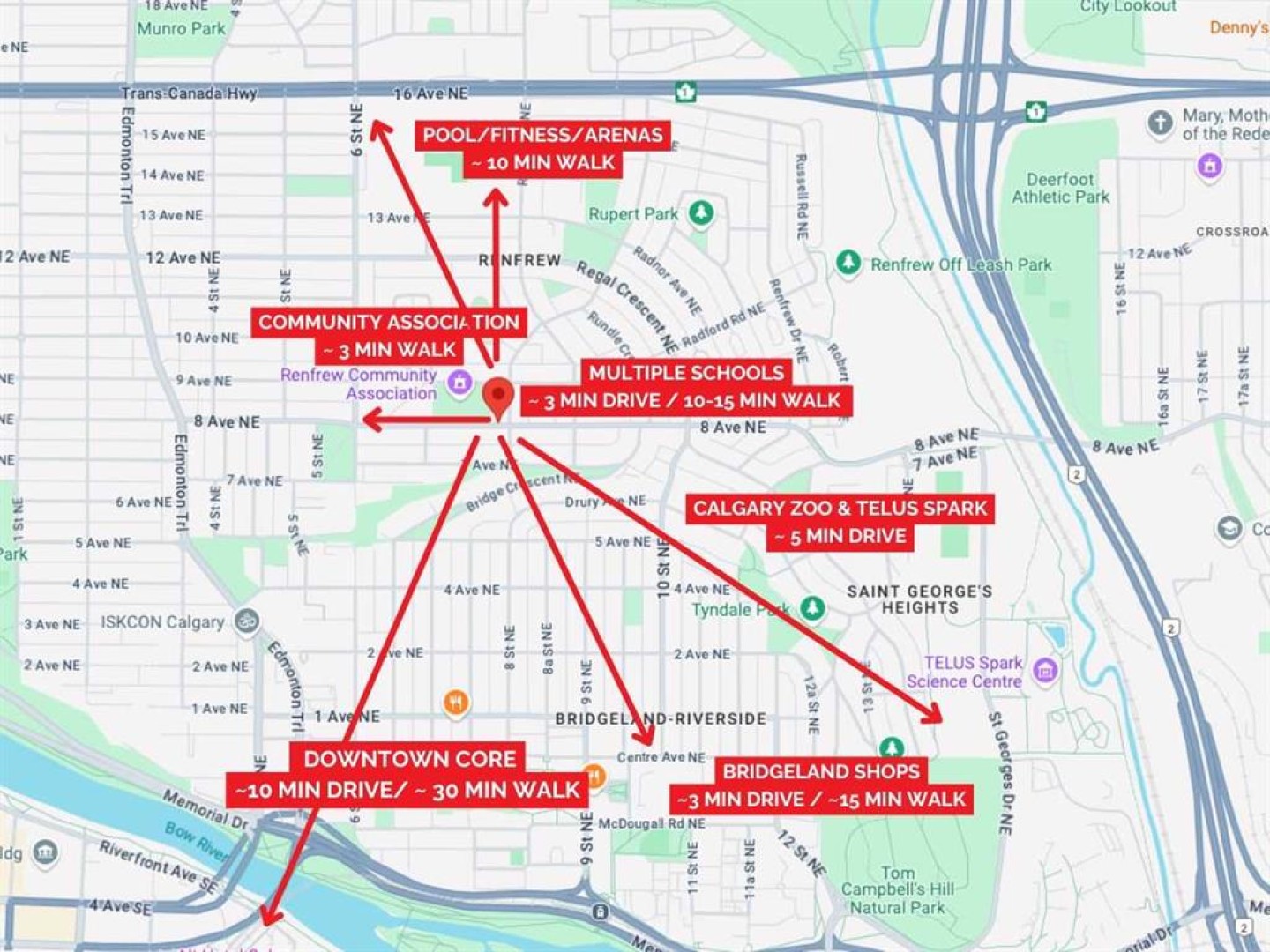 **OPEN HOUSE THIS WEEKEND: SATURDAY, FEBRUARY 21 FROM 2 PM - 4 PM** *VISIT MULTIMEDIA LINK FOR FULL DETAILS & FLOORPLANS!* BRAND NEW, MOVE-IN-READY TOWNHOME PROJECT FOR SALE IN RENFREW! Presenting this upper-level unit boasting over 1,000 sq ft, with 2 beds, 2.5 baths, and a single detached garage. The main floor showcases luxury vinyl plank flooring, and an open-concept layout with a central kitchen boasting tiled backsplash, quartz countertops, bar seating, and stainless steel Samsung appliances, including a French-door refrigerator and ceramic top stove. The adjoining living and dining areas provide a comfortable setting for meals or unwinding after a long day, while a stylish 2-piece powder room completes the main level. Upstairs, 2 spacious bedrooms, each with a 4-piece ensuite, await. Both bathrooms feature tiled flooring, quartz vanities, and a tub/shower combo. The spacious primary bedroom features a private balcony overlooking the residential street and downtown. Completing this upper level is a laundry closet with a stacked washer/dryer. Stylish and durable, the exterior features Hardie Board and Smart Board detailing, as well as brushed concrete steps and walks. Located in the heart of Renfrew, a tranquil inner-city community filled with tree-lined streets and green spaces. Enjoy being steps from ample parks, playing fields, and the Renfrew Community Association, which includes a playground and seasonal ice rink. Plus, enjoy being just minutes from the vibrant dining and shopping scene of neighbouring Bridgeland, and offering quick access to Calgary’s downtown core and major roadways, this townhome project blends inner-city convenience with the ease of a lock-and-leave lifestyle. *Interior photos are of the show home (unit #8). Schedule your private showing today!