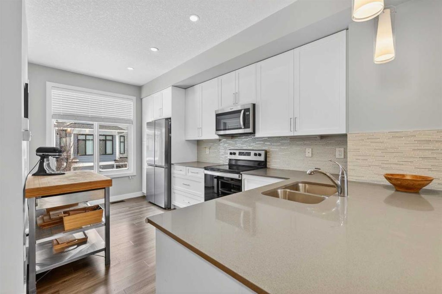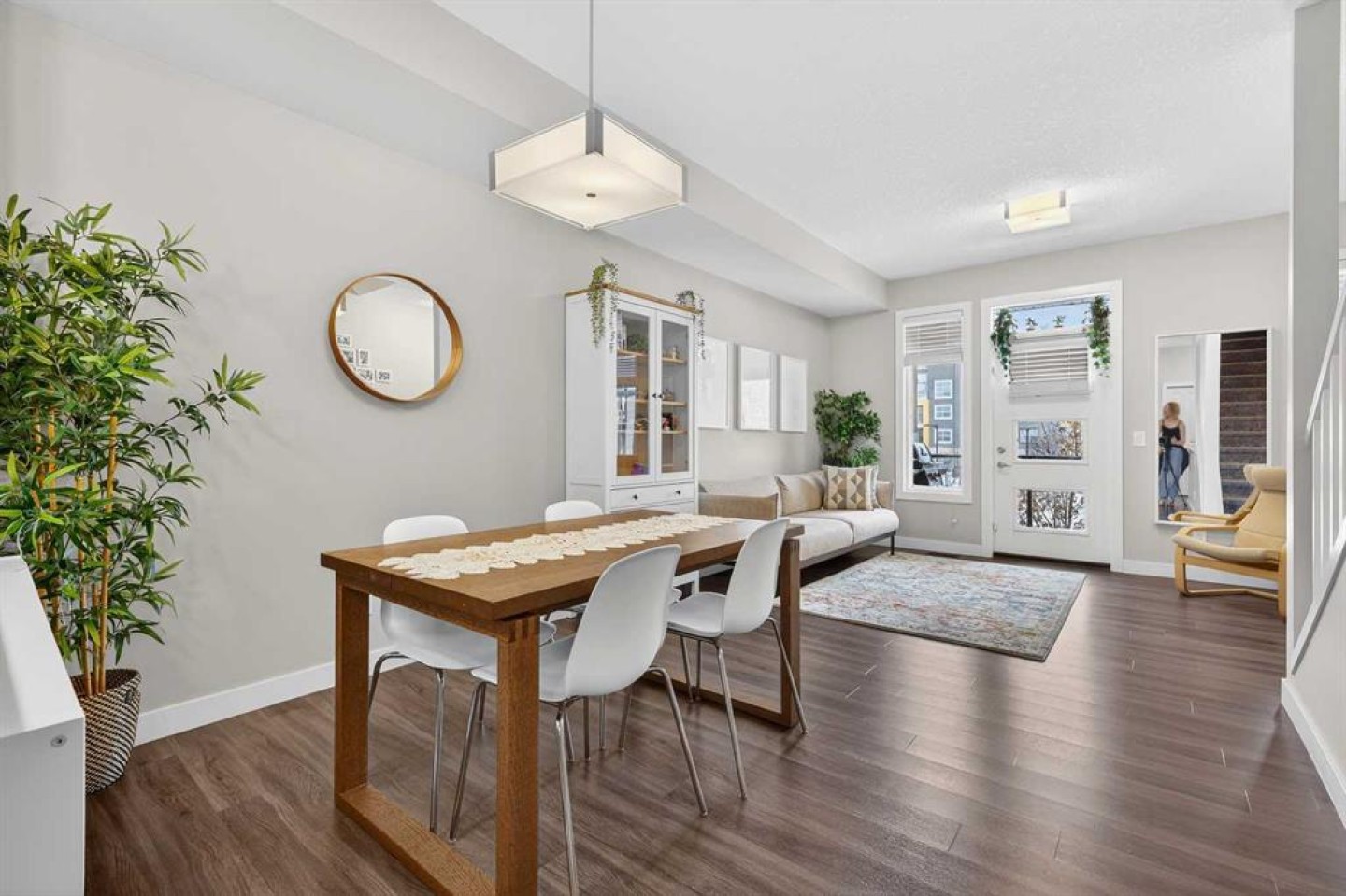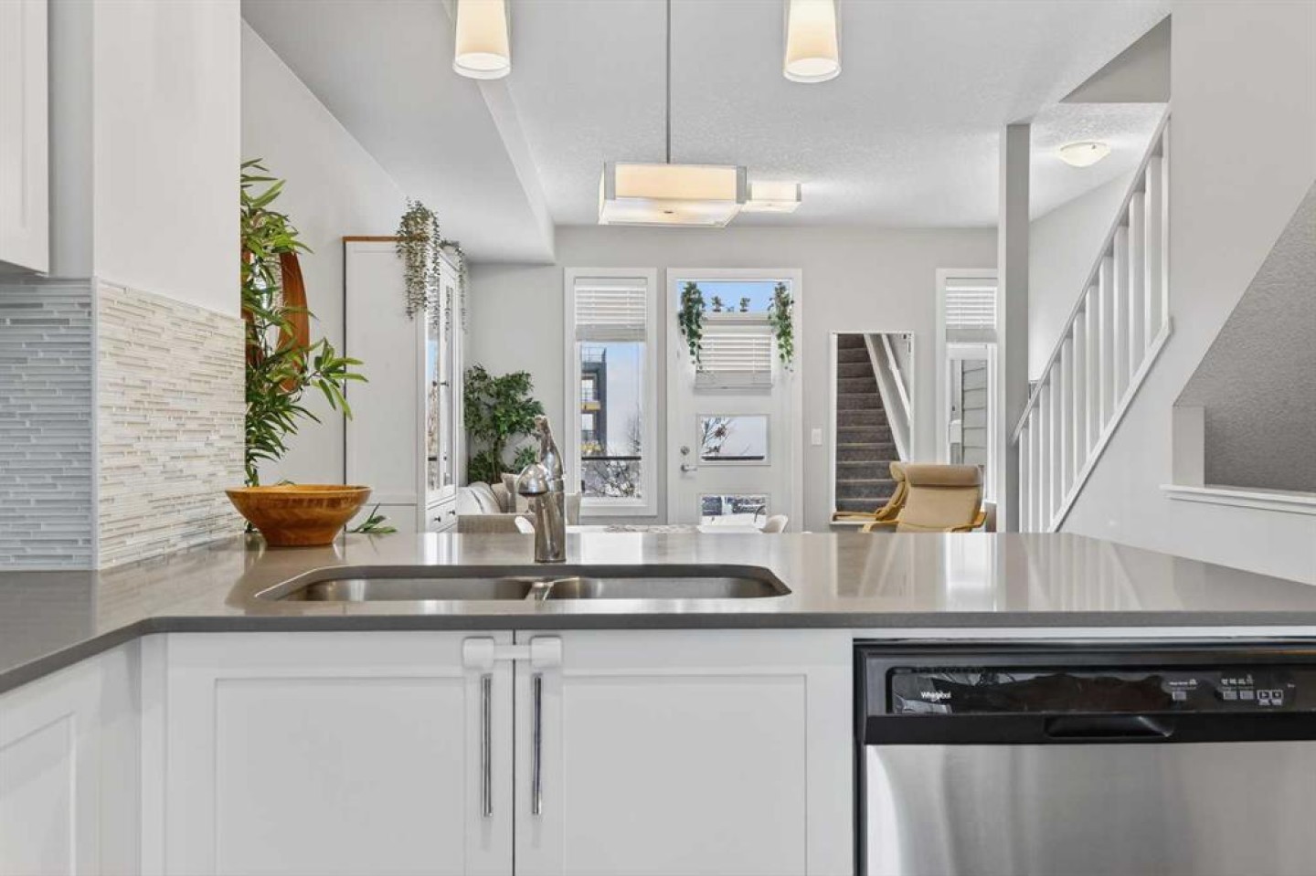 QUICK POSSESSION | DUAL PRIMARY SUITES | INDOOR PARKING – PLUS MAIN FLOOR DEN This trendy and spacious air-conditioned three-storey townhome in the desirable community of Seton offers outstanding value, a stylish modern design, and a convenient location close to transit, shopping, schools, walking paths, green spaces, dog parks, YMCA and more. Designed for both comfort and functionality, this home is ideal for professionals, families, or investors looking for low-maintenance living in a vibrant urban setting. The entry-level welcomes you with a large front foyer, a versatile hobby room or home office, extra storage space, and convenient access to the attached garage. The upper main level features an open-concept living space with luxury vinyl plank flooring and abundant natural light, creating a warm and inviting atmosphere. The spacious living room flows seamlessly into the well-appointed kitchen and dining area, making this home perfect for relaxing evenings or entertaining guests. The kitchen is a true standout, featuring white shaker-style cabinetry, quartz countertops, a stunning tile backsplash, upgraded stainless steel appliances, and a dramatic peninsula island with a flush eating bar and undermount sink. Just off the front living area, a sizeable west-facing balcony offers the ideal space for outdoor enjoyment with a covered BBQ area and peaceful mountain views. Upstairs, the home continues to impress with two generously sized primary bedrooms with private en-suites, a laundry closet with a stacked washer and dryer. The main primary suite is thoughtfully designed and includes a large walk-in closet and a luxurious private ensuite featuring quartz countertops and a glass-enclosed walk-in shower. This beautiful home combines contemporary aesthetics with everyday practicality, showcasing a modern décor palette, smart layout, and quality finishings throughout. With low-maintenance living, thoughtful upgrades, and unbeatable convenience, this property offers a fantastic opportunity to move into a vibrant and growing community. Seton is more than a neighbourhood—it’s a lifestyle. Live healthy and connected in a thriving, walkable community where you’re minutes from the South Health Campus, the world’s largest YMCA, green spaces, transit, and the upcoming LRT extension. Whether you're commuting, working remotely, or enjoying your downtime, Seton offers it all. A spring 2026 possession date is available—don’t miss your chance to make this stylish townhome your own. Contact your friendly REALTOR® today to arrange your private showing and experience all that this home and Seton have to offer!