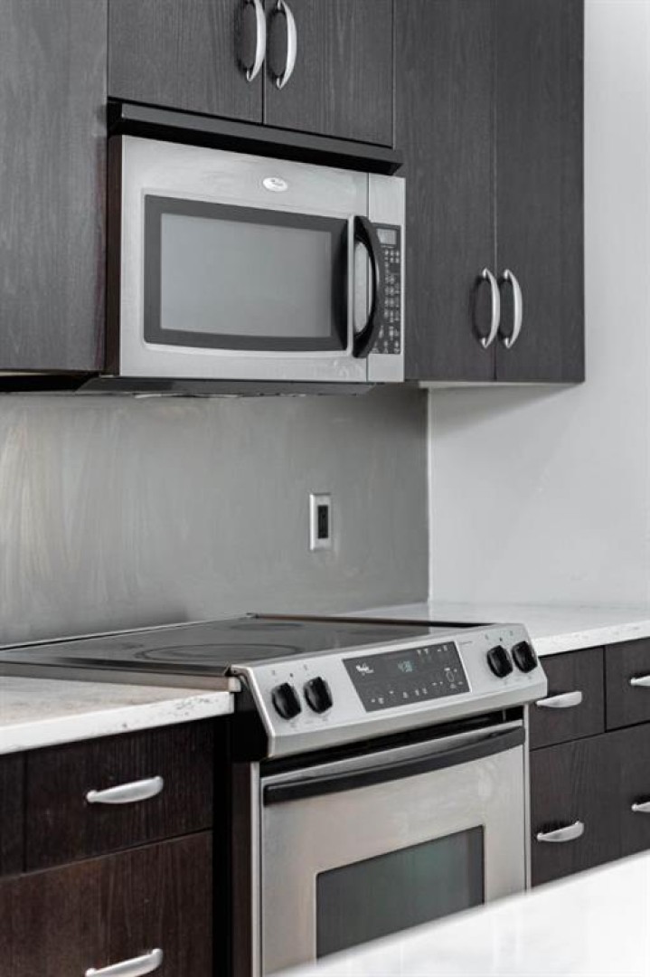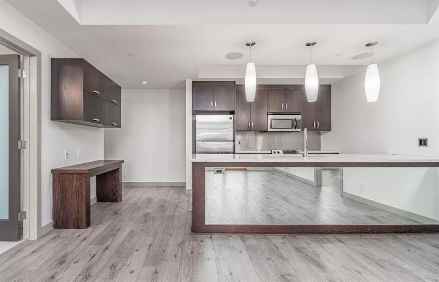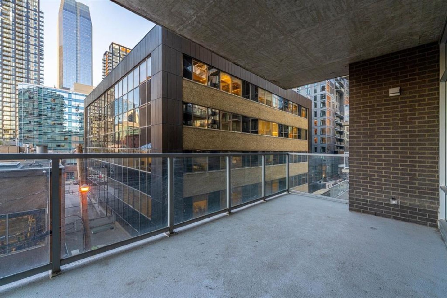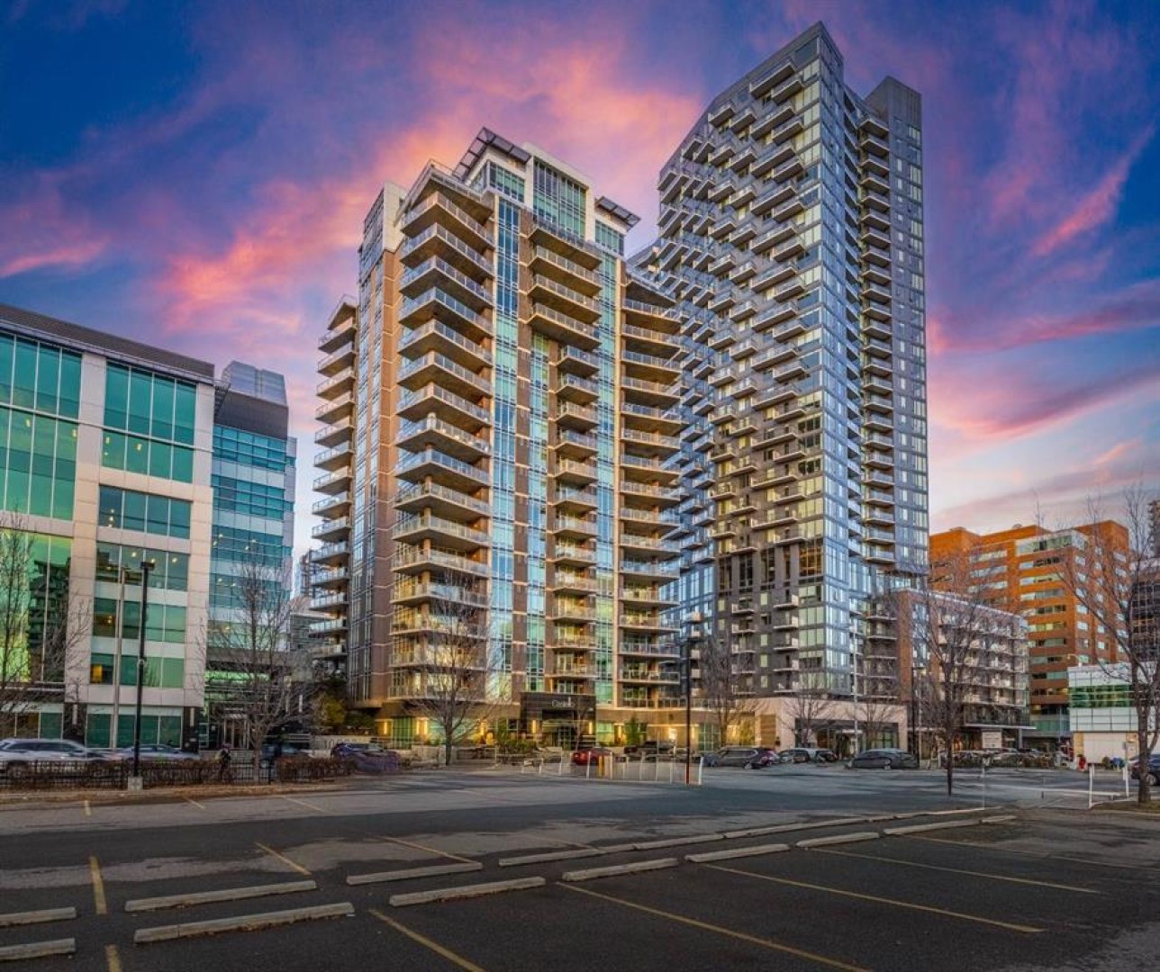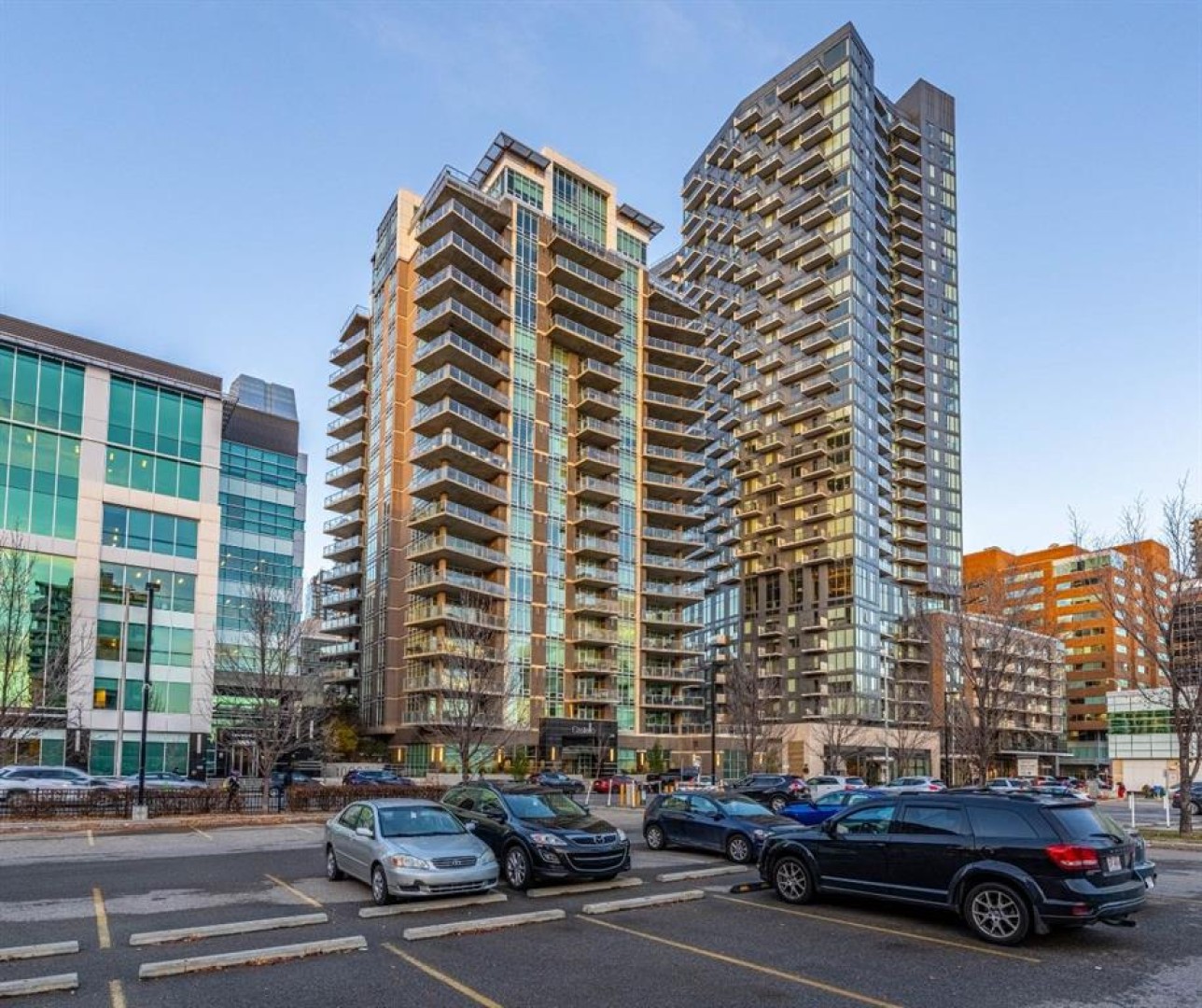 "Castello", located in Calgary's downtown design district, offers the "ultimate urban lifestyle", complete with this 2 bedroom, 2 bathroom property! With its excellent location, you’ll be able to enjoy the close proximity to all the numerous amenities and services, including bikes lanes, C-train access, gyms, restaurants, Core shopping centre, plus trendy 17th Avenue! This beautiful 3rd floor 1044 SqFt north facing property has two large bedrooms, two full bathrooms, built in desk area and large "view" balcony. This suite is equipped with sleek modern finishings with an open concept, quartz counters, plenty of cabinet space, stainless steel appliances, dishwasher and microwave/hood vent combo. Spacious master with spa-like ensuite is complete with a large walk-in closet. The second bedroom is adjacent to the bathroom, which has a large soaker tub. Full size in-suite washer & dryer, floor-to-ceiling windows, new laminate flooring, r/I ceiling speakers. Take advantage of the amenities Castello has to offer, including a well appointed gym, bike storage and visitor parking. Titled secure underground heated parking stall and tilted storage locker. This is a perfect property for the individual looking for a stylish home with an inner city lifestyle!