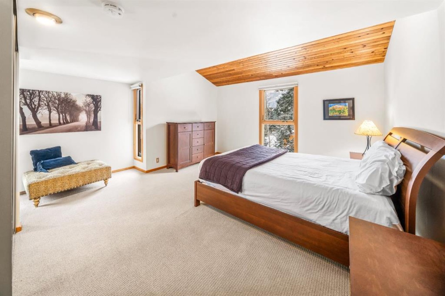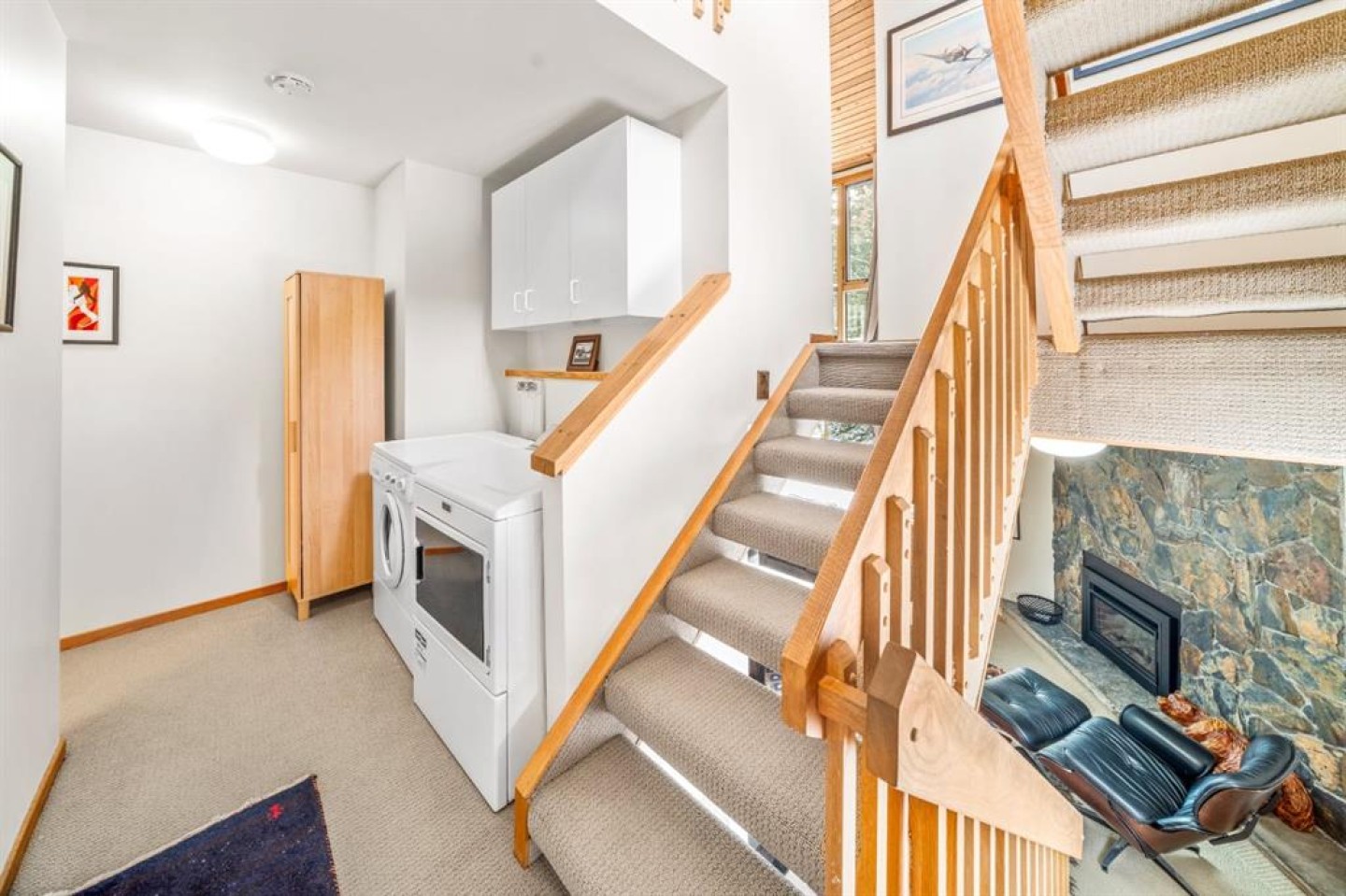 At 8-838 3rd Street, alpine nostalgia meets architectural playfulness. Set in sought-after South Canmore, this four-level end-unit townhouse channels an unmistakable late-’80s ski-chalet spirit—equal parts irreverent and iconic—while delivering over 2,250 square feet of flexible living space designed for today. The façade faces west, drawing in afternoon light and framing rare Bow River views from the living room and lofted bedroom. Across the street, the Bow River pathway traces the valley floor, offering a daily ritual of movement—morning runs, dusk strolls, skis slung over your shoulder in winter. Just a few blocks away, Main Street hums with cafés, galleries, and mountain-town energy. Inside, the split-level design unfolds with intention. A gas fireplace anchors the living room, while retro round “bubble” windows punctuate the walls—graphic, unexpected, and delightfully nostalgic. Three bedrooms are complemented by a lofted office (or fourth bedroom), creating vertical layers of privacy and possibility. Below, a generous family and gear room absorbs skis, bikes, and weekend guests with equal ease. The rooftop deck is the exclamation point: panoramic views toward Mount Lady Macdonald and the Fairholme Range stretch wide against alpine skies. It’s a stage set for sunset dinners and après-ski evenings—an elevated perch in every sense. Outdoor living spaces at both entrances soften the threshold between home and landscape, while off-street parking adds rare convenience in this central enclave. For those drawn to the uncommon—design with personality, a central address, and a whiff of ‘88 Olympic nostalgia—this is a singular opportunity to own something truly distinctive in South Canmore.