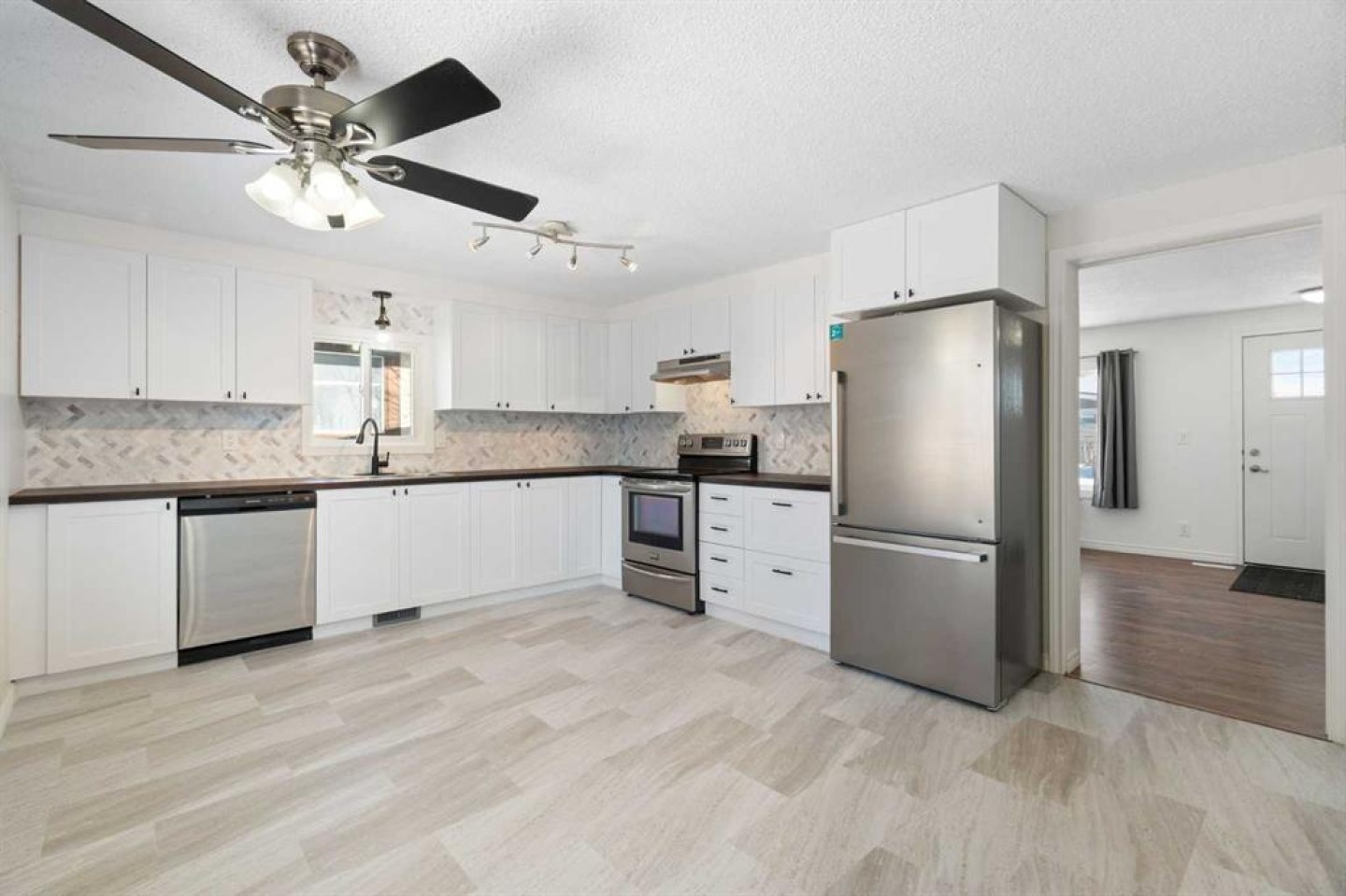 Dishwasher, Dryer, Electric Stove, Freezer, Range Hood, Refrigerator, Washer, Window Coverings