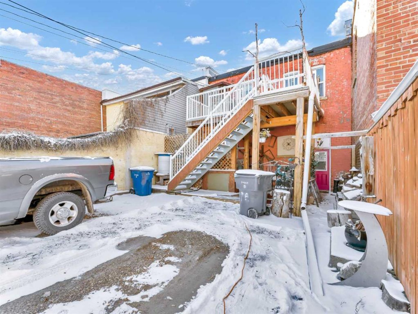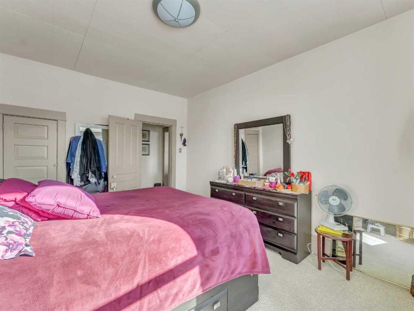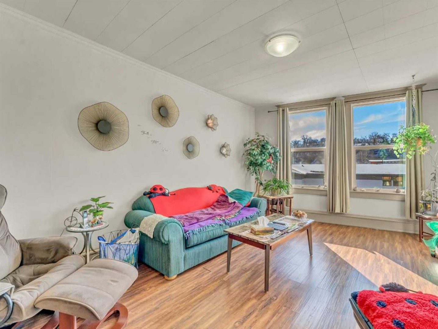 Prepare to be captivated by this truly unique mixed-use property offering exceptional flexibility and diverse revenue opportunities! Zoned for Commercial/Residential use, this solid brick building features an updated 2-bedroom apartment upstairs, a wide open main floor retail or commercial space, and a full basement for added functionality. The upper level boasts 1,184 sq ft of thoughtfully renovated living space, including a spacious kitchen with full appliance package, 4-piece bathroom, in-suite laundry, updated windows, and a newer skylight. High 9-foot ceilings and tall windows fill the suite with natural light, highlighting its timeless character and warmth. The main floor offers 1,130 sq ft of wide open space with soaring 12-foot tin ceilings —perfect for retail, office, studio, or recreation. Previously operated as a successful appliance business, this area is ready for your vision, whether you lease it out or run your own business. Downstairs, a 1,095 sq ft full basement provides ample room for a workshop, hobby room, or extensive storage. Step outside to enjoy a spacious two-tiered deck, ideal for relaxing or entertaining. Rear off-street parking accommodates multiple vehicles plus an RV. Recent updates include a resurfaced roof, modernized wiring, and plumbing. This exceptional property is move-in ready and offers the rare chance to live and work under one roof, generate rental income, or build your investment portfolio. Endless possibilities await the next proud owner!