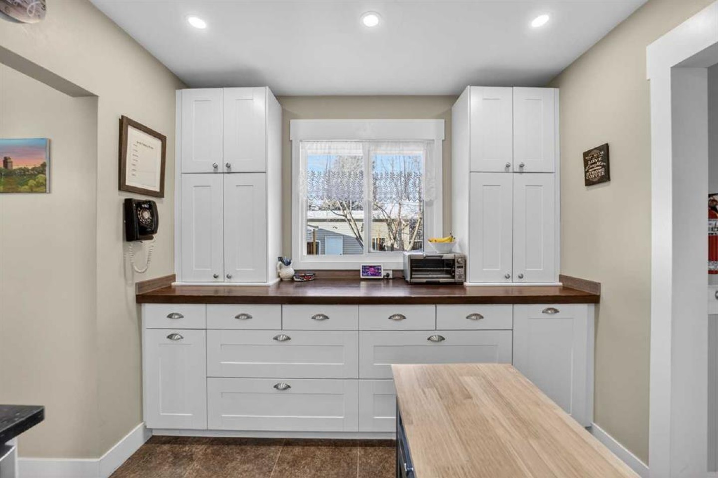 With all the charm of the mid-century era and the quality upgrades today’s buyers expect, this fully developed home on a beautifully landscaped oversized lot truly offers the best of both worlds. Situated on a quiet street close to schools and playgrounds, and just a short walk to downtown, the location is hard to beat. The property is designed to please everyone in the family — featuring a heated 31’X 21’ garage with workshop space, a second 14’ X 28’ storage/garage perfect for storing all the “toys,” plus a concrete side driveway long enough to accommodate your RV and additional vehicles.Inside, the main level showcases refinished hardwood flooring, an electric fireplace in the living room, and a newer kitchen complete with quartz and Douglas Fir countertops and fantastic pull-out shelving for maximum functionality. You’ll also find an upgraded 4-piece bathroom with a relaxing soaker tub, along with three bedrooms — the primary offering multiple closets for excellent storage.The fully developed basement adds incredible living space, including a very large bedroom, a spacious family room with a freestanding gas fireplace, a spot ideal for hosting gatherings, a 3-piece bathroom, and a charming laundry room with abundant cupboard and counter space that truly makes chores more enjoyable. Additional upgrades provide peace of mind and convenience, including updated wiring, a 70-amp panel servicing both garages, and 220V power in each. The home is also equipped with a Dry Basement system with battery backup and lifetime warranty — and the current owners report no water issues since purchasing in 2017. Step outside to the beautifully landscaped and private backyard, where a firepit area creates the perfect setting for summer cookouts with family and friends. This is a home where character, comfort, and functionality come together seamlessly — ready for you to move in and enjoy.