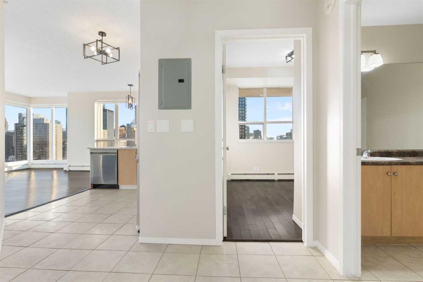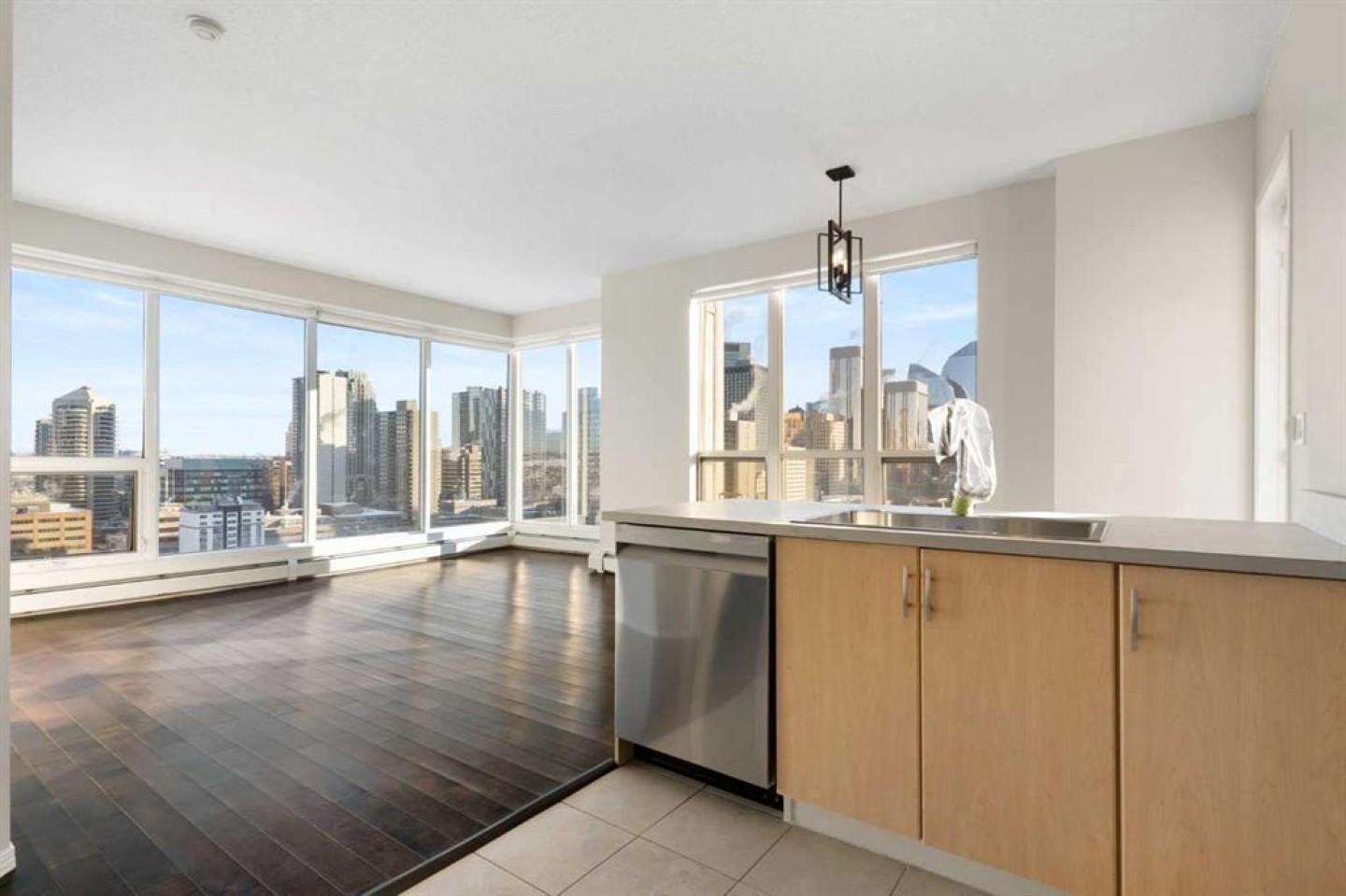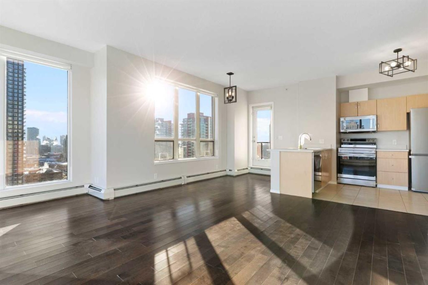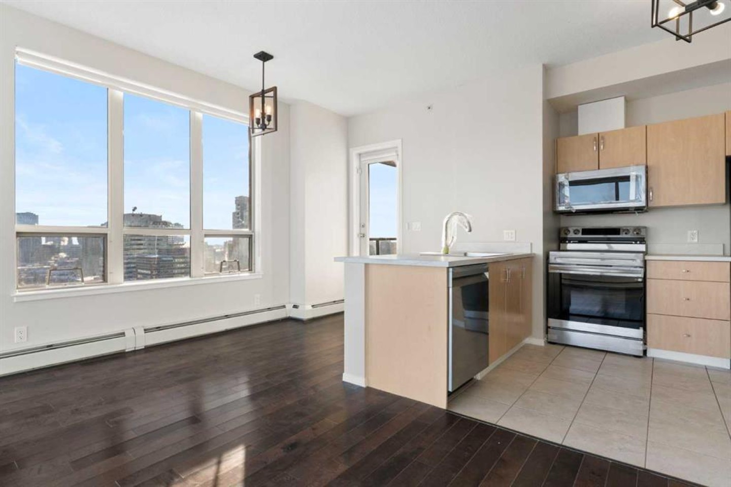 This exceptional end unit on the north side of Vantage Pointe offers truly breathtaking panoramic views of the Downtown Core and the Rocky Mountains, plus stunning east-facing city views you’ll never get tired of. Perched on the 15th floor, this bright and beautifully updated 2-bedroom, 2-bathroom home delivers both comfort and convenience in the heart of the city. Recently refreshed, the unit was painted and the kitchen has been fully upgraded with brand new smart appliances, a new countertop, a modern sink and faucet and new light fixtures - blending style with everyday functionality. Floor-to-ceiling windows flood the space with natural light and frame those spectacular views from nearly every angle. Step outside onto your spacious east-facing balcony, complete with a gas outlet, perfect for summer BBQs or simply enjoying the sunrise with your morning coffee. Inside, you’ll also appreciate the convenience of in-suite laundry and a smart, functional layout that maximizes space and privacy. Residents of Vantage Pointe enjoy a well-equipped fitness facility with steam room, an Owners’ Lounge, bike storage, underground titled parking, and ample heated visitor parking. Condo fees include heat, water, electricity, and your parking stall - simplifying your monthly budgeting. With Co-op grocery and a liquor store conveniently located right downstairs, daily errands couldn’t be easier. Four high-speed elevators ensure seamless access, making this building both efficient and comfortable to live in. Vantage Pointe offers central, convenient urban living at an accessible price point - and opportunities like this rarely come up. Book your private viewing today - and come see how easy it is to truly love where you live.