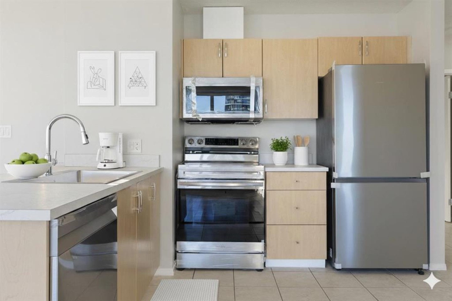 Dishwasher, microwave, electric stove, washer, dryer