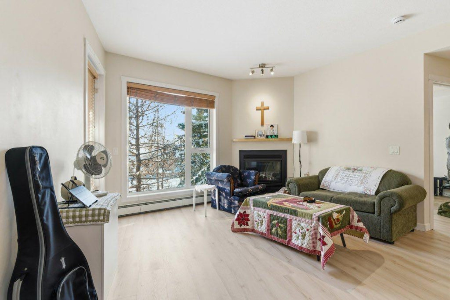 Welcome to West 69th in desirable Springbank Hill! This bright and well-maintained 2-bedroom, 2-bathroom condo offers 830 sq ft of comfortable single-level living with a functional open-concept layout. The spacious living room features a cozy gas fireplace and opens to a private balcony with BBQ gas line—perfect for relaxing or entertaining. The kitchen is equipped with quartz counters, ample cabinetry, and a full appliance package, while the primary bedroom includes a walk-in closet and 3-piece ensuite. Additional highlights include in-suite laundry, laminate flooring, and a no-smoking interior. This unit comes with two parking stalls (titled underground + leased) plus a separate assigned storage locker. Well-managed building with elevator access, secured parking, and visitor stalls. Condo fees include heat, gas, water, sewer, insurance, reserve fund contributions, and professional management. Excellent location close to parks, schools, shopping, walking paths, and transit. Great opportunity for homeowners or investors alike!