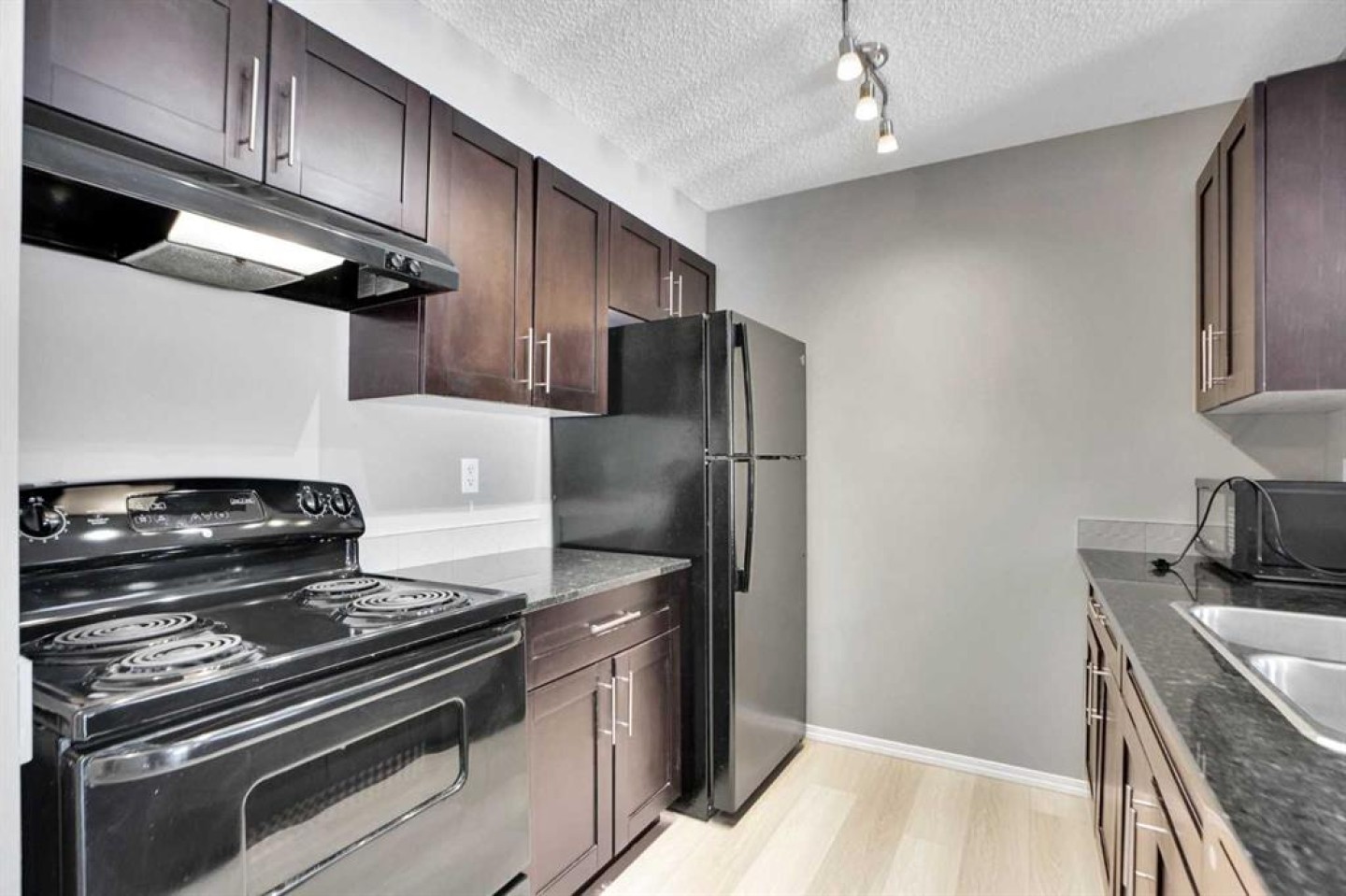 2BEDROOMS PLUS DEN| TWO FULL BATHS| UNDERGROUND TITLED PARKING| NEW LVP FLOORING| FRESH PAINT| NEW BLINDS| Exceptional opportunity in the heart of Albert Park—this beautifully updated, move-in-ready condo includes a titled underground parking stall, offering the comfort and convenience of secure, hassle-free parking. Featuring newer luxury vinyl plank flooring and fresh paint, new blinds, the bright open-concept layout creates an inviting space perfect for relaxing or entertaining. The spacious living area flows seamlessly into a well-appointed kitchen with rich wood cabinetry, granite countertops, appliances including an electric stove, and a convenient breakfast bar. This home offers two generous bedrooms, highlighted by a large primary suite with a walk-in closet and private ensuite, plus a second full bathroom with granite counters and a full-size stacked washer and dryer for added convenience. A versatile den provides the perfect space for a home office, study area, or extra storage. Step outside to your nearly 100 sq. ft. private balcony—large enough for a full patio set—ideal for summer evenings and outdoor entertaining. The building has also undergone stylish updates with new flooring and fresh paint throughout the common areas, enhancing its modern appeal. Enjoy an unbeatable location just steps from Albert Park Centennial Gardens, the community centre with hockey and skating rink, community gardens, and playground, and close to schools including Radisson Park School, Bishop Kidd School, and Father Lacombe High School. With quick access to Deerfoot Trail and Downtown Calgary, plus nearby shopping and transit, this is urban living at its finest.