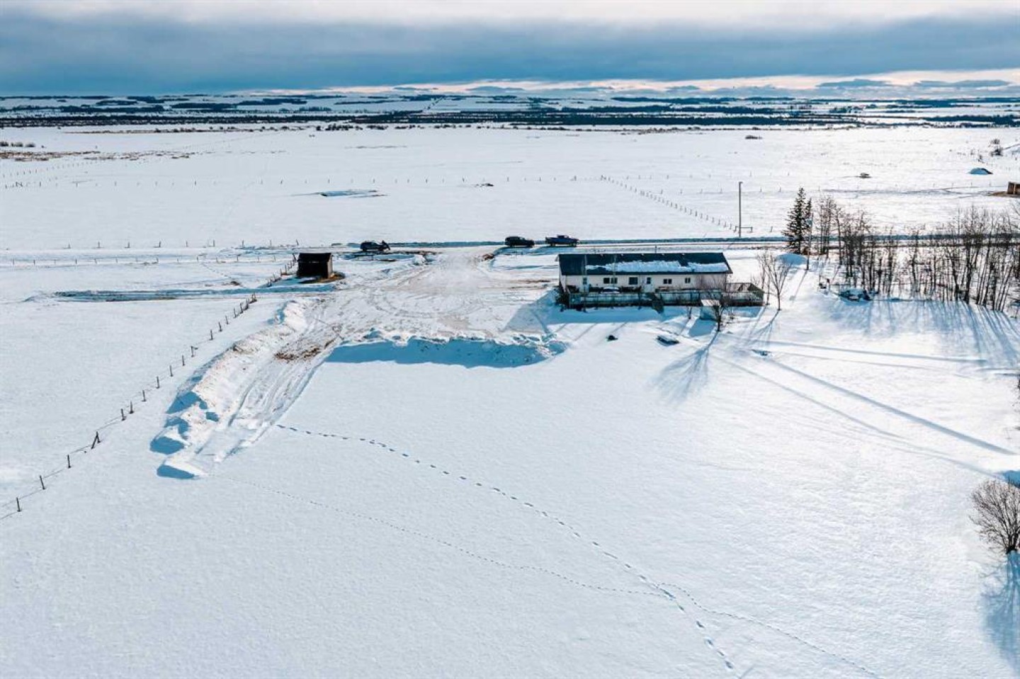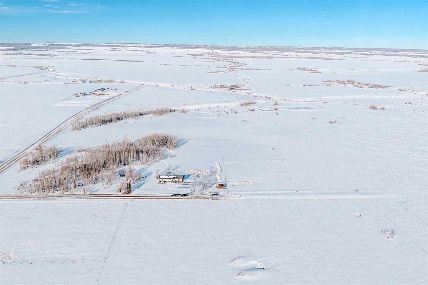 Located just 29 minutes northeast of Grande Prairie, this 112.28-acre agricultural holding offers rare scale, high output artesian well, upgraded infrastructure, and panoramic prairie views in one of the County’s most scenic rural corridors. Set on naturally elevated land with sweeping southern exposure, the property blends usable agricultural acreage with natural ponds and established wildlife habitat—creating both operational flexibility and private retreat appeal. The 1,626 sq. ft. open-concept home features 4 bedrooms and 2 bathrooms. Recent improvements include: Newer vinyl plank flooring, fresh interior paint, updated appliances (fridge, built-in oven, cooktop), newer exterior doors and hardware, foundation reinforcement with steel posts for long-term structural stability. Extensive decking adds over 3,000 sq. ft. of indoor-outdoor living space, including a 74' x 16' primary deck overlooking the surrounding landscape. Two separate driveway entrances and a widened gravel drive provide ease of access for equipment, trailers, or agricultural operations. Water is supplied by a high-producing artesian well (~2,000 m³/day, no pump needed). Three fishponds, along with additional wildlife ponds fed by natural runoff and groundwater, enhance biodiversity and long-term land utility. Agricultural zoning recognizes farming as the predominant land use and allows for a variety of other discretionary development. With 112.28 acres on a single title, this property offers multiple strategic paths: Private estate with operational land base, Multi-generational family holding, Agricultural expansion parcel or Long-term land banking near Grande Prairie. Assembly opportunity with adjacent Kleskun Springs parcels. Also available within the Kleskun Springs land grouping: 56.67 acres with residence (North), 27.09 acres Agricultural (West), 22.41 acres CR-5 (East). Combined acquisition presents over 218 acres of contiguous holdings. Buyers to verify zoning allowances, well specifications, licensing, and development requirements with the County of Grande Prairie No. 1.