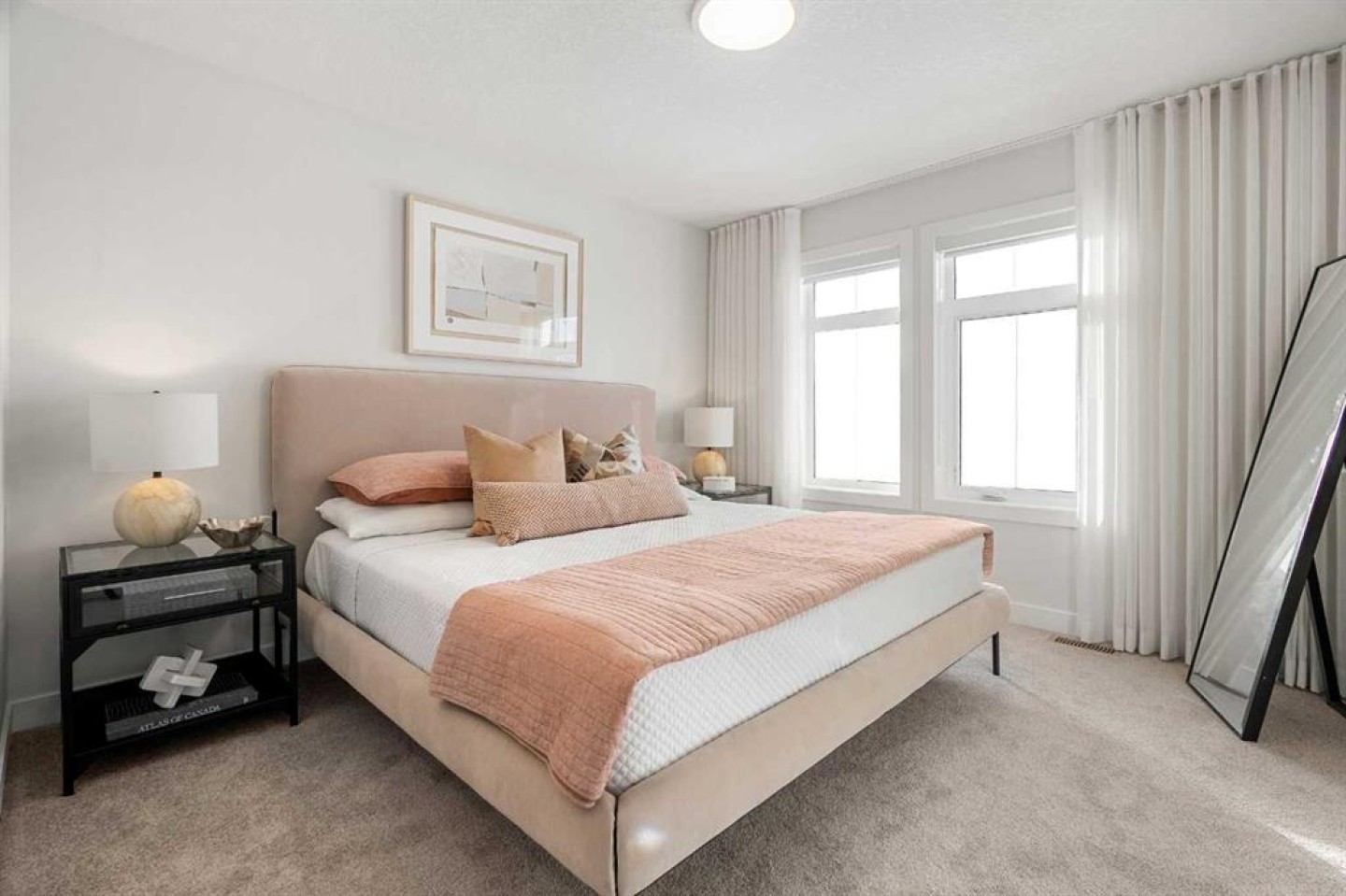 Welcome to the Charlotte by Partners, a beautifully designed no condo fee townhome offering functional and stylish living space in the growing North Calgary community of Keystone Creek. This brand new home delivers thoughtful design, everyday practicality, and long term value, all backed by full new home warranty coverage. The main floor features 9 foot ceilings and a bright open concept layout anchored by a rear kitchen designed for both daily living and entertaining. Highlights include full height cabinetry with risers to the ceiling, quartz countertops, a custom tile backsplash, a central island, a chimney style hood fan with built in microwave, an upgraded electric range, and a gas line rough in to the kitchen for future flexibility. The spacious dining and living areas at the front of the home are filled with natural light, creating a warm and welcoming atmosphere for family and guests. Upstairs, the primary suite offers a walk in closet and a private ensuite with dual sinks and an upgraded walk in shower. Two additional bedrooms, a full bathroom, and convenient upper level laundry complete the second floor with a layout that works for families, professionals, or investors alike. The unfinished basement includes rough in plumbing and excellent potential for future development, allowing you to customize the space to suit your needs. At the rear of the home, a gravel parking pad with alley access provides off street parking and future garage potential, along with a barbeque gas line for added outdoor convenience. Keystone Creek is one of North Calgary’s newest communities, offering pathways connected to the regional trail system, naturalized wetlands, and thoughtfully planned green spaces. Residents enjoy quick access to everyday amenities including grocery stores, restaurants, childcare, and healthcare services. Stoney Trail and Deerfoot Trail are minutes away, providing convenient access to CrossIron Mills, downtown Calgary, and YYC International Airport. Modern design, upgraded finishes, and no condo fees make the Charlotte an exceptional opportunity in North Calgary. Book your private showing today and see why this townhome stands out in Keystone Creek.