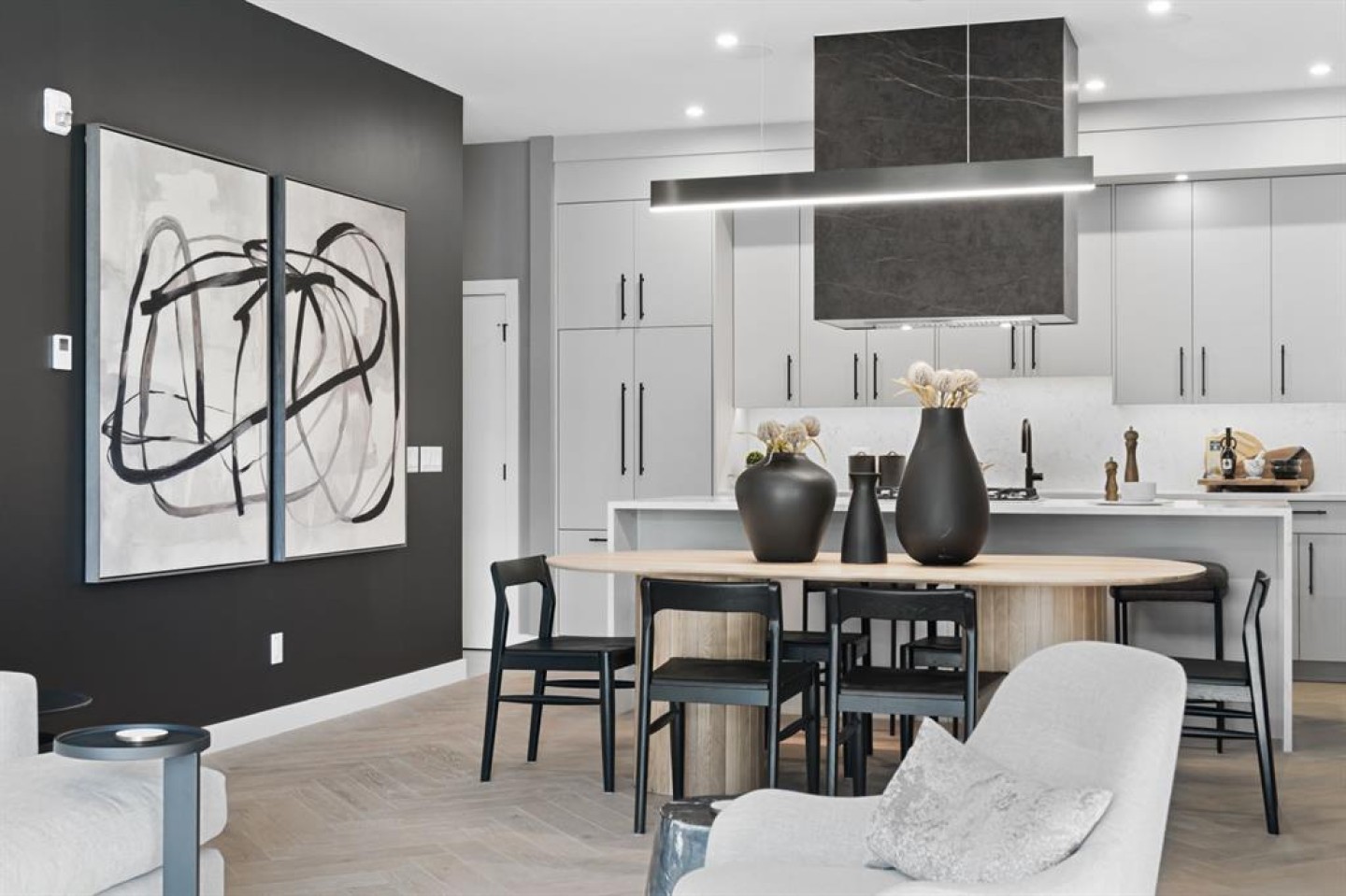 Welcome to an extraordinary living experience at Parkside in Calgary’s vibrant West District. This meticulously crafted luxury condo blends elegance, comfort, and style, offering 2 spacious bedrooms and 2.5 beautifully designed bathrooms. Located at Parkside, this residence is perfect for the most discerning buyers. Built by TRUMAN, the three-storey concrete building defines upscale living and is complemented by premium amenities that elevate everyday life. From the moment you enter, the exceptional craftsmanship and attention to detail are evident. Custom cabinetry, stunning Chevron flooring, and a curated lighting package create a sophisticated and inviting atmosphere. Expansive floor-to-ceiling windows flood the space with natural light, providing sweeping views of the surrounding neighborhood. The living room, complete with a built-in fireplace, offers a warm and elegant setting for both intimate gatherings and relaxed evenings at home. At the heart of the home is the chef’s kitchen, where luxury meets practicality. Full-height custom cabinetry and a gas cooktop blend style and functionality, while a striking quartz island with an elegant range hood serves as the centerpiece. Thoughtful touches, like a panelled fridge, under-cabinet lighting, and opulent quartz countertops—including a spacious double waterfall island—enhance the space and transform everyday cooking into a gourmet experience. The owner’s suite serves as a personal retreat, offering a sanctuary to unwind. The ensuite bathroom, designed for relaxation, rivals the finest spas. A luxurious tiled shower, freestanding soaker tub, and dual vanity sinks create a serene environment that turns your daily routine into an indulgent escape. Designed with a sense of community in mind, the building’s common areas foster connection and engagement. Residents enjoy access to a rooftop event patio, an owner’s lounge with an entertainment kitchen, and a fully equipped on-site gym, all with breathtaking views of West District’s Central Park. These spaces are perfect for relaxation, fitness, and socializing, providing the ideal balance of privacy and community. Nestled in Calgary’s newest southwest community, this condo offers a boutique living experience that combines the best of luxury with the excitement and convenience of West District. With its exceptional design, exclusive amenities, this residence is more than just a home—it represents a lifestyle choice for those who demand the very best.