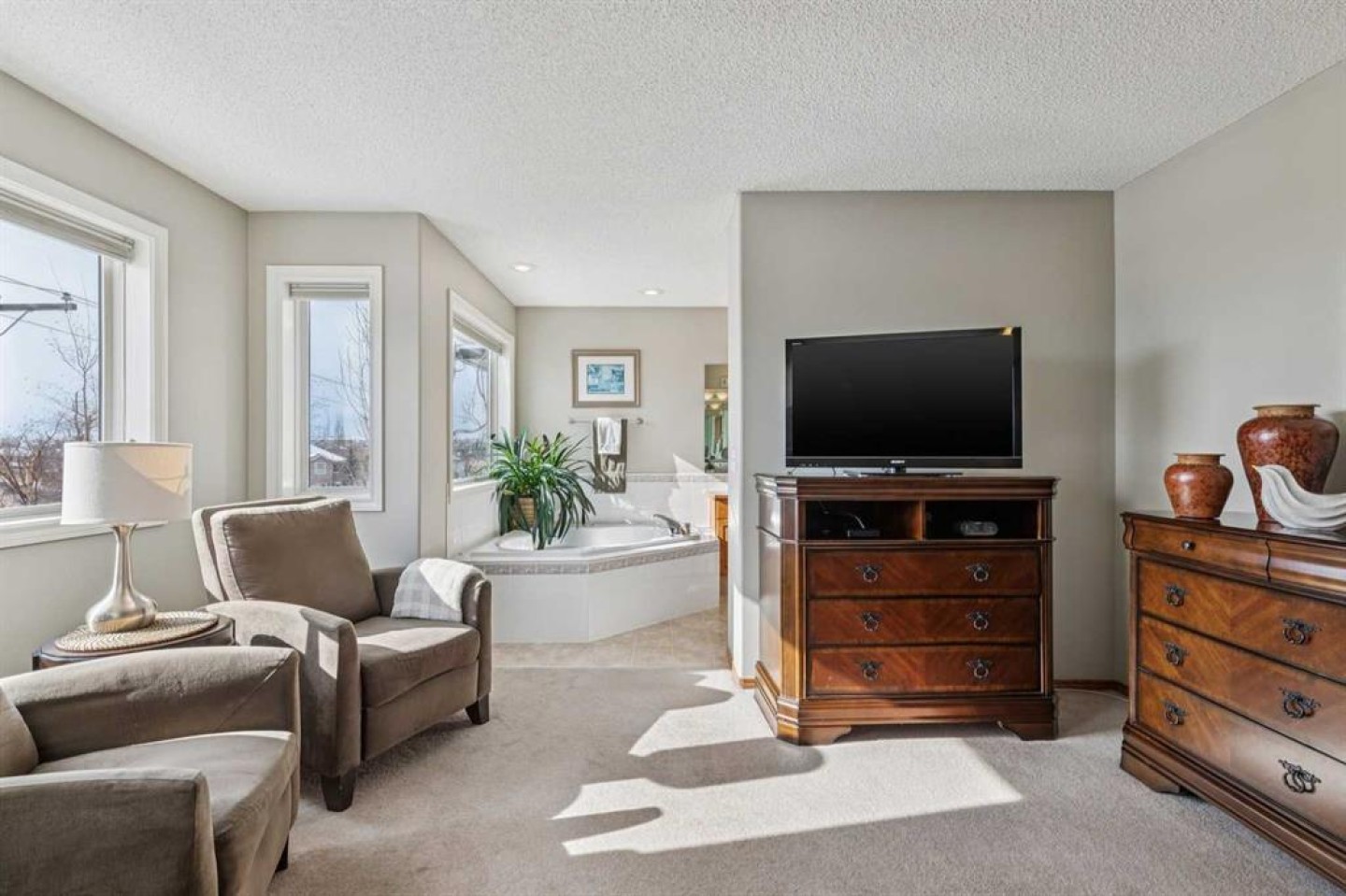Beautifully maintained, custom-built two-storey home offering over 3,100 sq. ft. of fully developed living space, located in prestigious Evergreen Estates—southwest Calgary’s only true estate home community, Lovingly maintained and thoughtfully upgraded by the original owners, this home clearly reflects pride of ownership at every turn. Enjoy a spectacular curved staircase with custom spindle work, rich site-finished hardwood floors, nine-foot ceilings, and high-quality stainless steel appliances featuring a Fisher & Paykel six-burner gas stove. Enjoy a total of five bedrooms, four baths, two fireplaces, hotel-style primary ensuite bath. The high-end professional basement development includes full tile feature wall setup for surround sound, two bedrooms, full bath, rough-in for wet bar, new flooring and more. Soft rounded corners, main floor den, custom window coverings, new roof, A/C, heated oversized garage, and incredible landscaping with mature trees for privacy, stone patio, upper deck, and a cozy front porch to sit and watch the kids play. Evergreen Estates offers an exceptional walkable lifestyle, surrounded by expansive park spaces, paved pathways, and Fish Creek Park just steps from your door, with effortless access to the LRT, schools, shopping, and Stoney Trail.