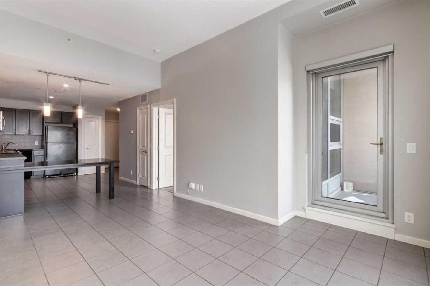 Spectacular Downtown Skyline Views from the 27th Floor! Welcome to this stylish 1-bedroom, 1-bathroom condo offering 589 sq. ft. of modern living space in the desirable Nuera building. Perched on the 27th floor, this home showcases breathtaking 180-degree downtown skyline views, including the Calgary Tower, through stunning floor-to-ceiling windows. The open-concept layout is bright and functional, seamlessly connecting the living and dining areas. The contemporary kitchen features mocha-stained maple cabinetry, mosaic tile backsplash, under-cabinet lighting, and built-in dining table that doubles as a workspace. Step onto your private balcony to enjoy the vibrant city views, or wake up to the skyline from the spacious primary bedroom. Additional highlights include in-suite laundry, a storage locker, and a titled heated underground parking stall. Nuera offers a fully equipped fitness centre and smart HVAC air circulation technology. Ideally located steps from downtown, the BMO Centre, LRT, and the shops and restaurants of 17th Avenue, this home delivers the ultimate inner-city lifestyle.