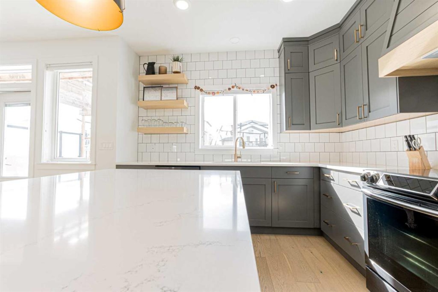 Located in Whispering Ridge, this gorgeous two-storey home offers southern exposure and sits directly across the street from a pond and walking trails. This 2,200+ sq. ft. fully developed "Deeproot Home" showcases the character and craftsmanship the builder is known for, along with Hardie Plank siding and a triple fully finished and heated garage. The bright, open-concept main floor features a spacious great room with a two-sided fireplace, a large dining area, and a stunning custom kitchen complete with quartz countertops, high-end stainless steel appliances, chic backsplash, floating shelves, and a walk-through pantry. A convenient tech center, front foyer, back boot room, and powder room complete the main level. Upstairs you’ll find top-floor laundry room with additional storage, a stylish 4-piece bathroom, a large bonus room with custom sliding barn doors, and three generous bedrooms. The primary suite offers a huge walk-in closet and a spa-inspired ensuite featuring a bamboo double vanity, soaker tub, and a beautiful, tiled glass shower. The sunny south-facing backyard is fully fenced and beautifully landscaped. Enjoy the deck with pergola and glass privacy panels, creating the perfect outdoor retreat. The matching 10' x 20' shed is far from ordinary, featuring a garage overhead door and man door—ideal for a workshop or “she shed.” The basement is recently developed and features 4th & 5th bedrooms, full bath and large rec room space. Parking is exceptional, triple heated garage with space for up to six vehicles total on driveway or four plus a large RV! Located in one of Grande Prairie's most desirable County neighborhoods close to a great school, walking trails and nearby amenities.