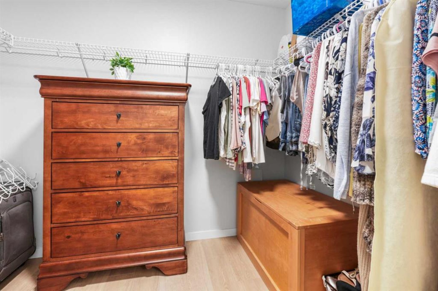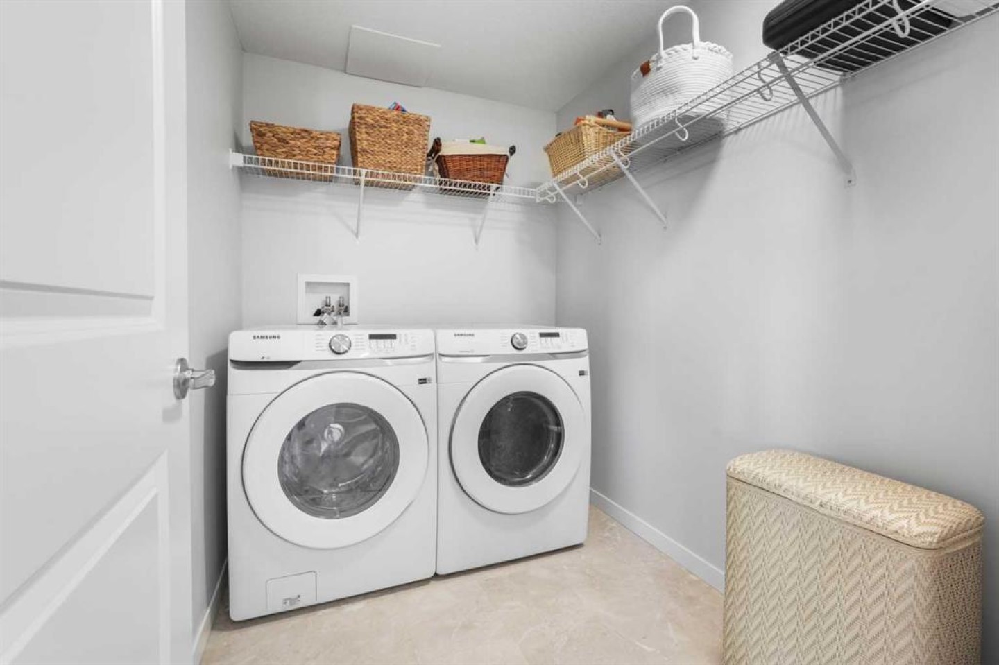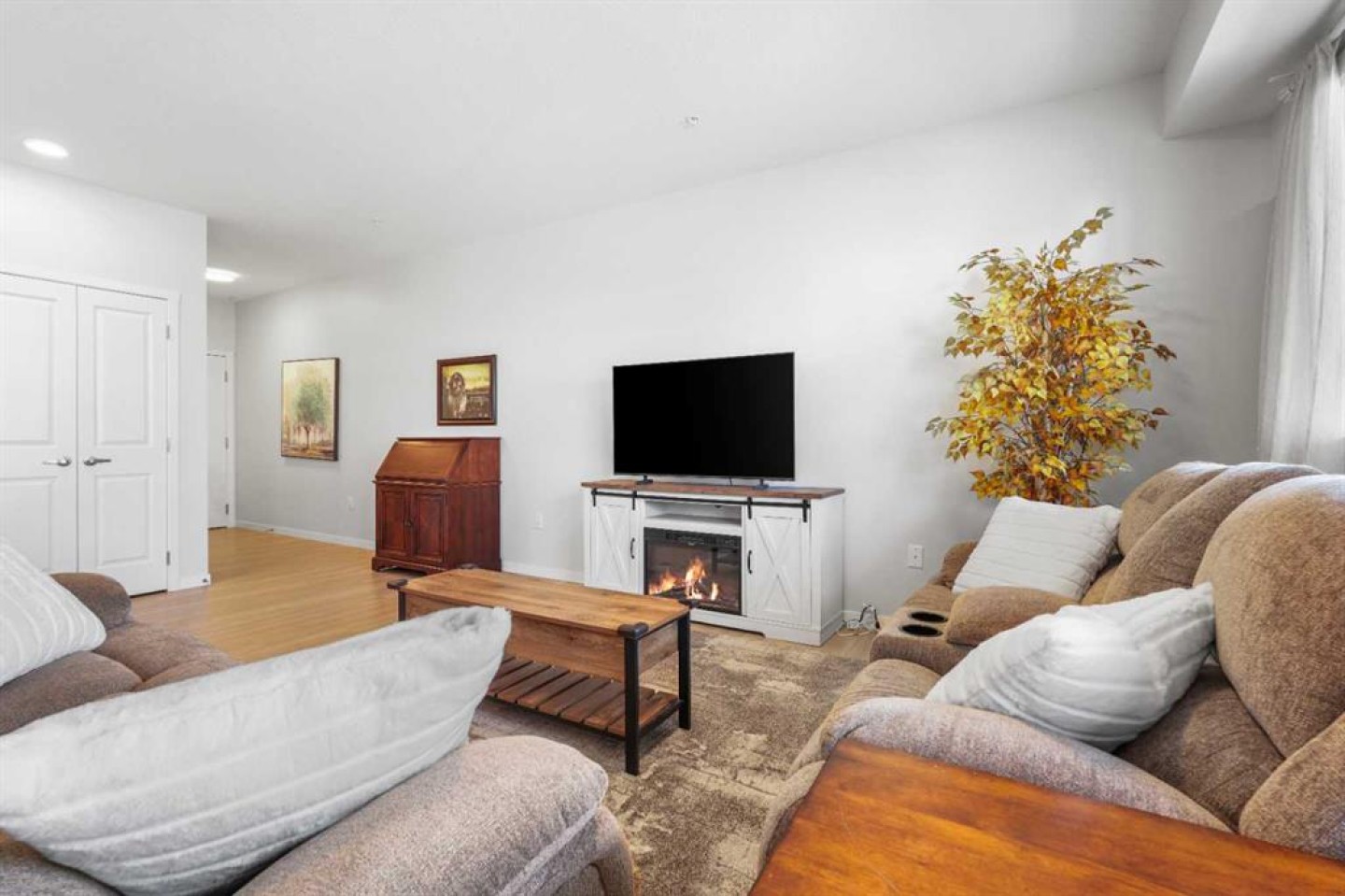 Discover refined living at this bright and beautifully maintained NW corner unit in Riverstone Manor offering over 1,040 sq ft of intelligently designed living space and one of the most private positions in the entire building. With only one shared wall and expansive windows wrapping the corner, natural light pours in throughout the day, creating an airy, refined atmosphere that feels more like a bungalow than a condo. Featuring 2 generous bedrooms, 2 full bathrooms, and a full sized laundry room, the layout is exceptionally functional, with thoughtful separation between the bedrooms for optimal privacy. The inviting foyer opens into a spacious open concept great room anchored by walls of windows. The living and dining areas offer flexibility for entertaining, quiet evenings, or a dedicated work from home setup. The kitchen integrates seamlessly and showcases full height cabinetry, quartz countertops, stainless steel appliances, and a large island designed for gathering. Step outside through double patio doors to a rare 20 x 7 west facing balcony. With no direct neighbours beside you, this is one of the most private outdoor spaces in the complex. Enjoy uninterrupted sky, peaceful evenings, and golden sunsets as an extension of your living space. Inside, luxury vinyl plank flooring runs throughout, with no carpet. The primary suite features a walk through closet and a well appointed 4 piece ensuite with dual sinks and a walk in shower. The second bedroom sits on the opposite side of the unit, ideal for guests, a home office, or additional flex space, and is positioned next to a full 4 piece bathroom. A large dedicated laundry room adds rare in suite storage and everyday practicality. Additional highlights include 9 foot ceilings, ductless air conditioning, heated titled underground parking, and Alberta New Home Warranty still in place, offering confidence and peace of mind. The true differentiator is the setting. Located steps from the Bow River, extensive pathway systems, and the natural beauty of Fish Creek Park, Riverstone offers a lifestyle that feels removed from the city, yet remains minutes to Seton’s shopping, dining, and South Health Campus. This is not simply condo living, it is low maintenance living in one of Calgary’s most serene and tightly held communities, where outdoor access, privacy, and smart design come together. At this size and location within Riverstone, opportunities at this price point are increasingly rare.