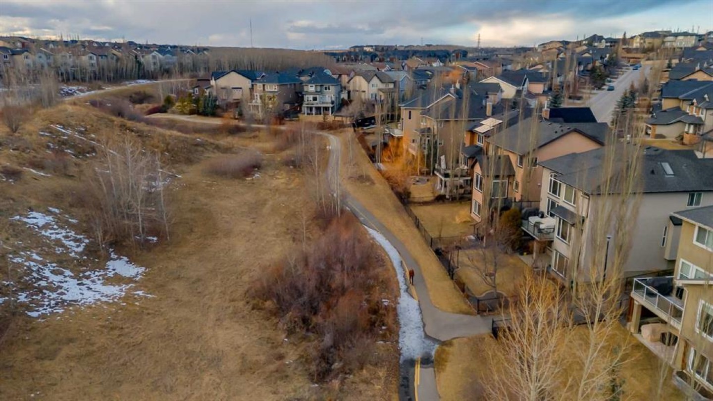 Stunning Fully Finished Walkout Backing onto Green Space in Aspen Woods! Located in the sought-after community of Aspen Woods, this beautifully maintained 2-storey walkout offers an impressive 4,800 sq. ft. of total developed living space and true pride of ownership throughout. Backing onto green space and surrounded by great neighbours, this home delivers luxury, space, and comfort in an exceptional location. A grand foyer with soaring 23’5” ceilings welcomes you into a bright, open-concept layout filled with natural light from large windows on all three levels. Elegant wrought iron railings accent the staircase throughout. The gourmet kitchen features stainless steel appliances, custom cabinetry and hood fan, granite countertops, a large island, and a walk-through pantry with ample storage. The main floor also includes a den, formal dining room, and a cozy family room with gas fireplace. Step onto the west-facing deck to enjoy sunshine and peaceful green space views. Upstairs offers a spacious bonus room with a grand chandelier, a luxurious primary suite with sitting area, gas fireplace, dream walk-in closet, and a 5-piece ensuite with upgraded shower and corner jetted tub. Two additional bedrooms, a 5-piece main bath, and upper laundry complete the level. The fully finished walkout basement features in-floor heating, two more bedrooms, a 4-piece bath, wet bar, and gas fireplace—ideal for entertaining or extended family. A finished oversized garage and numerous upgrades—including new furnaces (2023 & 2025), tankless hot water (2026), in-floor heating system updates (2026), new window coverings (2025), upgraded lighting (2025), and fresh paint (2026)—add even more value. Close to top private and public schools, shopping, parks, LRT, downtown, and Stoney Trail, this is an exceptional opportunity in one of Calgary’s most desirable communities. Please click the Virtual Tours for more detail!